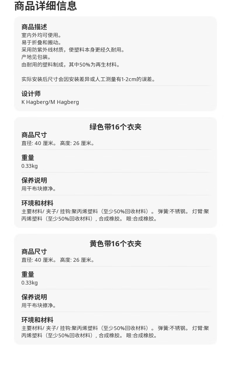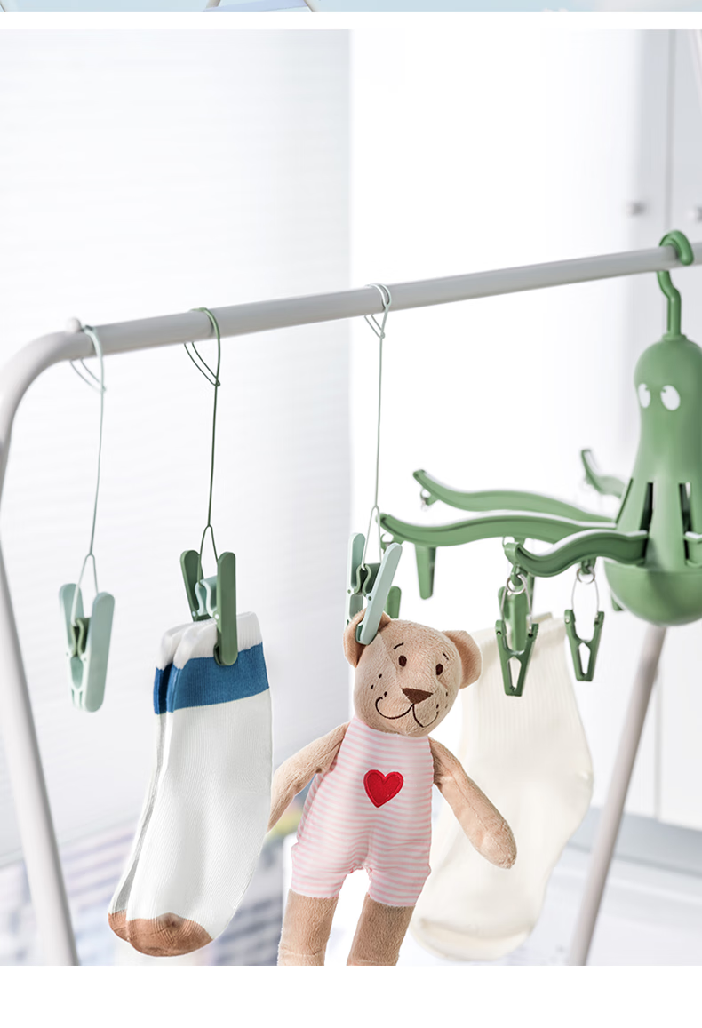 宜家(IKEA)PRESSA普利萨多夹子晾晒架晒袜子神器家用衣架内衣架子 绿色带16个衣夹
