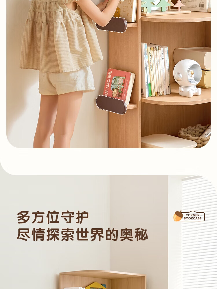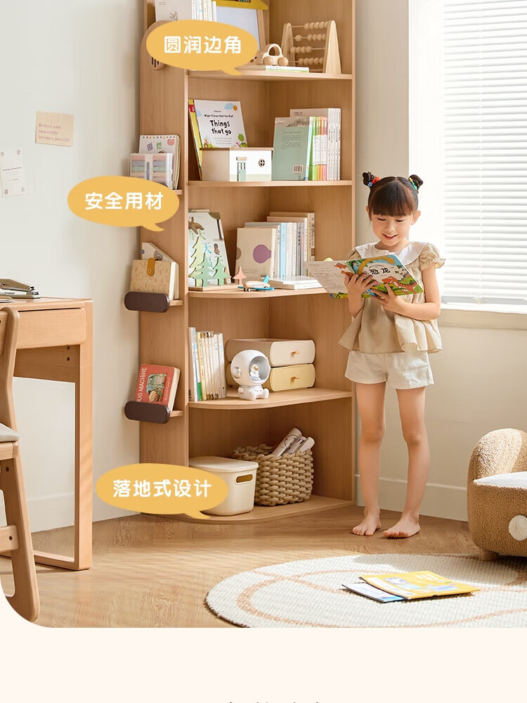 林氏家居客厅靠墙转角书柜书架子展示柜家用落地储物柜子林氏木业 【原木色】绘本架转角柜0.4m