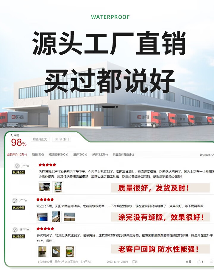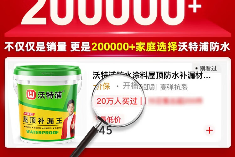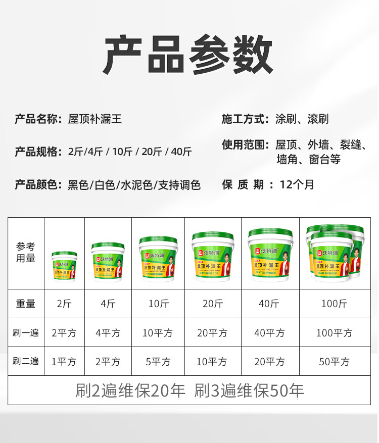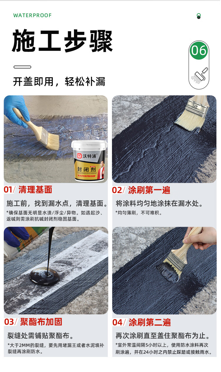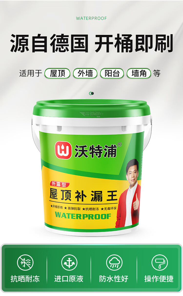 沃特浦防水涂料屋顶防水补漏材料房顶裂缝防水胶沥青王房屋楼顶防漏水胶 【水泥色 10斤 】防晒防冻单遍10平