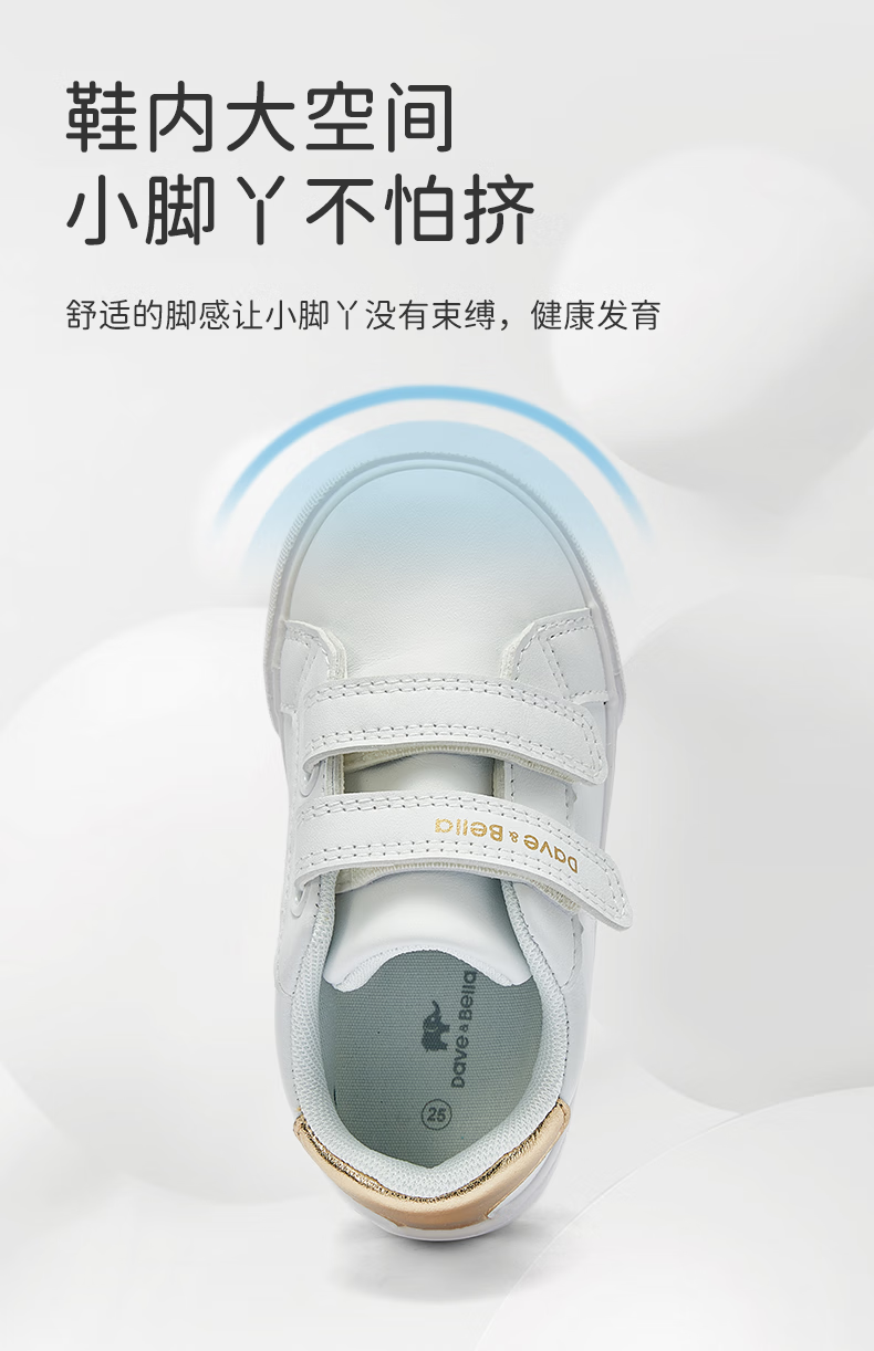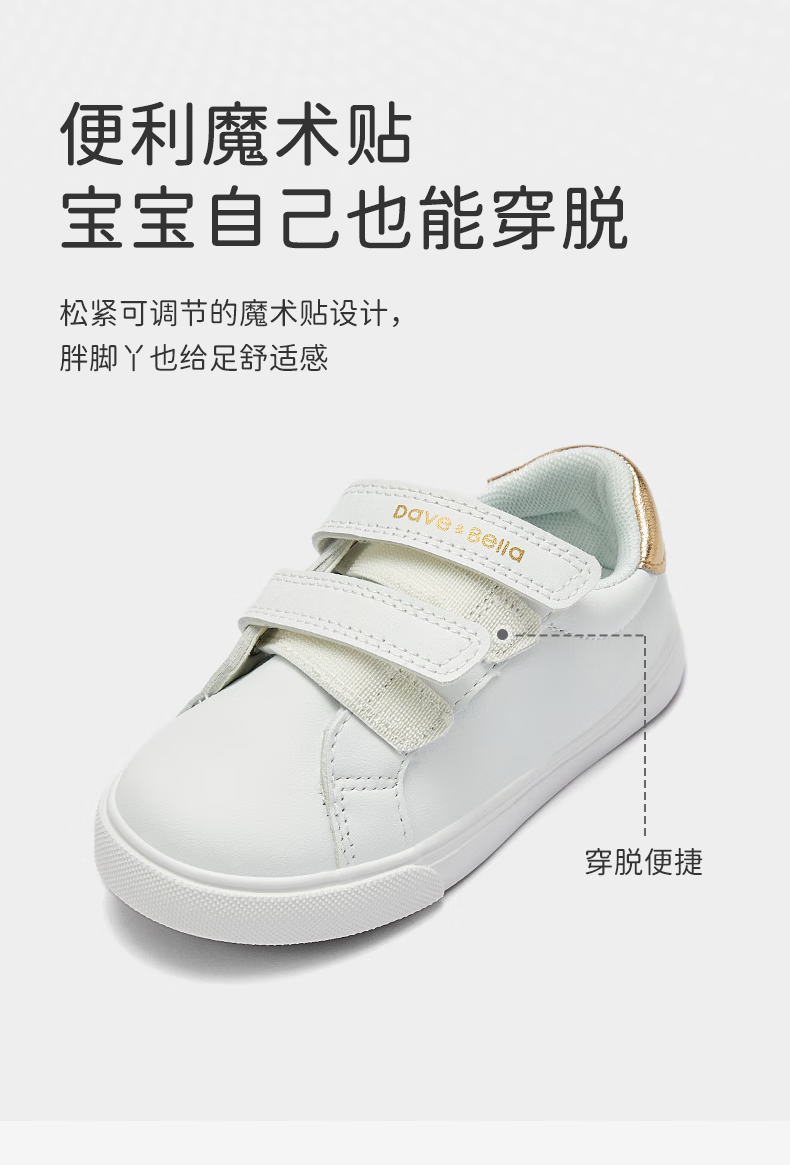 戴维贝拉(DAVE&BELLA)儿童鞋子2024秋季中大童女童小白鞋男童板鞋宝宝学步鞋