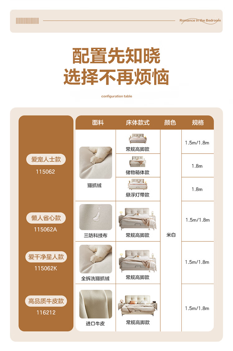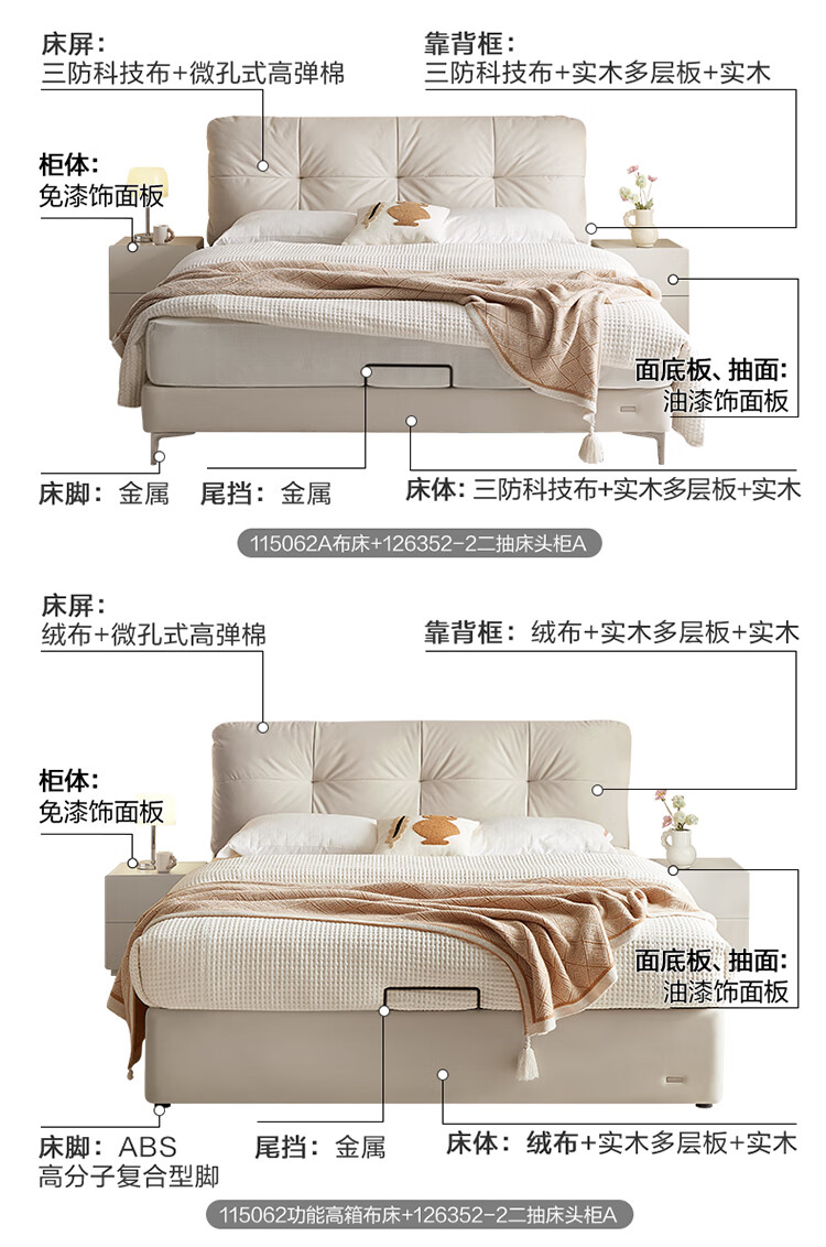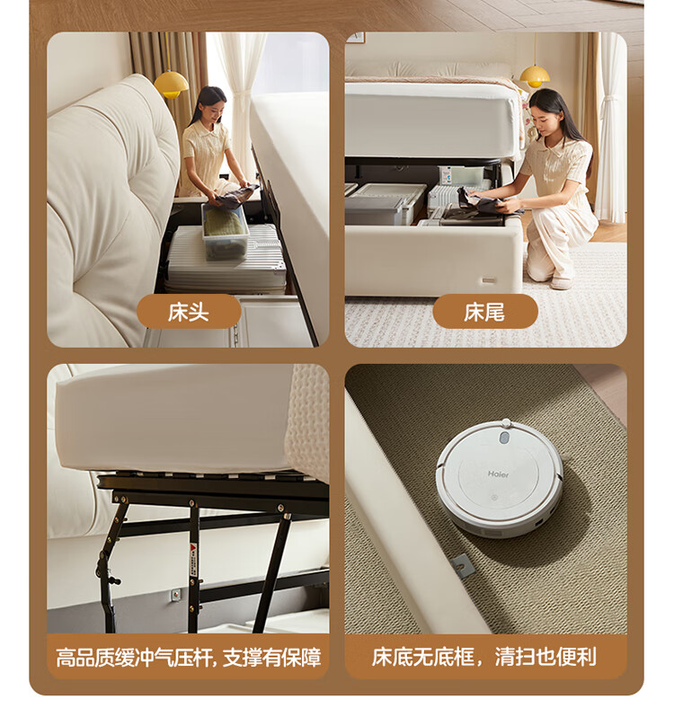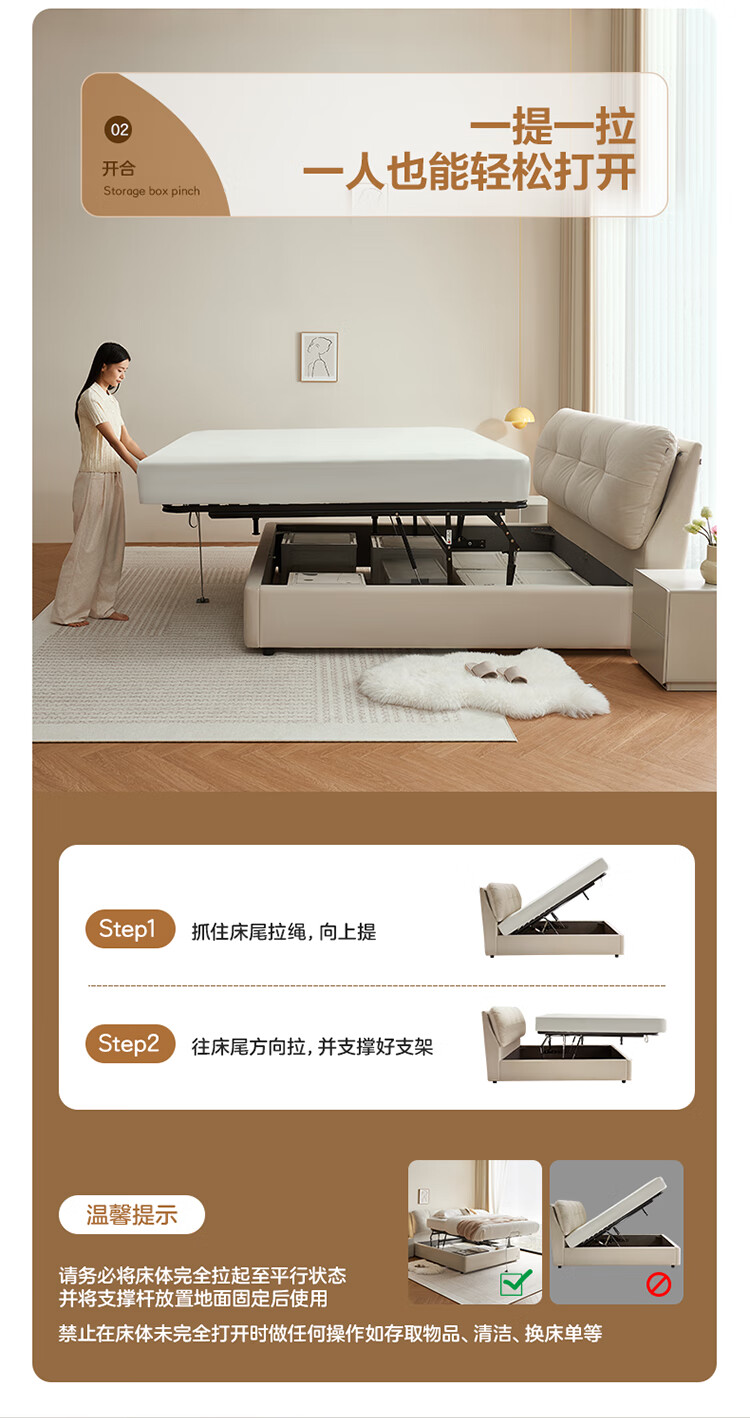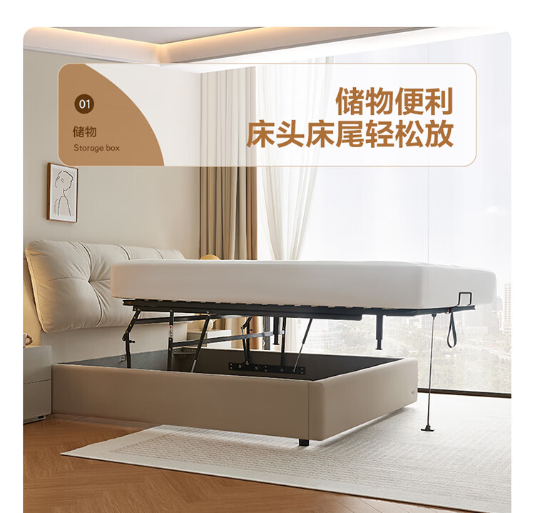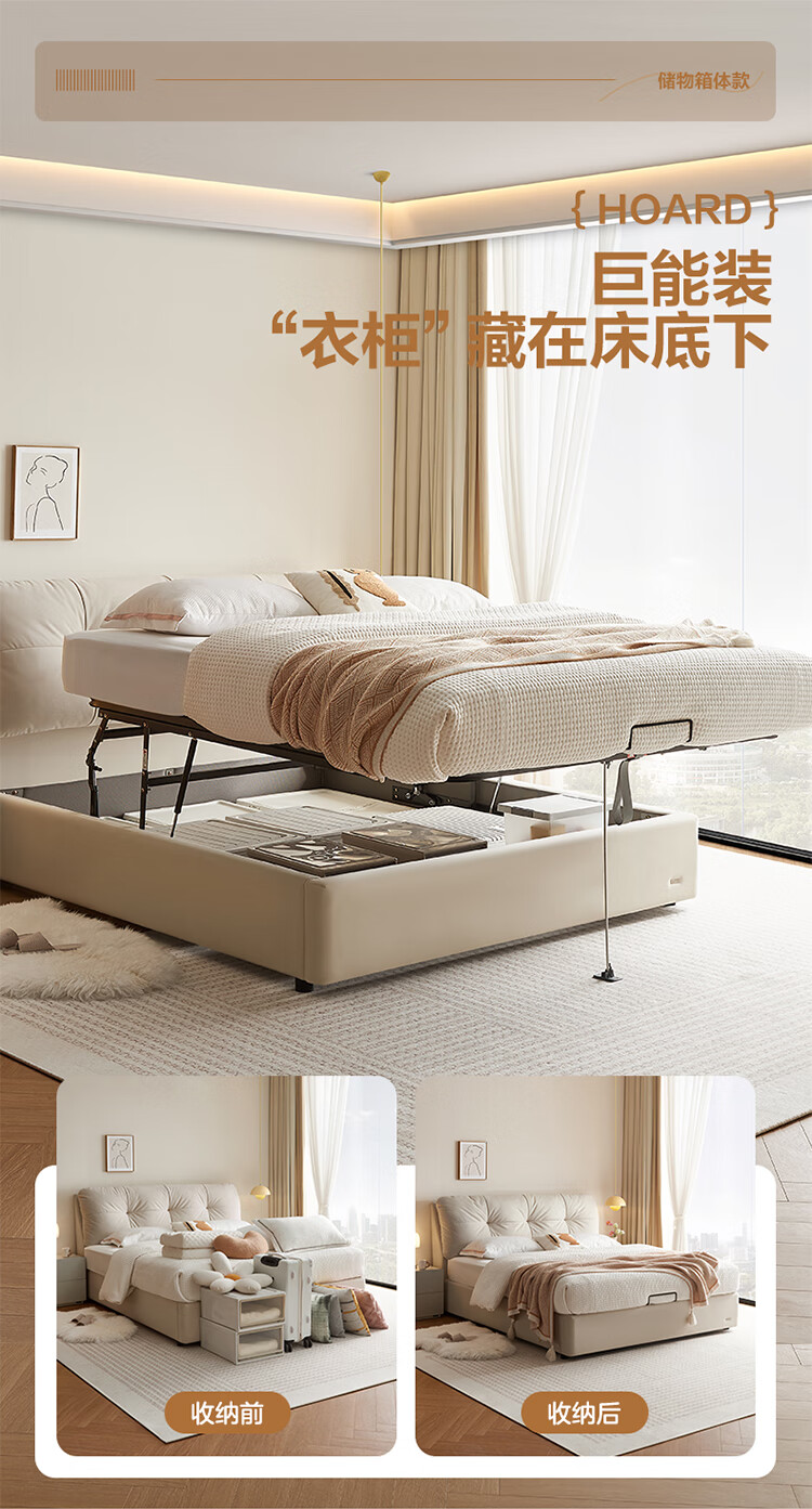 顾家家居(KUKA)简约牛皮软床储物卧室大床双人床DS8566B玉脂白平移储物1.8*2.0