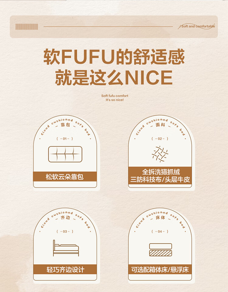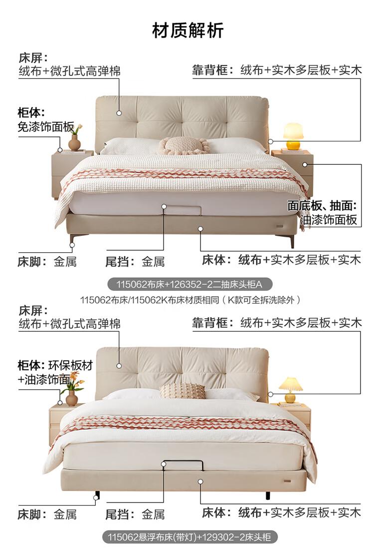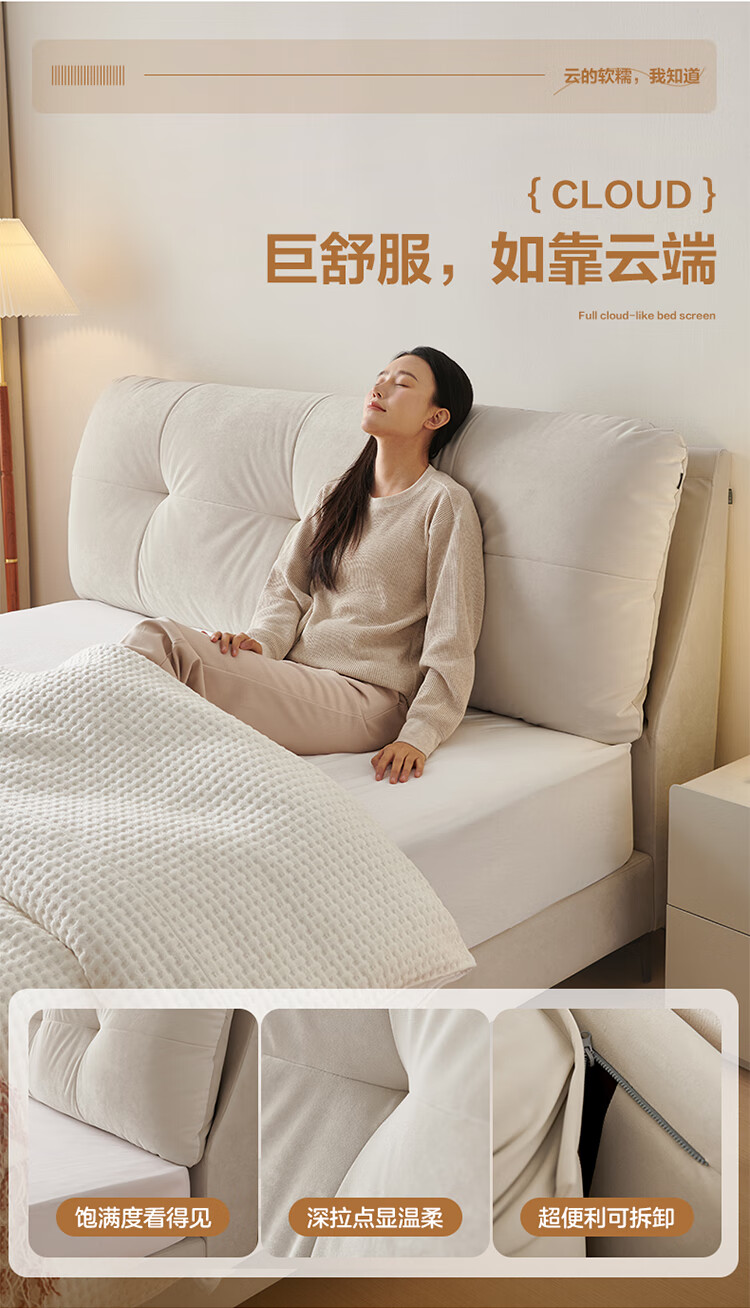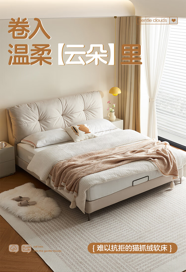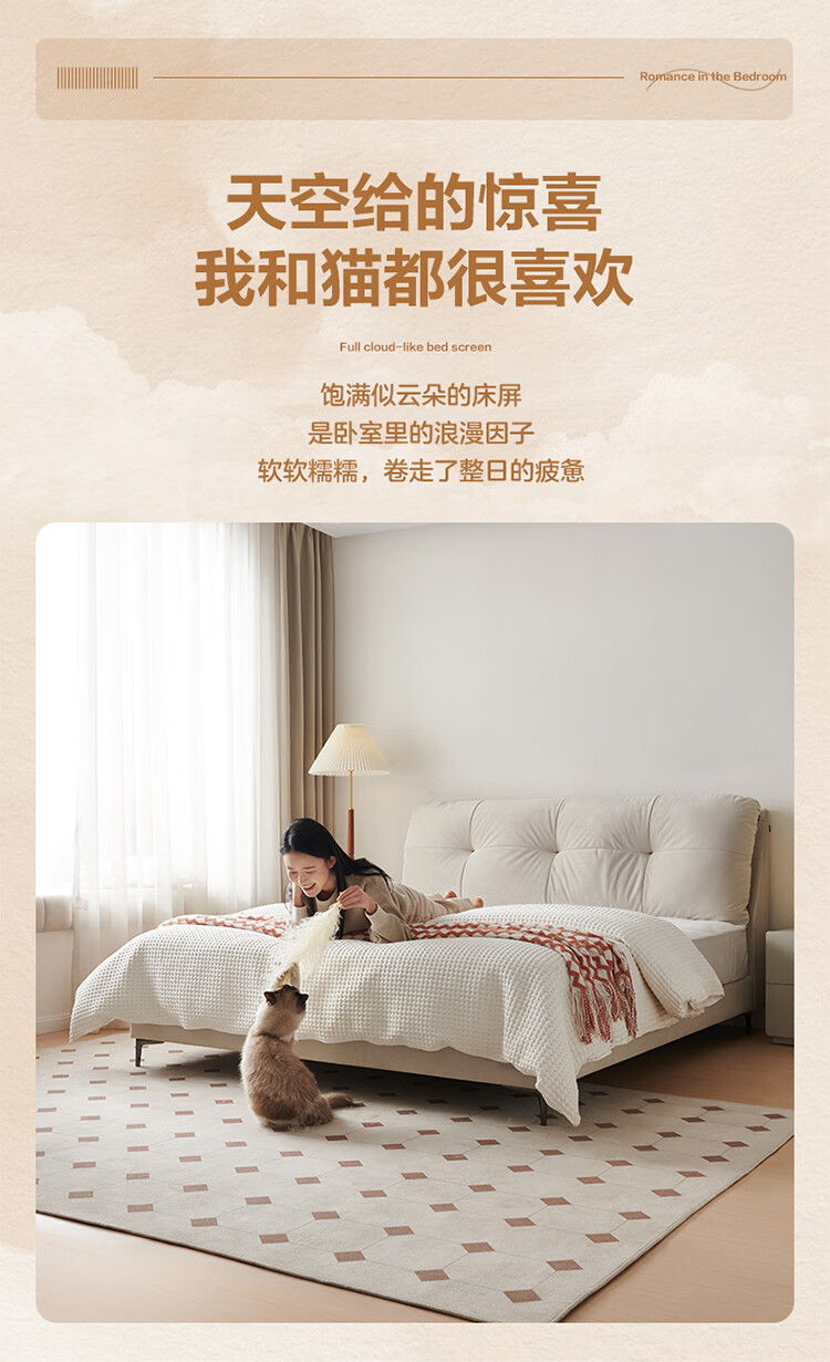 全友家居 奶油风泡芙布艺软包床1.8x2米现代简约主卧室双人大床家具