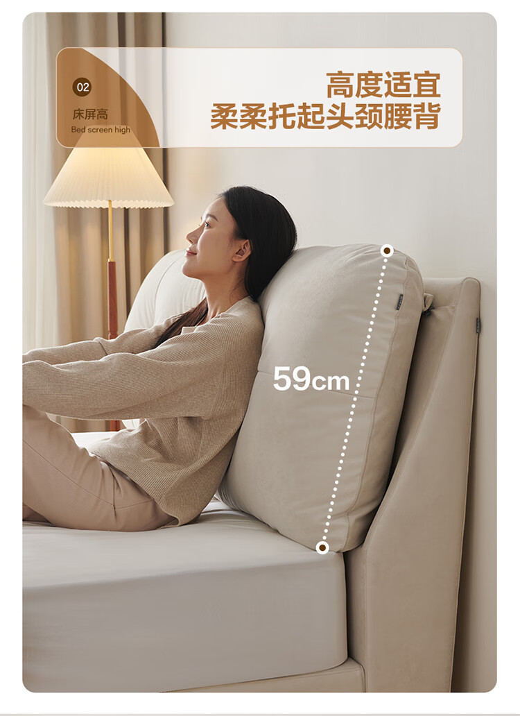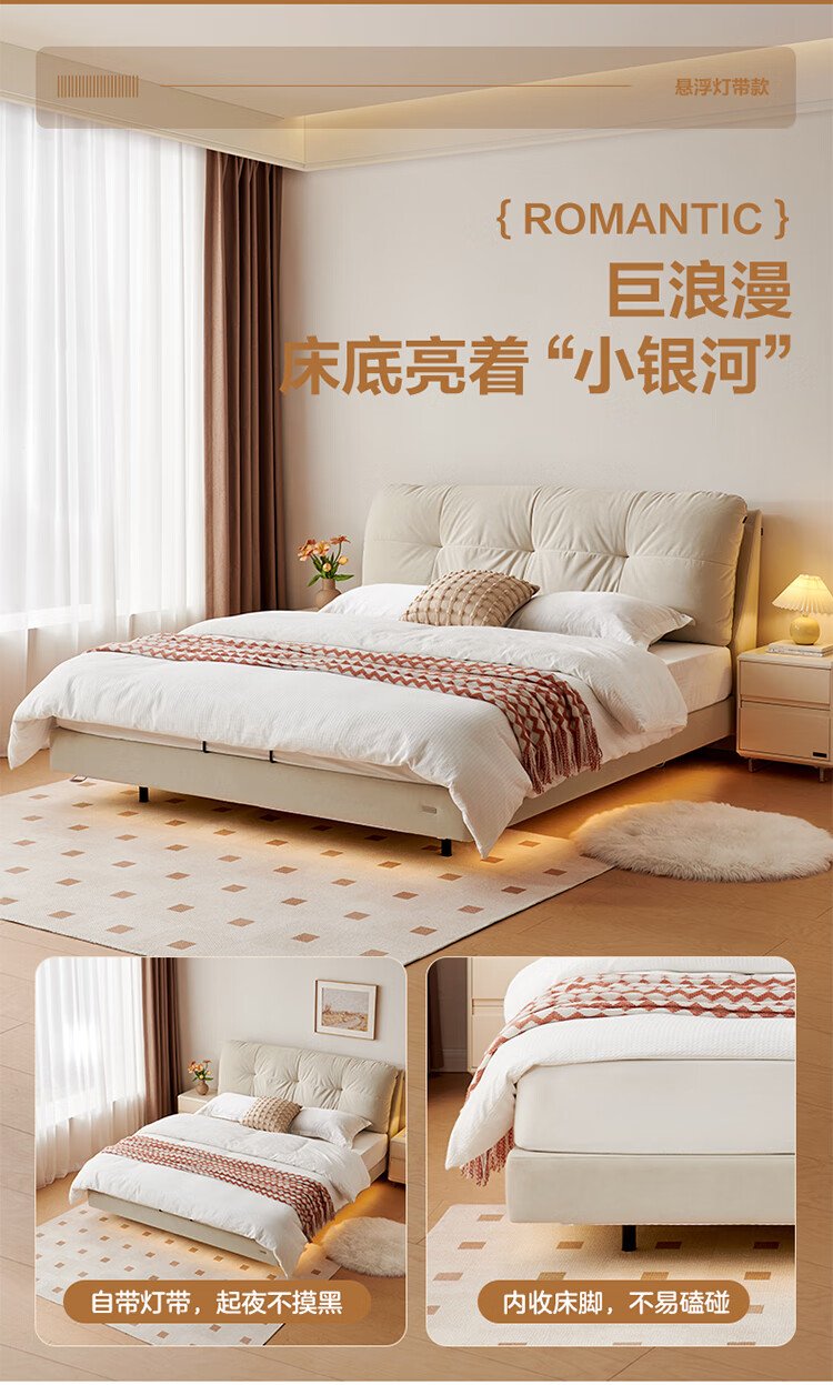 顾家家居(KUKA)门店同款时光胶卷奢华版皮床1.8米x2米双人床主卧婚床8055奶杏色