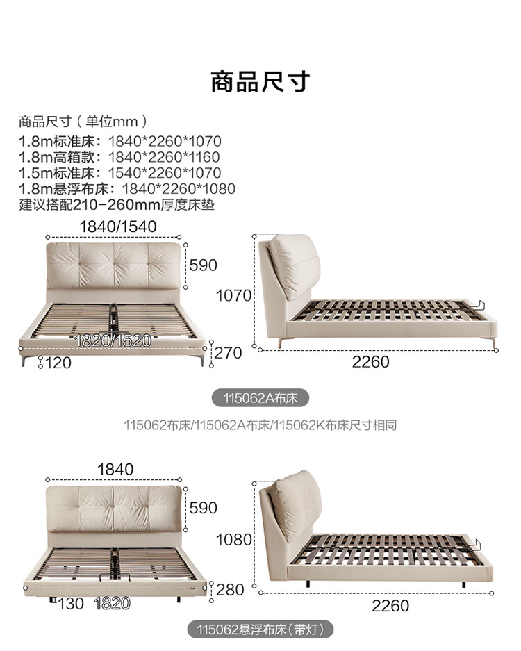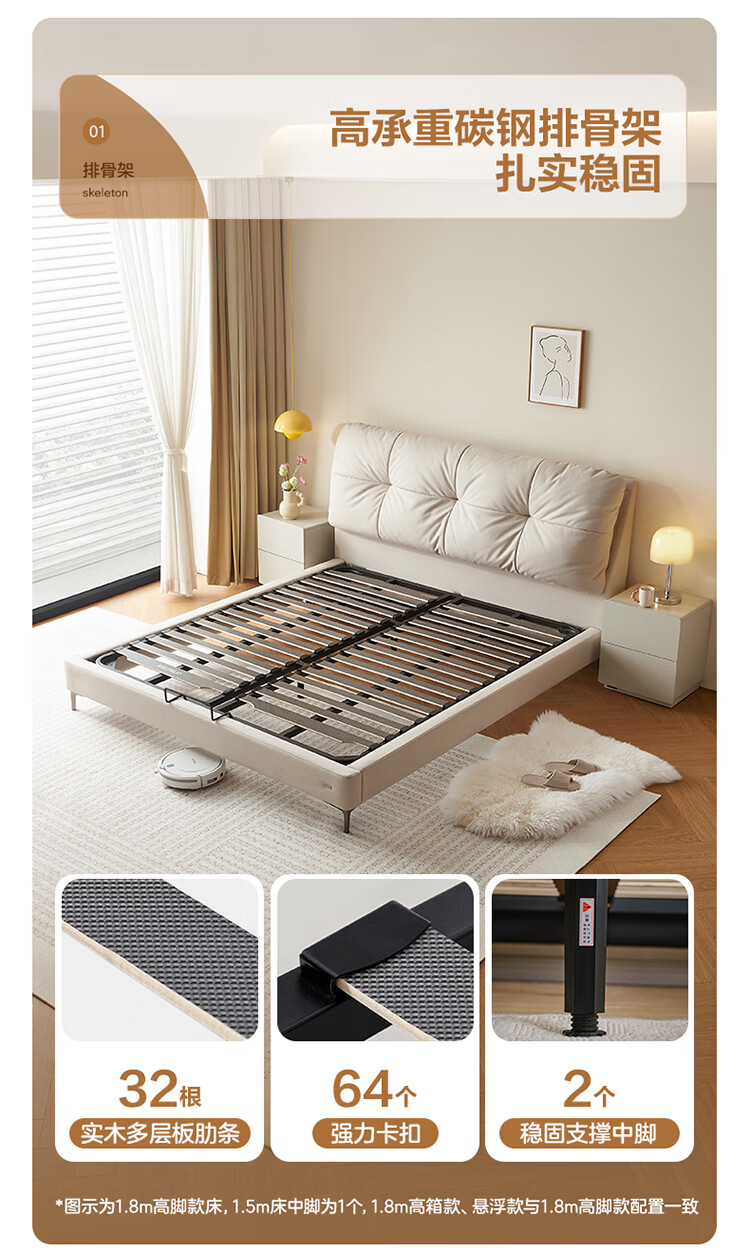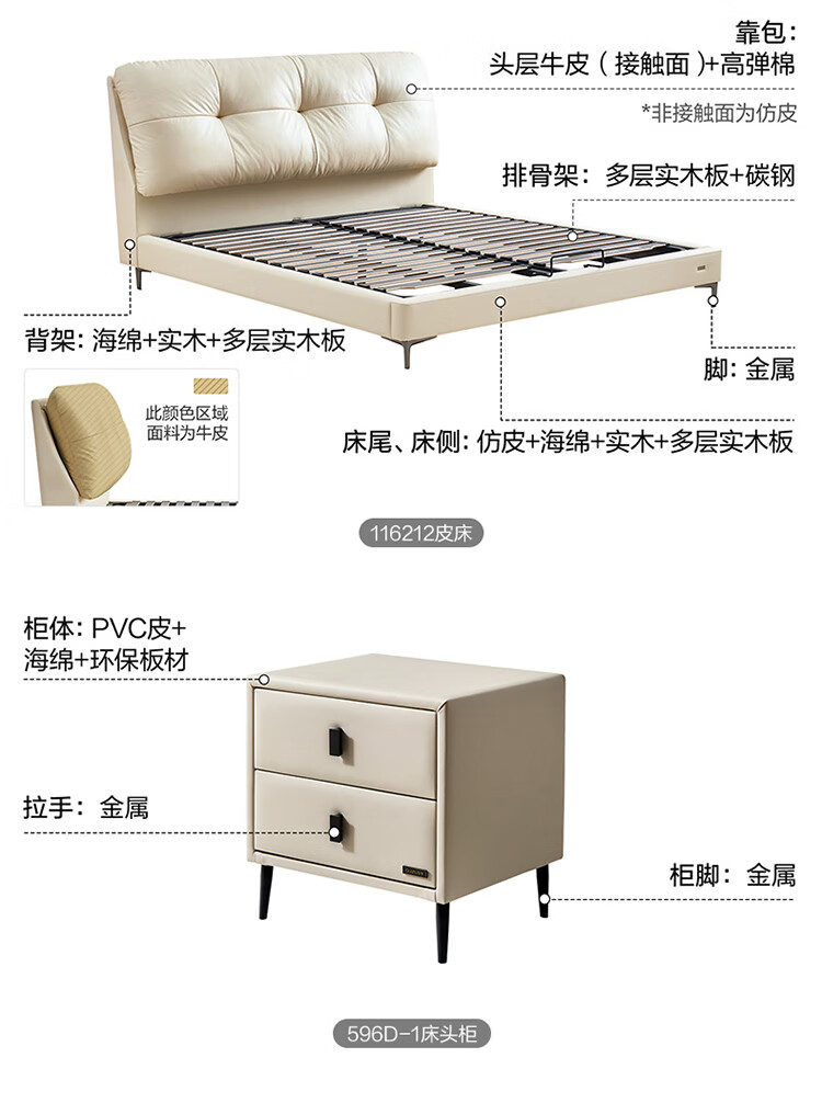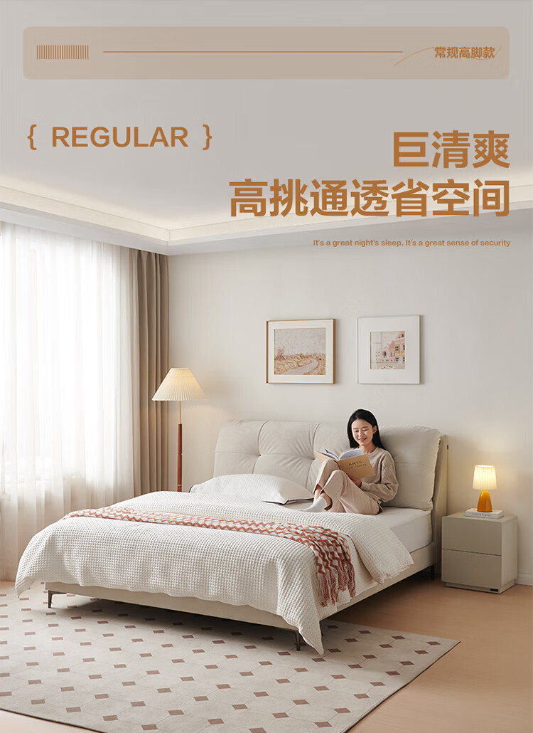 顾家家居华夫格奶油风头层牛皮床双人床卧室DS8109B馥芮白高脚款1.8