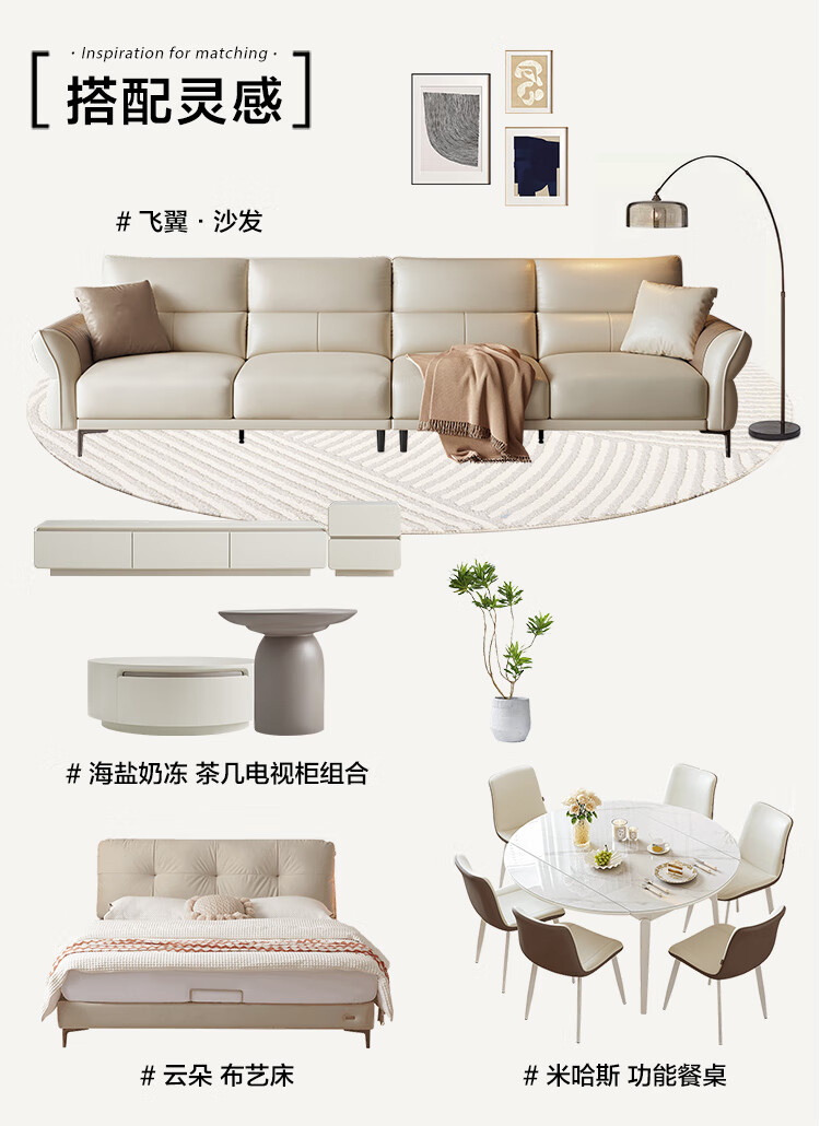左右沙发客厅网红奶油风小户型直排真皮沙发DZY6018三人位 青云灰
