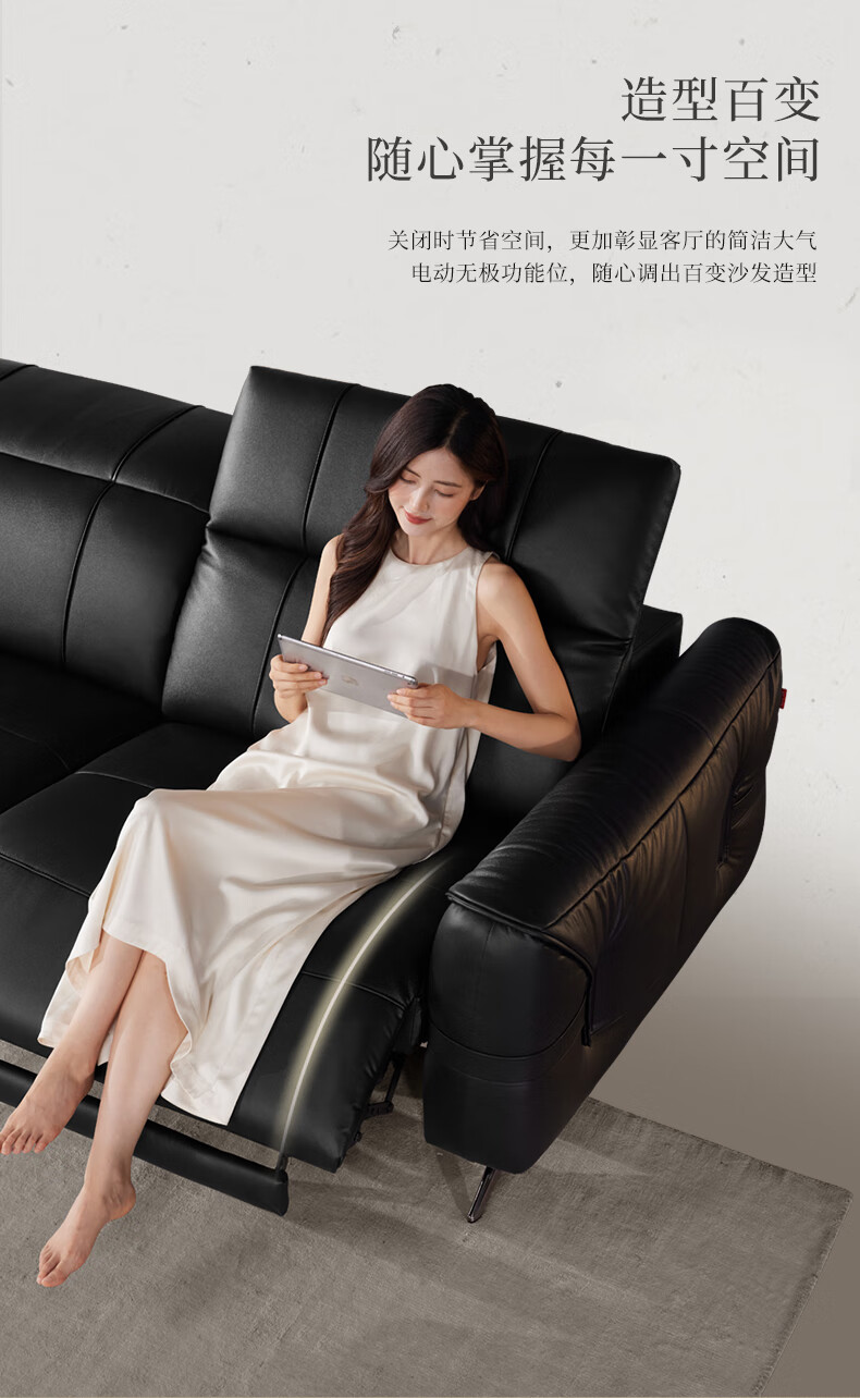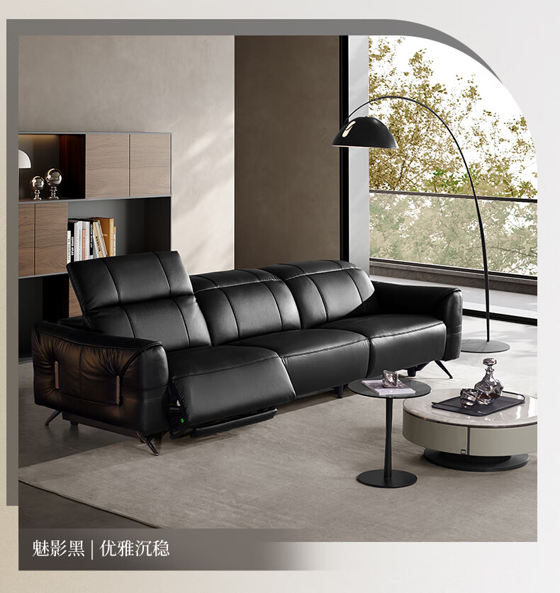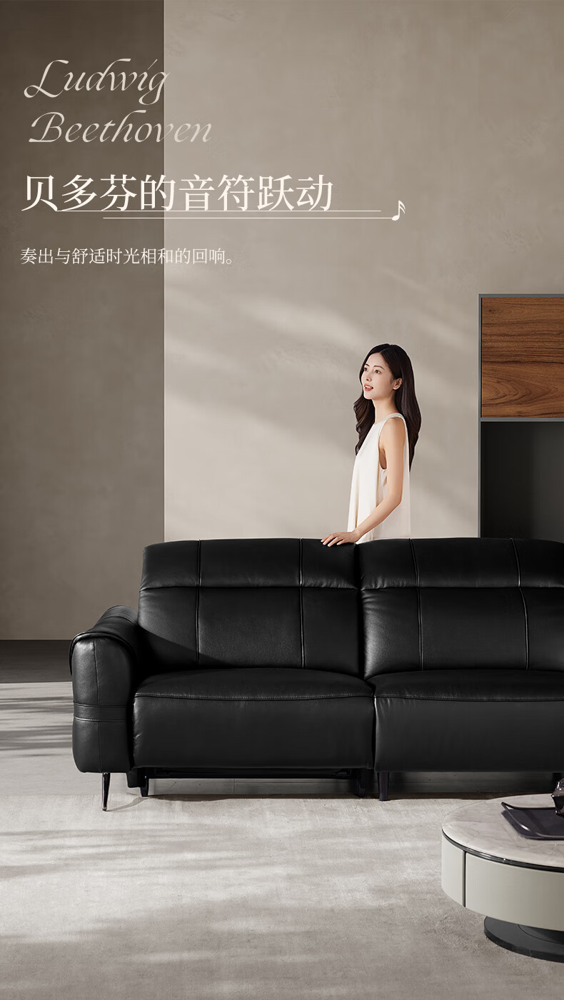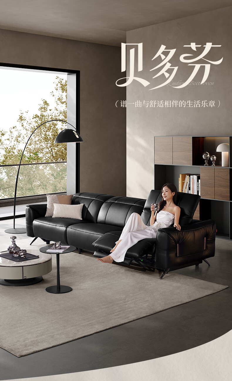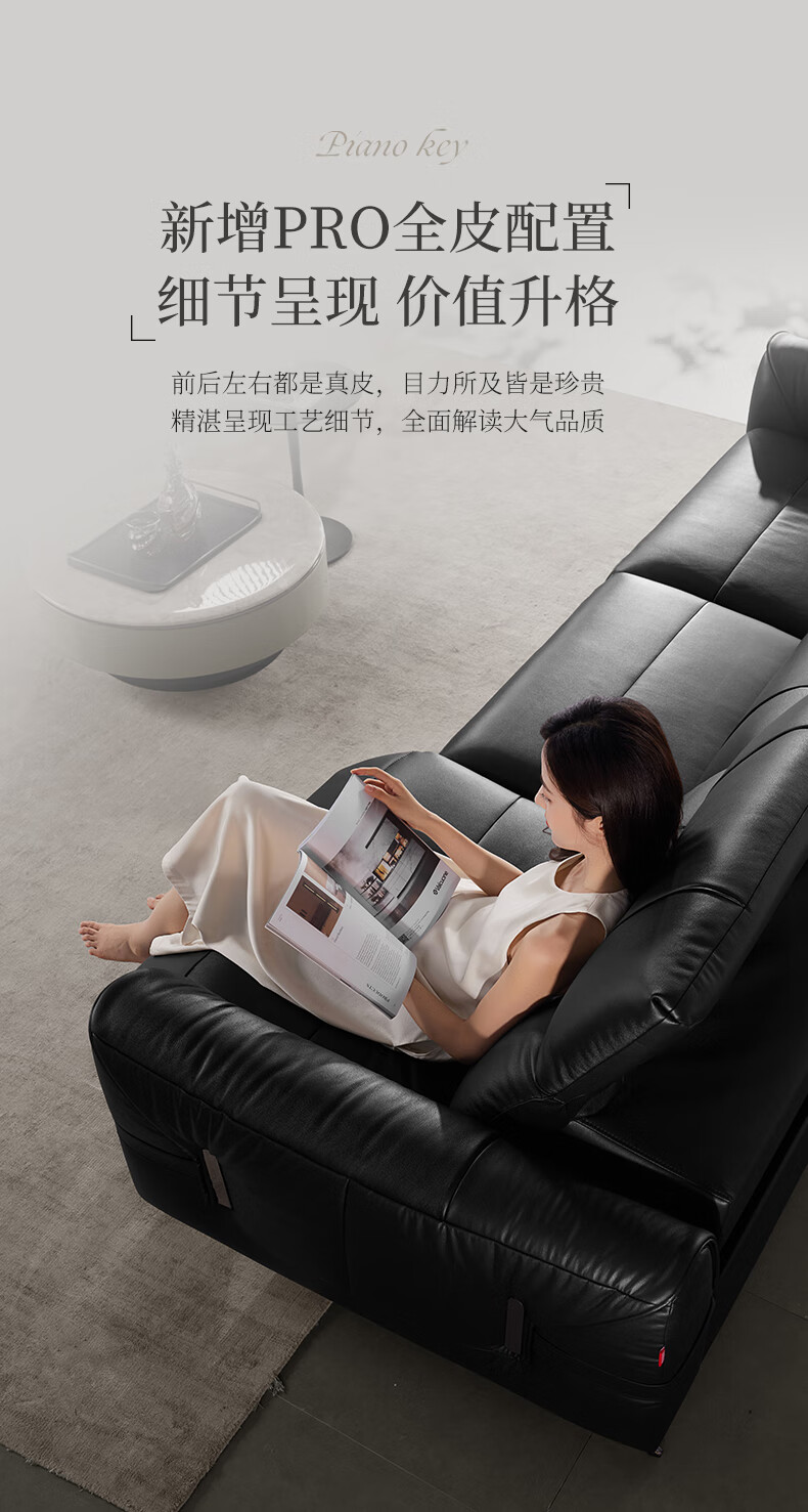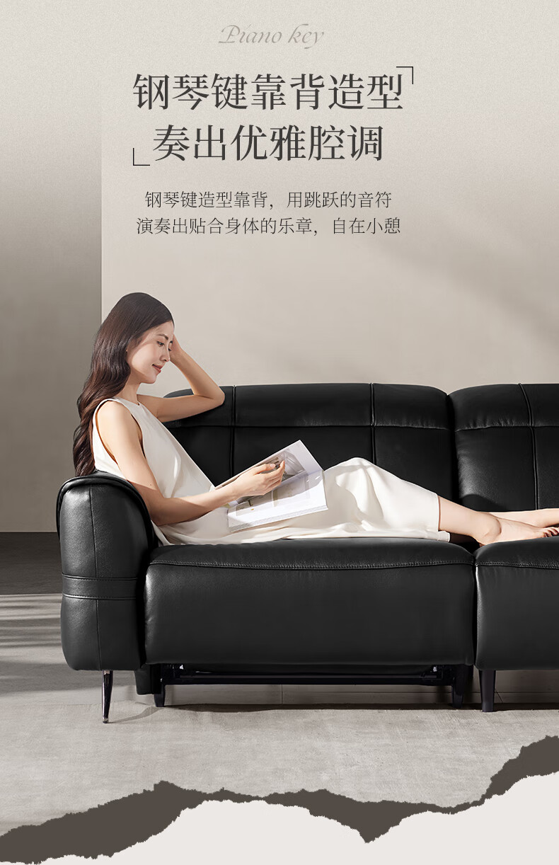 顾家家居(KUKA)门店同款电动功能皮沙发钢琴键贝多芬6236 黑 3人位双电动3.01m