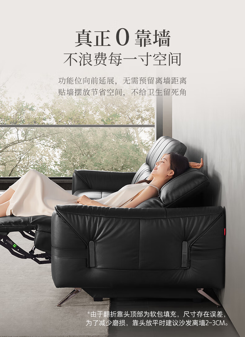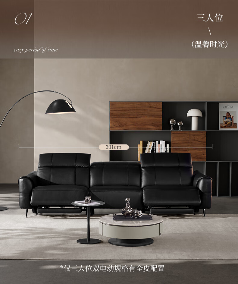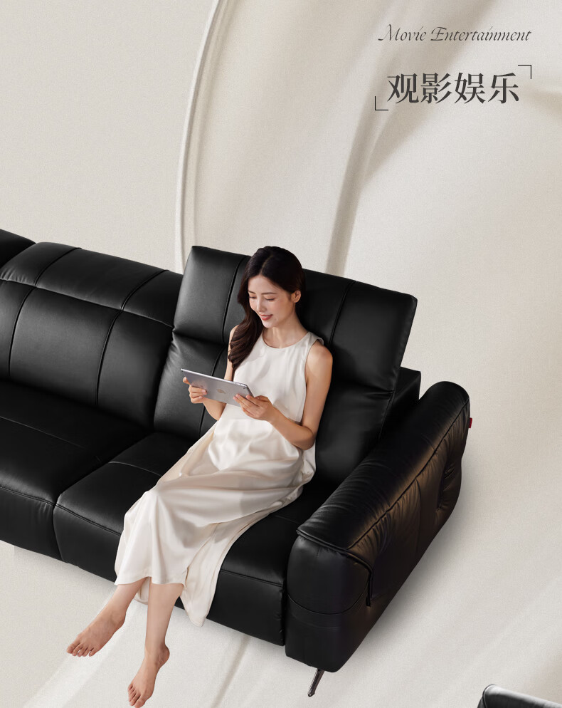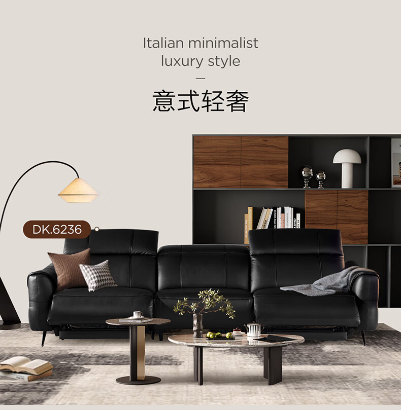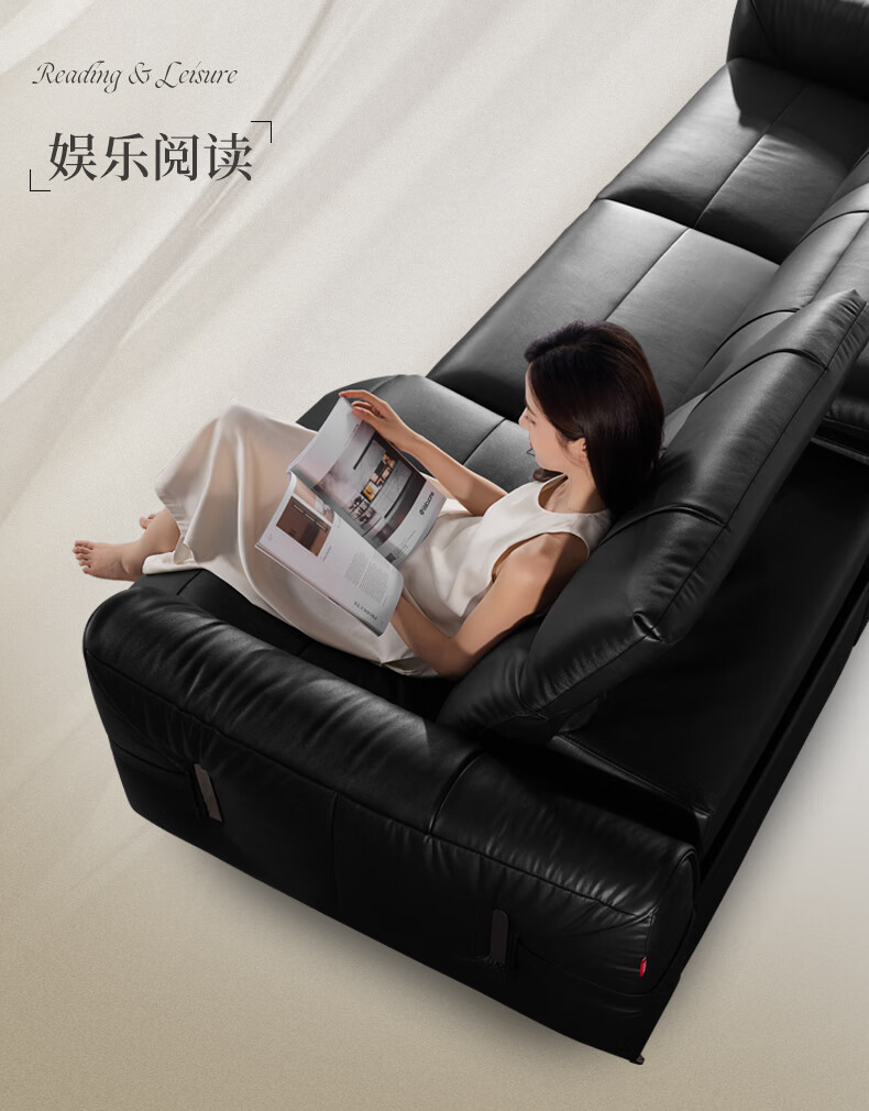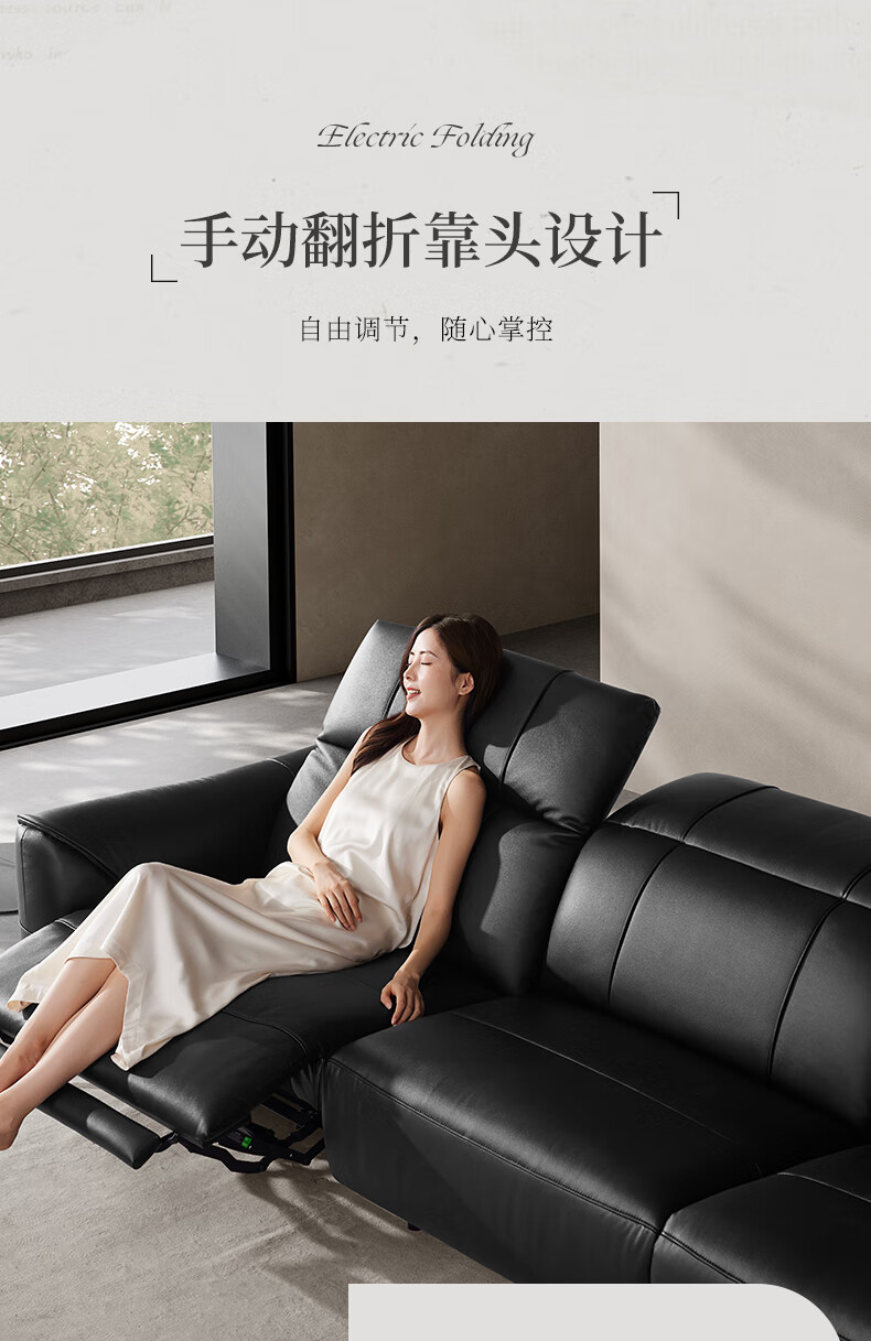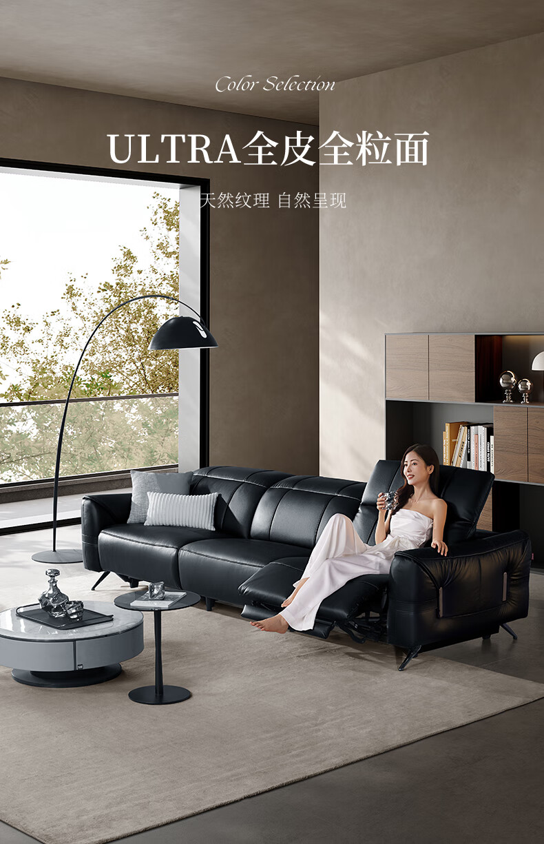 顾家家居(KUKA)门店同款电动功能皮沙发钢琴键贝多芬6236 黑 3人位双电动3.01m