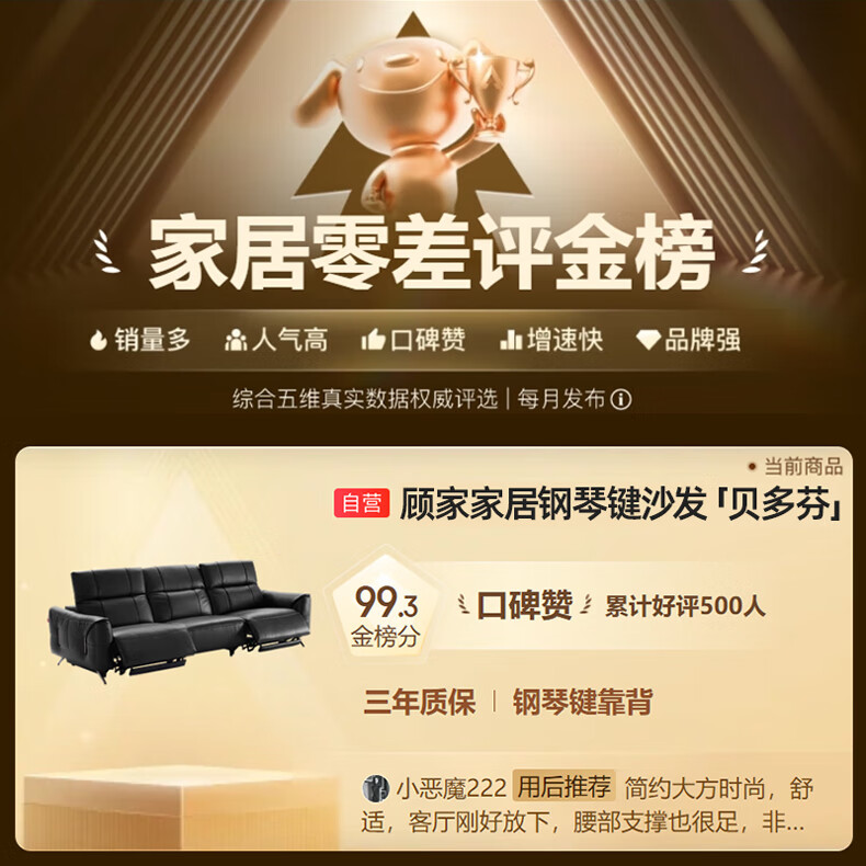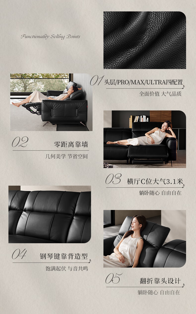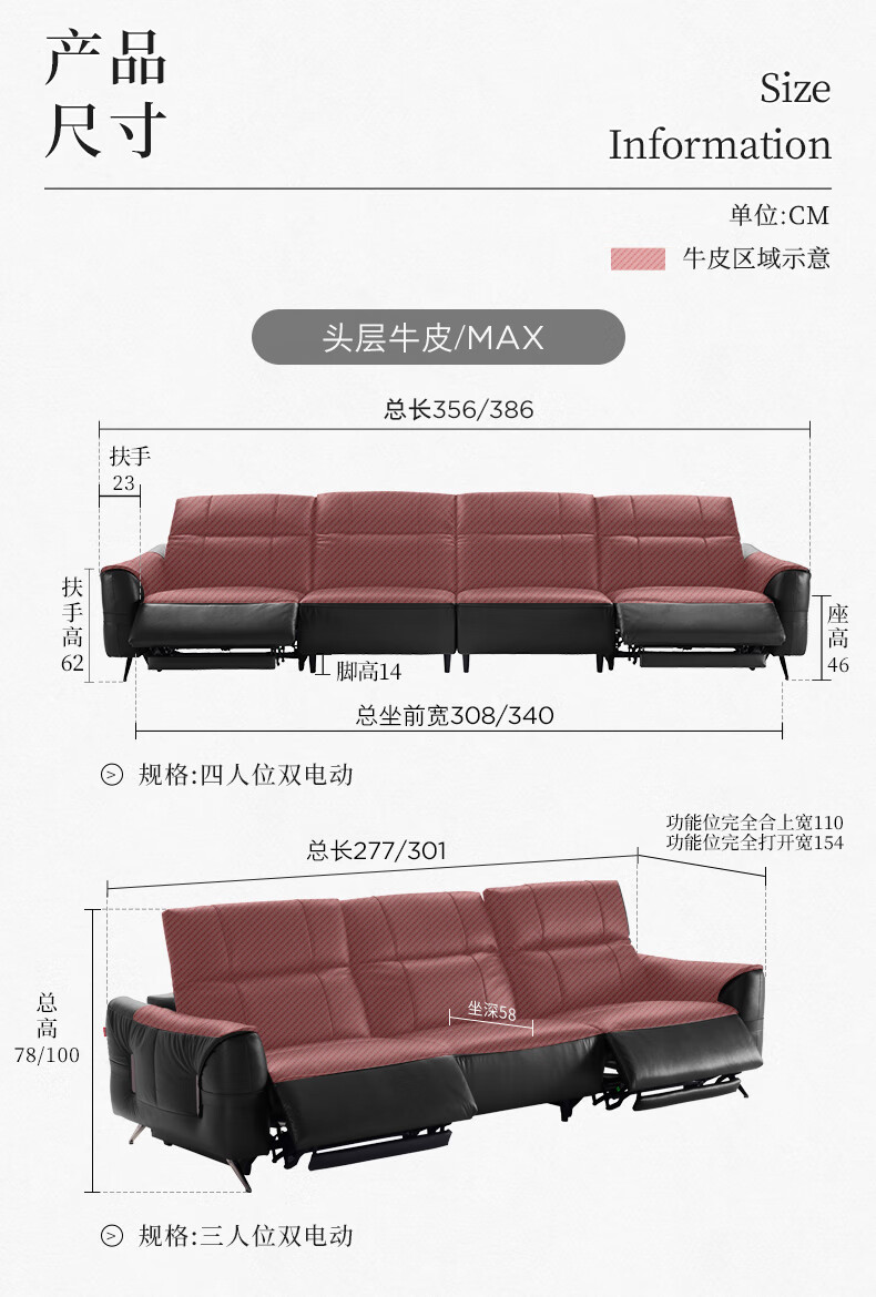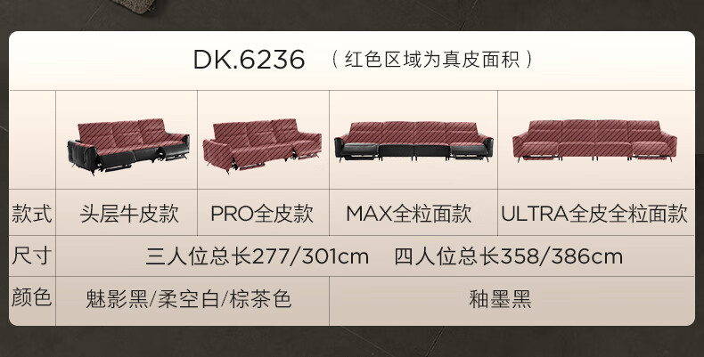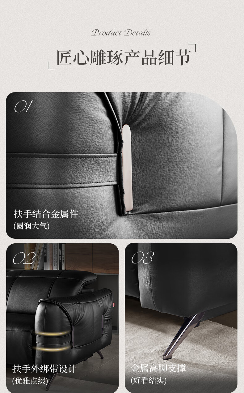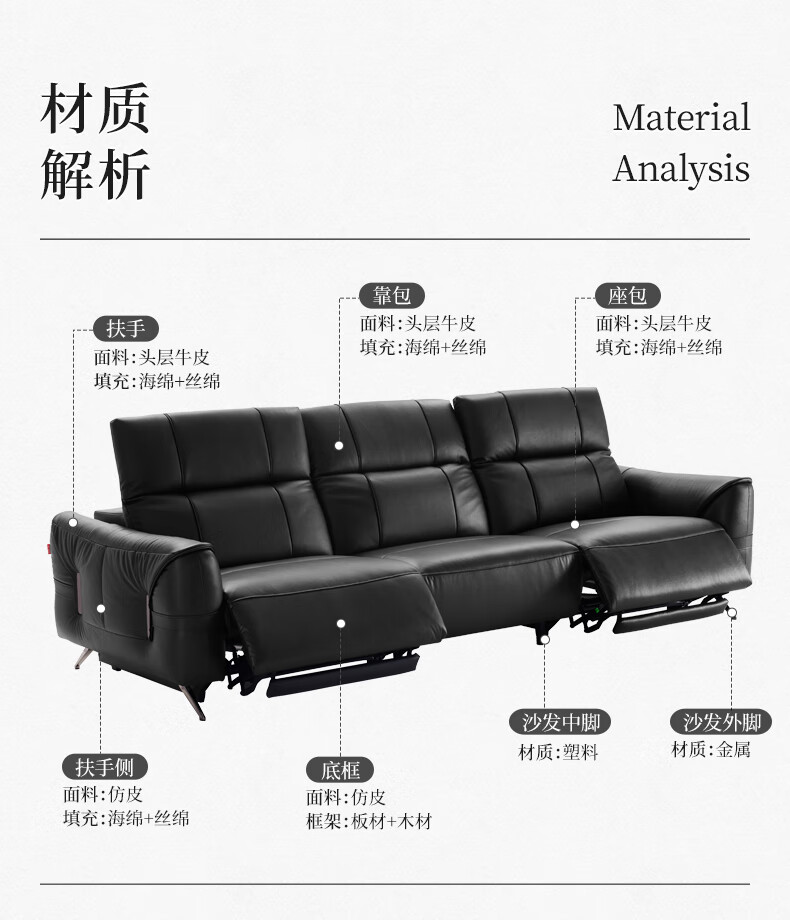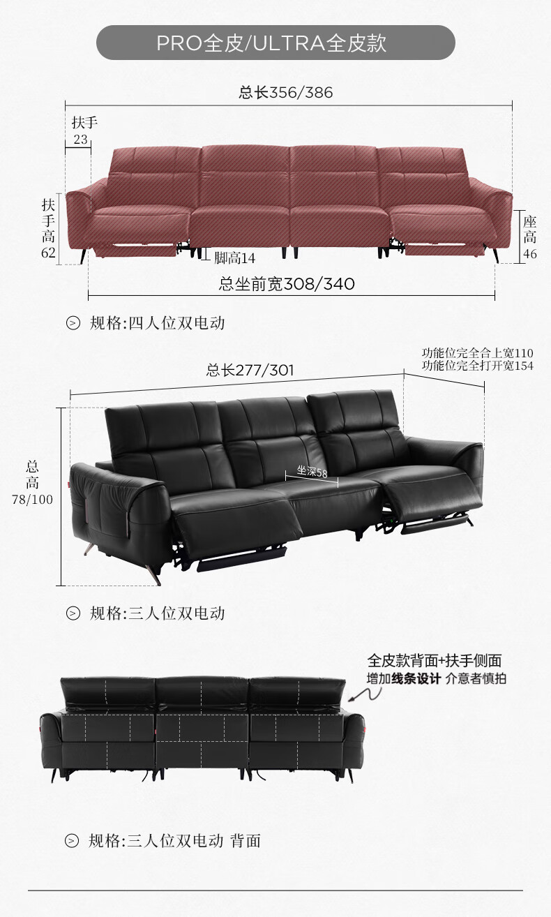顾家家居(KUKA)门店同款电动功能皮沙发钢琴键贝多芬6236 黑 3人位双电动3.01m