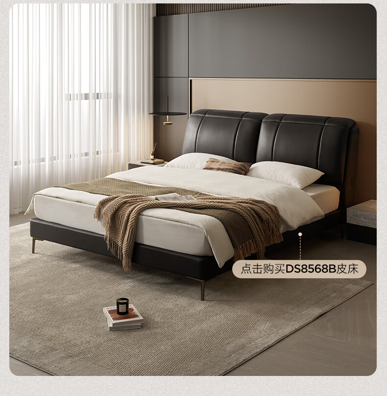 顾家家居华夫格奶油风头层牛皮床双人床卧室DS8109B馥芮白高脚款1.8