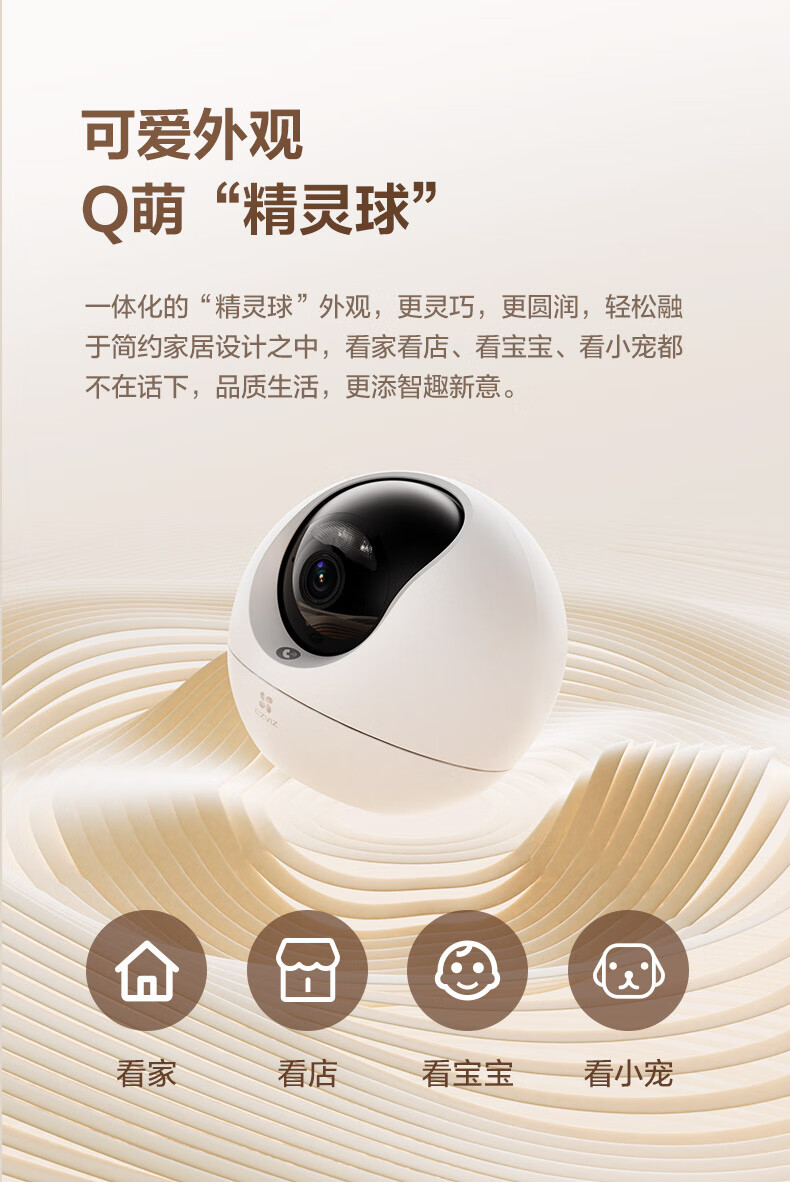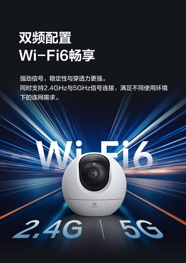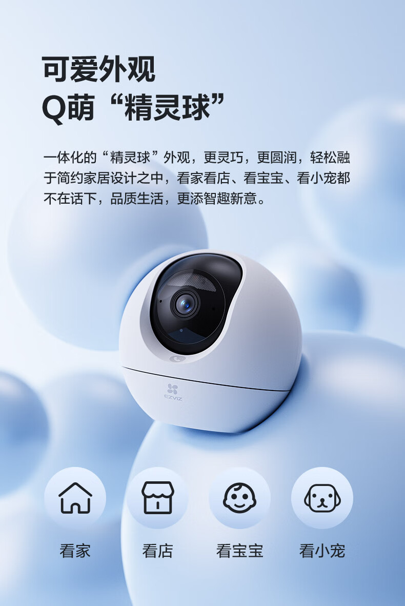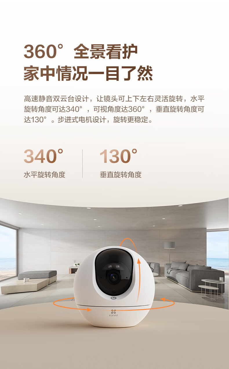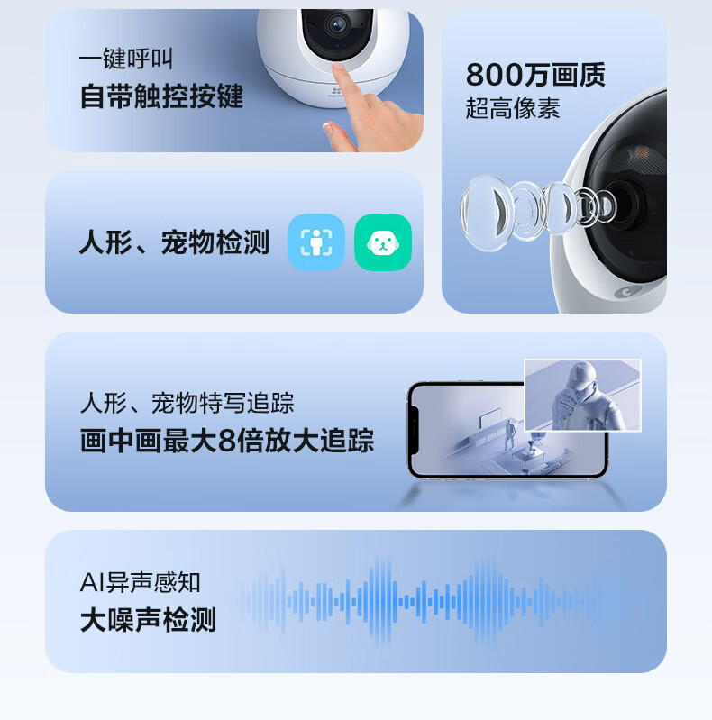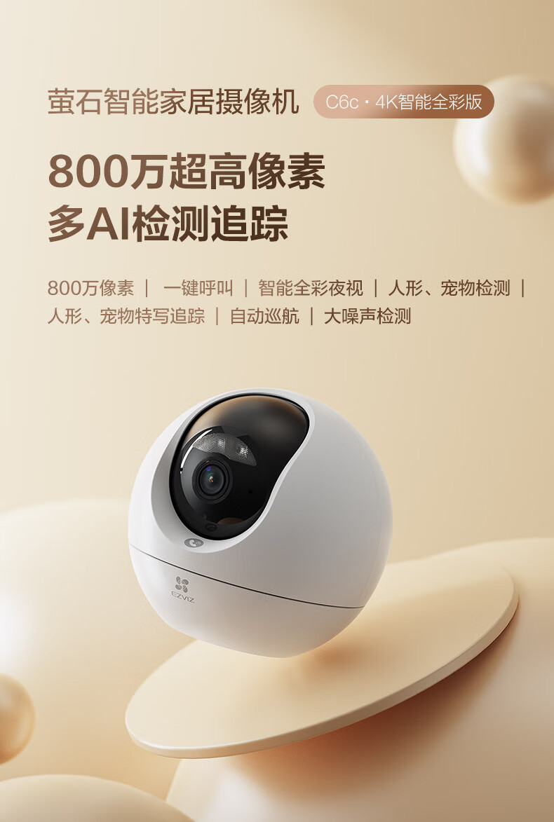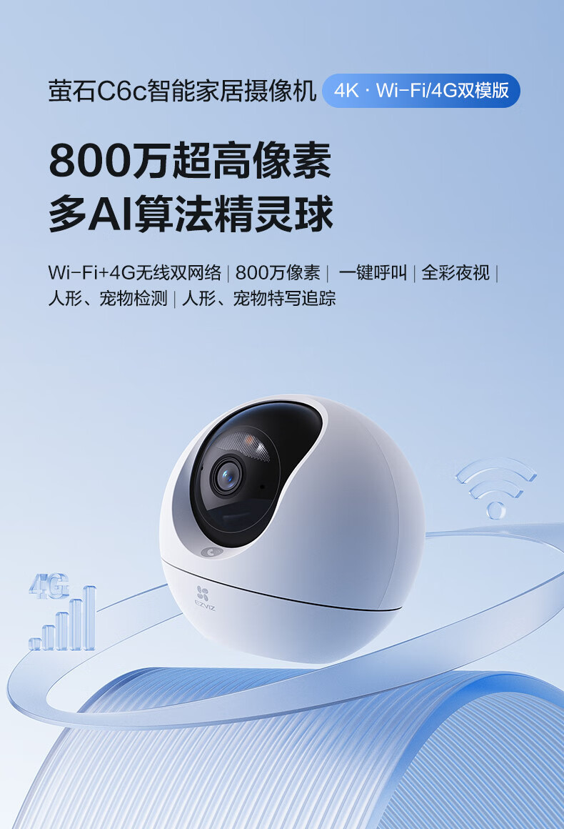 萤石摄像头家用 高清WIFI无线监控器莹石云APP手机远程查看室内360度全景旋转云台智能网络摄像机 【C6C-800万像素】 标配【送64g卡】