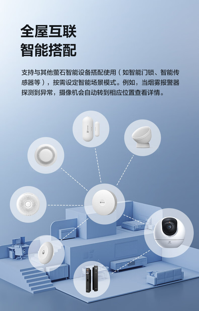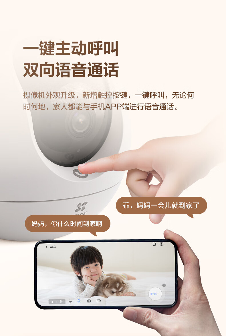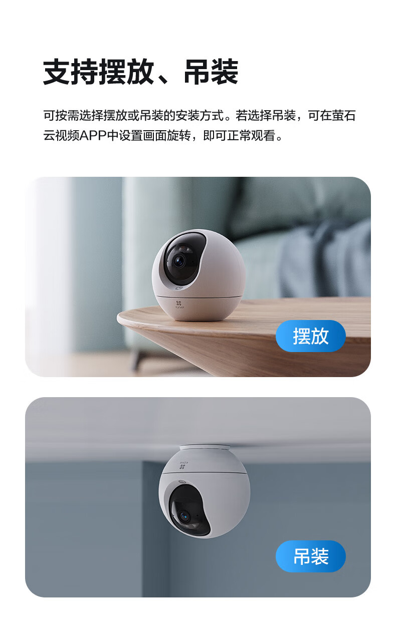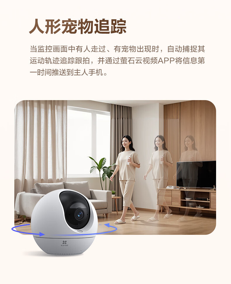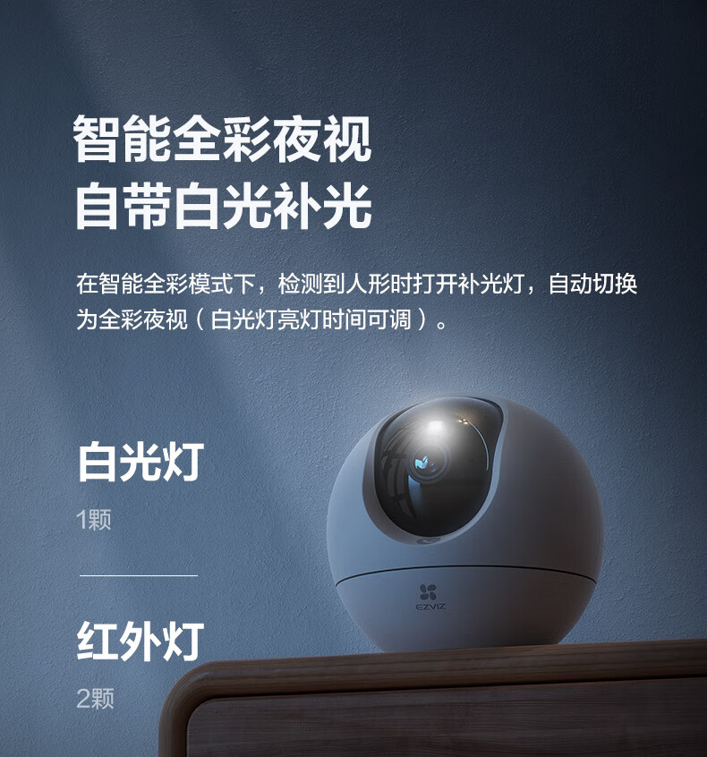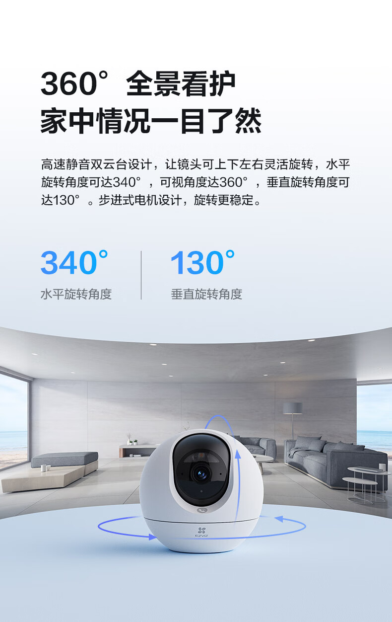 萤石摄像头家用 高清WIFI无线监控器莹石云APP手机远程查看室内360度全景旋转云台智能网络摄像机 【C6C-800万像素】 标配【送64g卡】