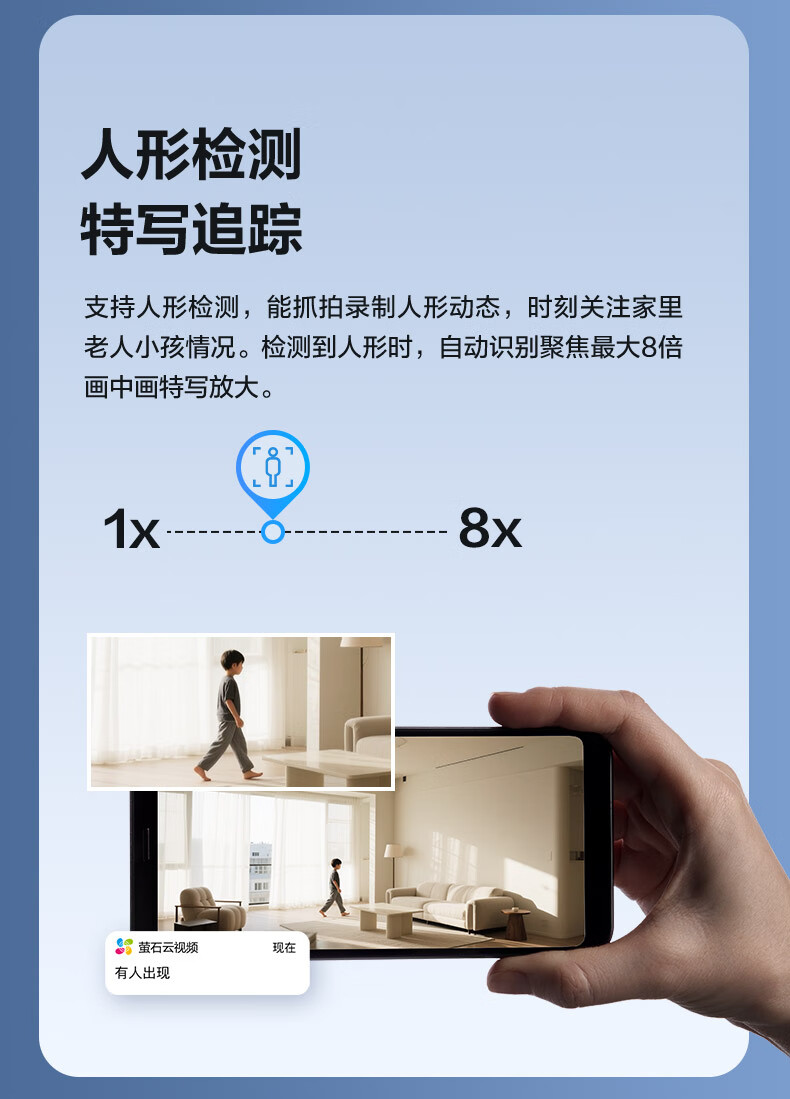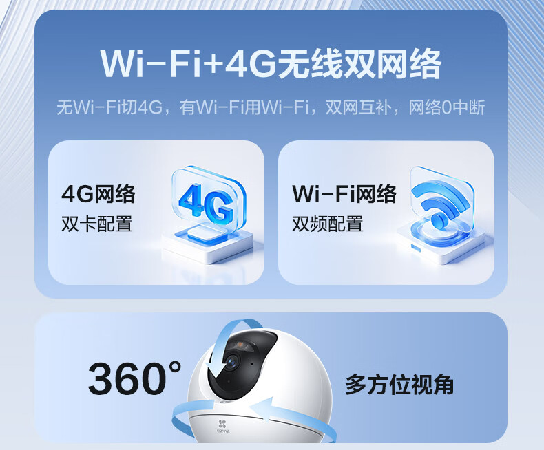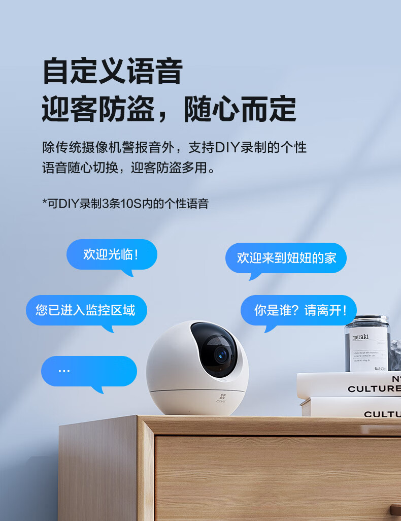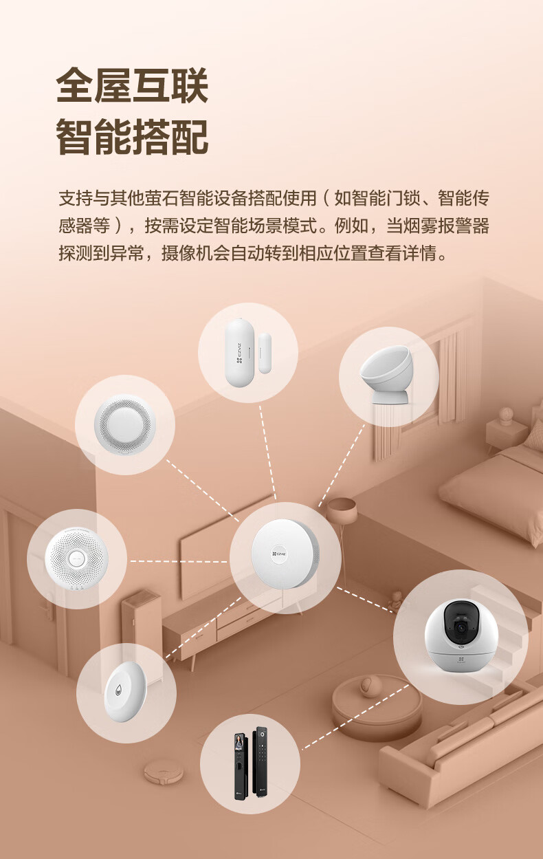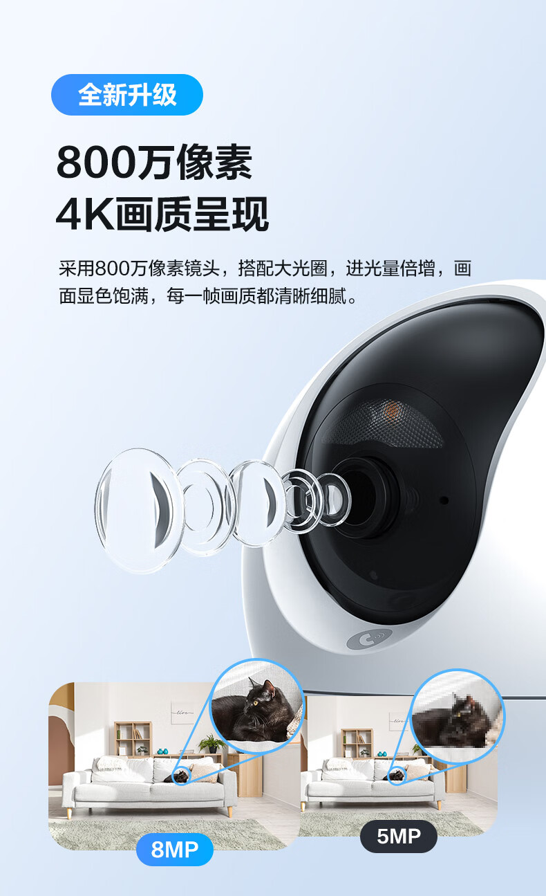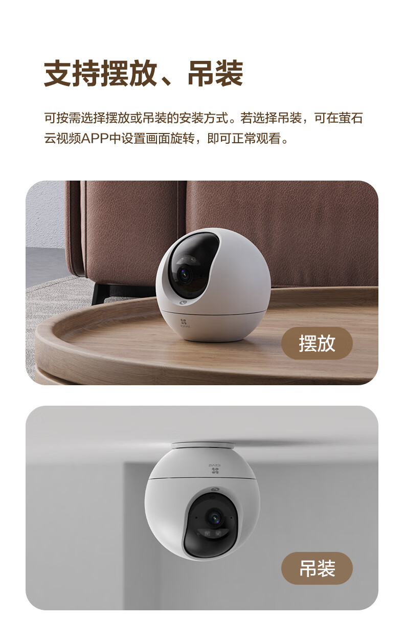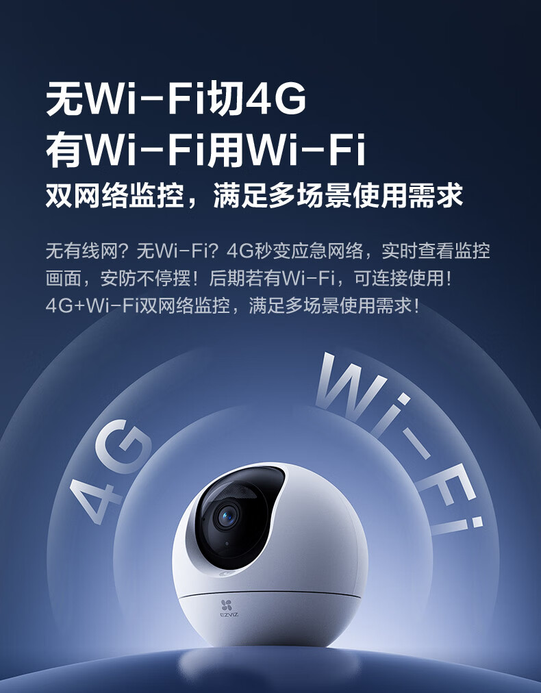 萤石摄像头家用 高清WIFI无线监控器莹石云APP手机远程查看室内360度全景旋转云台智能网络摄像机 【C6C-800万像素】 标配【送64g卡】
