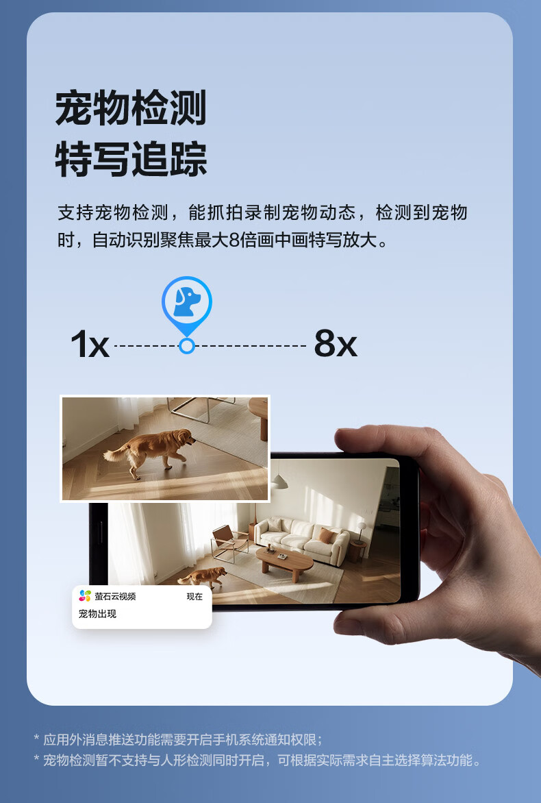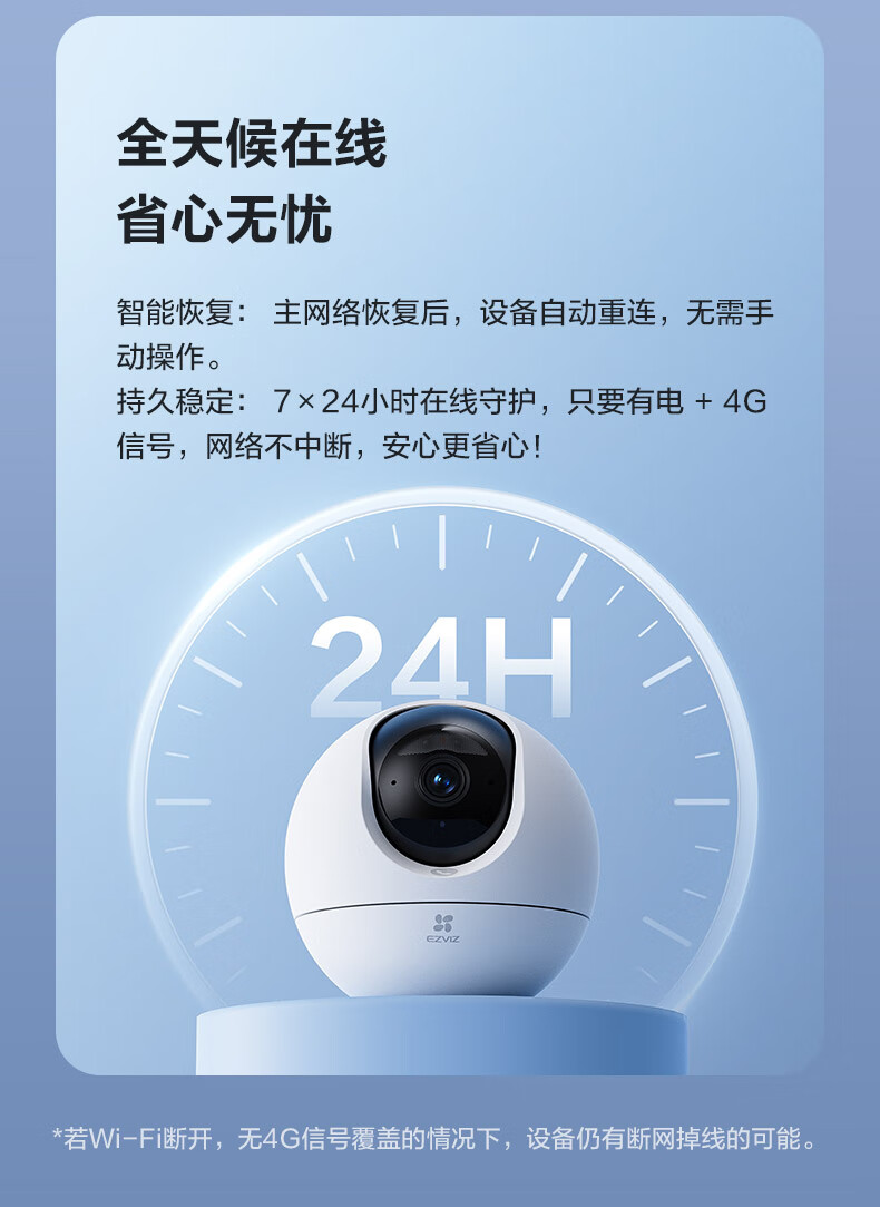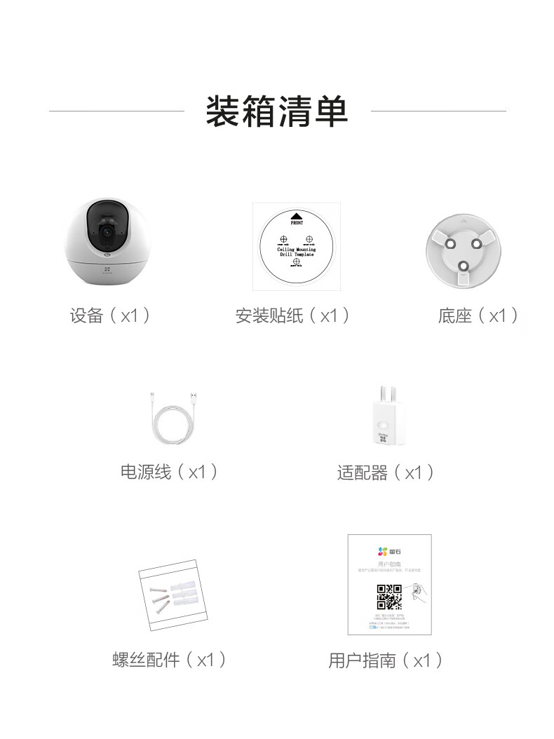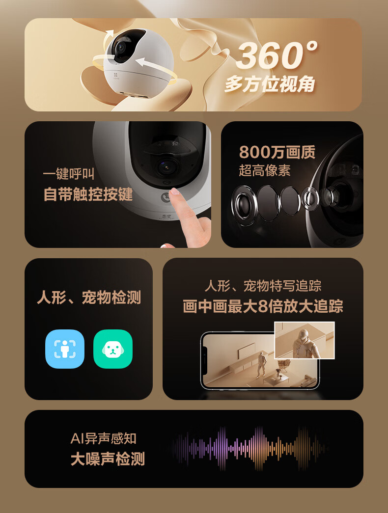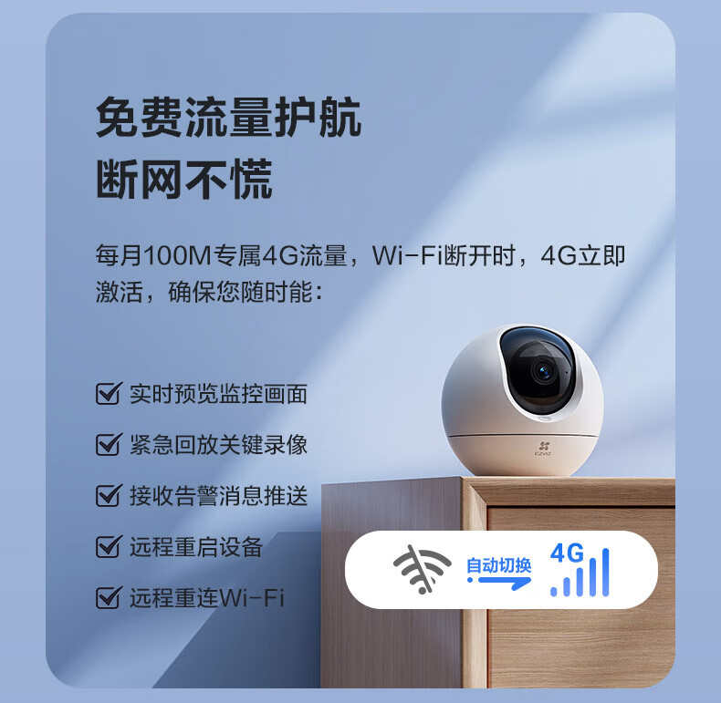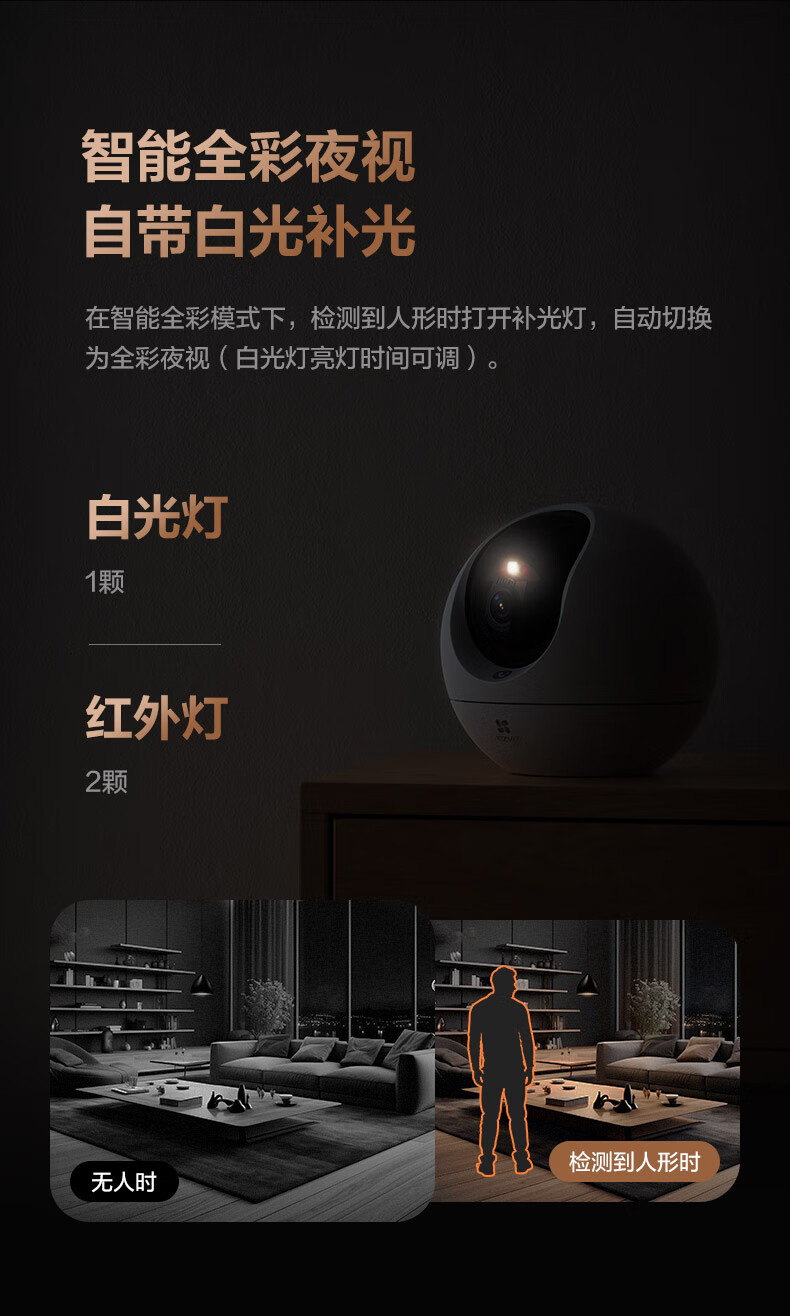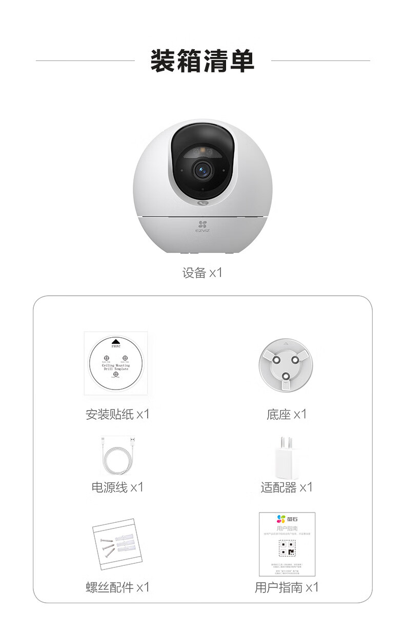 萤石摄像头家用 高清WIFI无线监控器莹石云APP手机远程查看室内360度全景旋转云台智能网络摄像机 【C6C-800万像素】 标配【送64g卡】