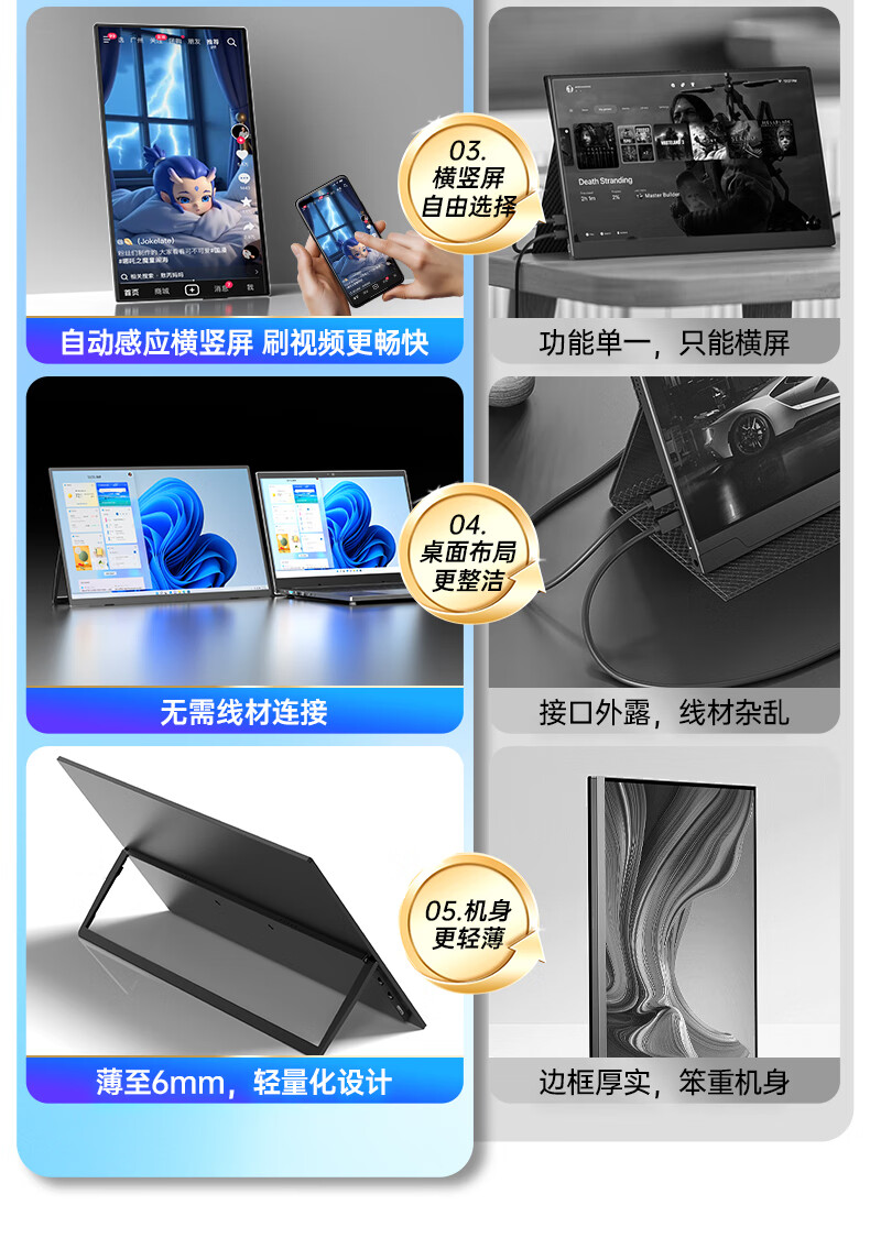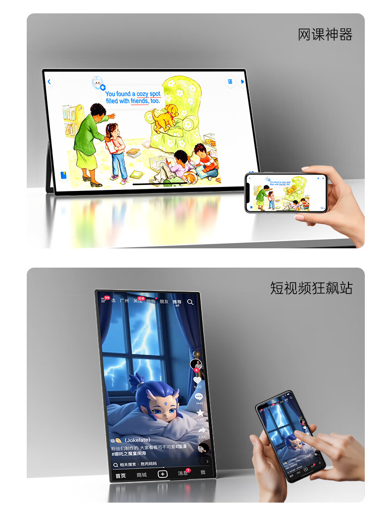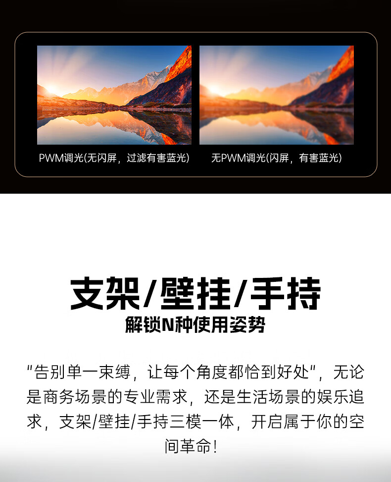 爱国者aigo16英寸便携式显示器 扩展屏笔记本电脑副屏 电竞办公炒股电脑扩展屏一线通1200P
