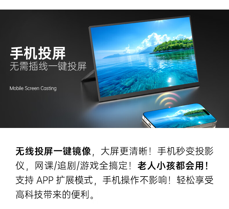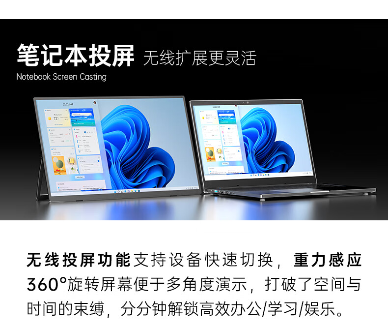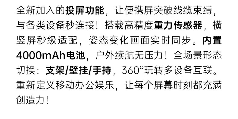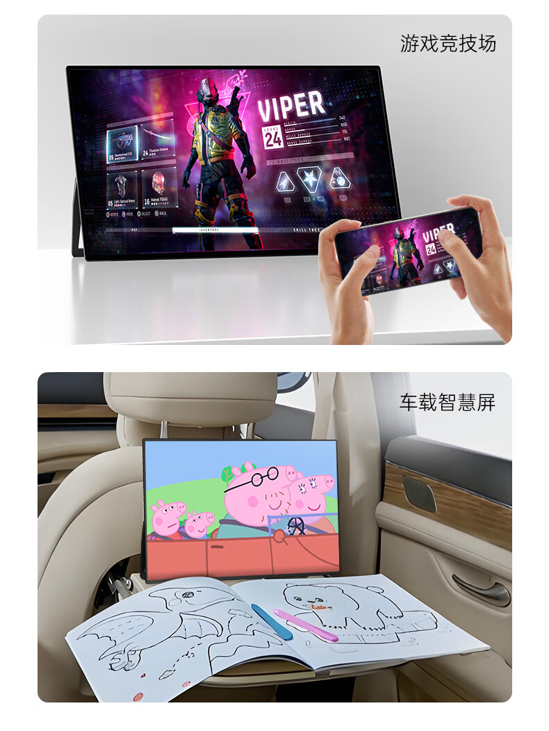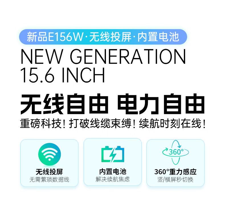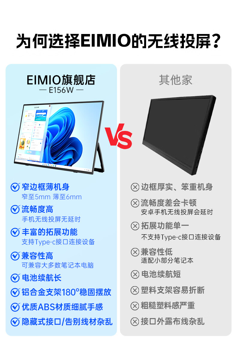 Eimio便携式显示器无线投屏 便携屏内置电池电脑笔记本副屏显示屏幕 PS5便携式手机投屏扩展屏E156W
