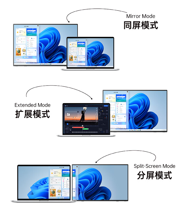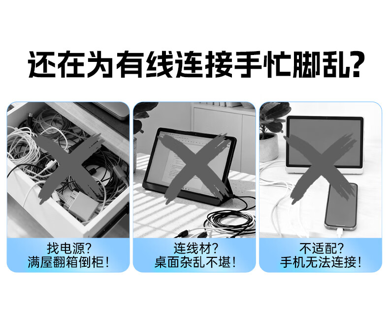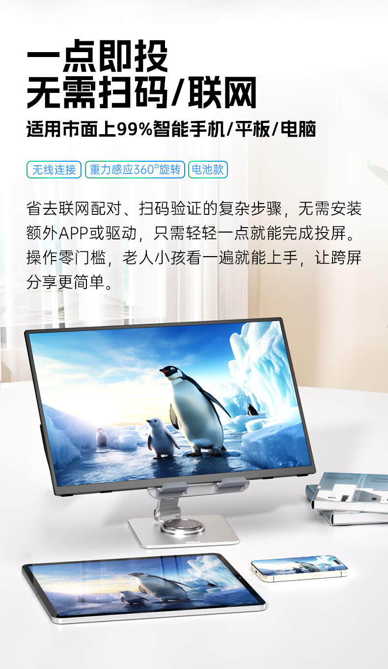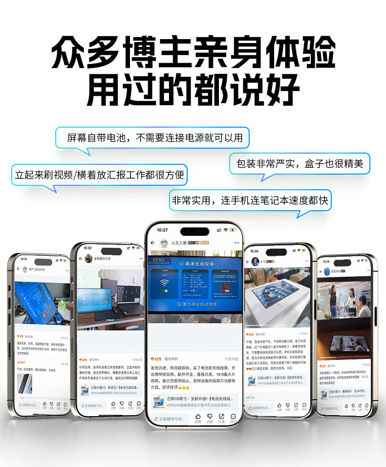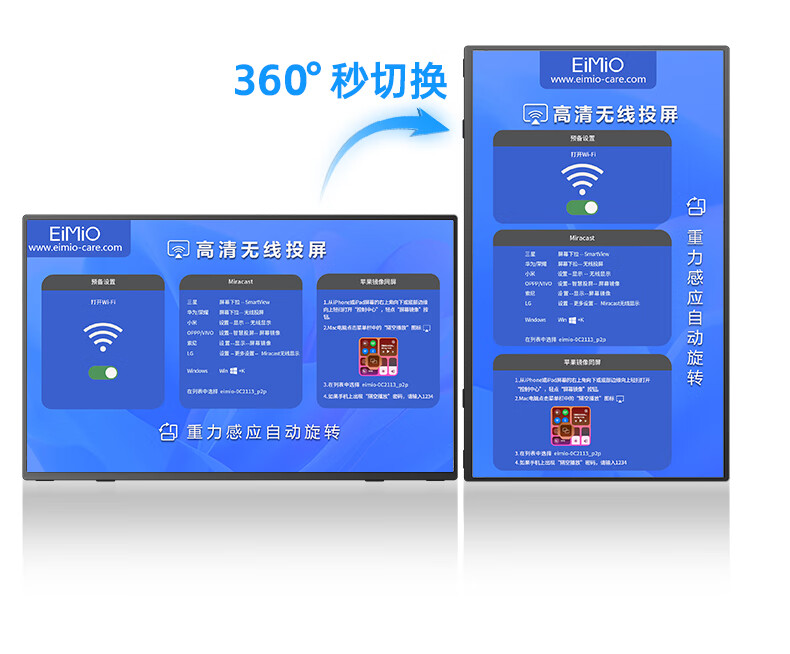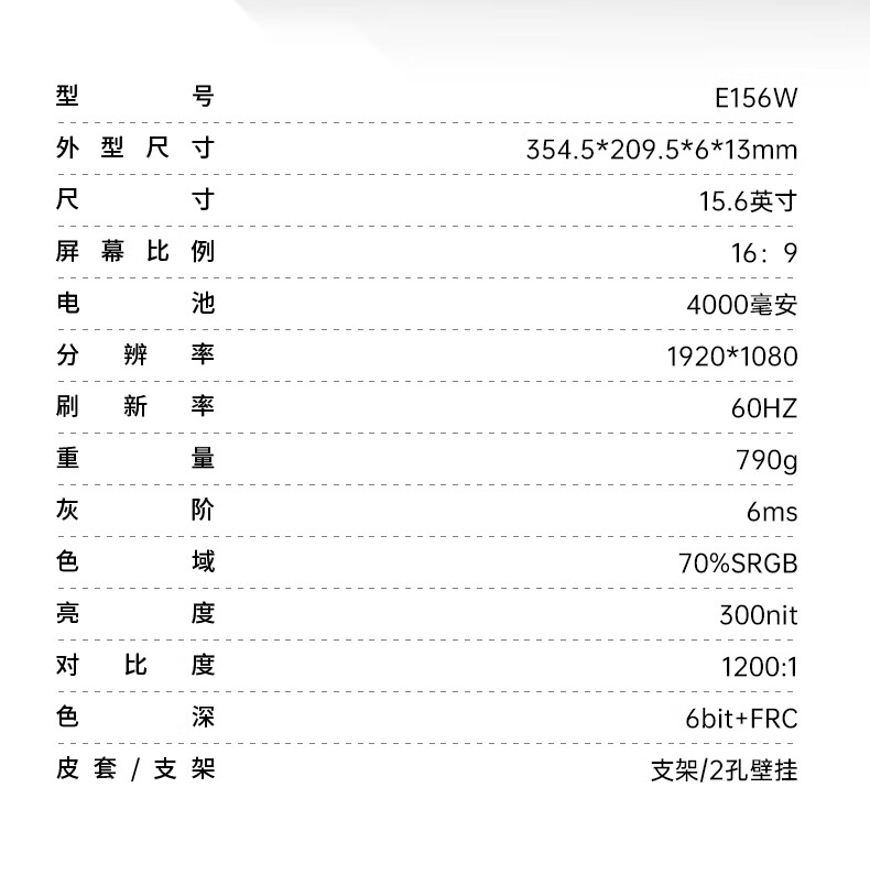 Eimio便携式显示器无线投屏 便携屏内置电池电脑笔记本副屏显示屏幕 PS5便携式手机投屏扩展屏E156W