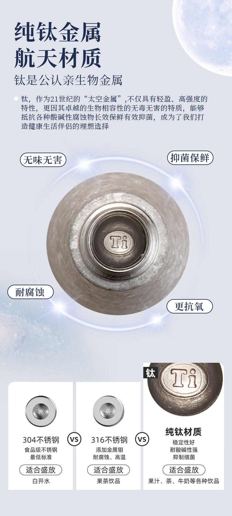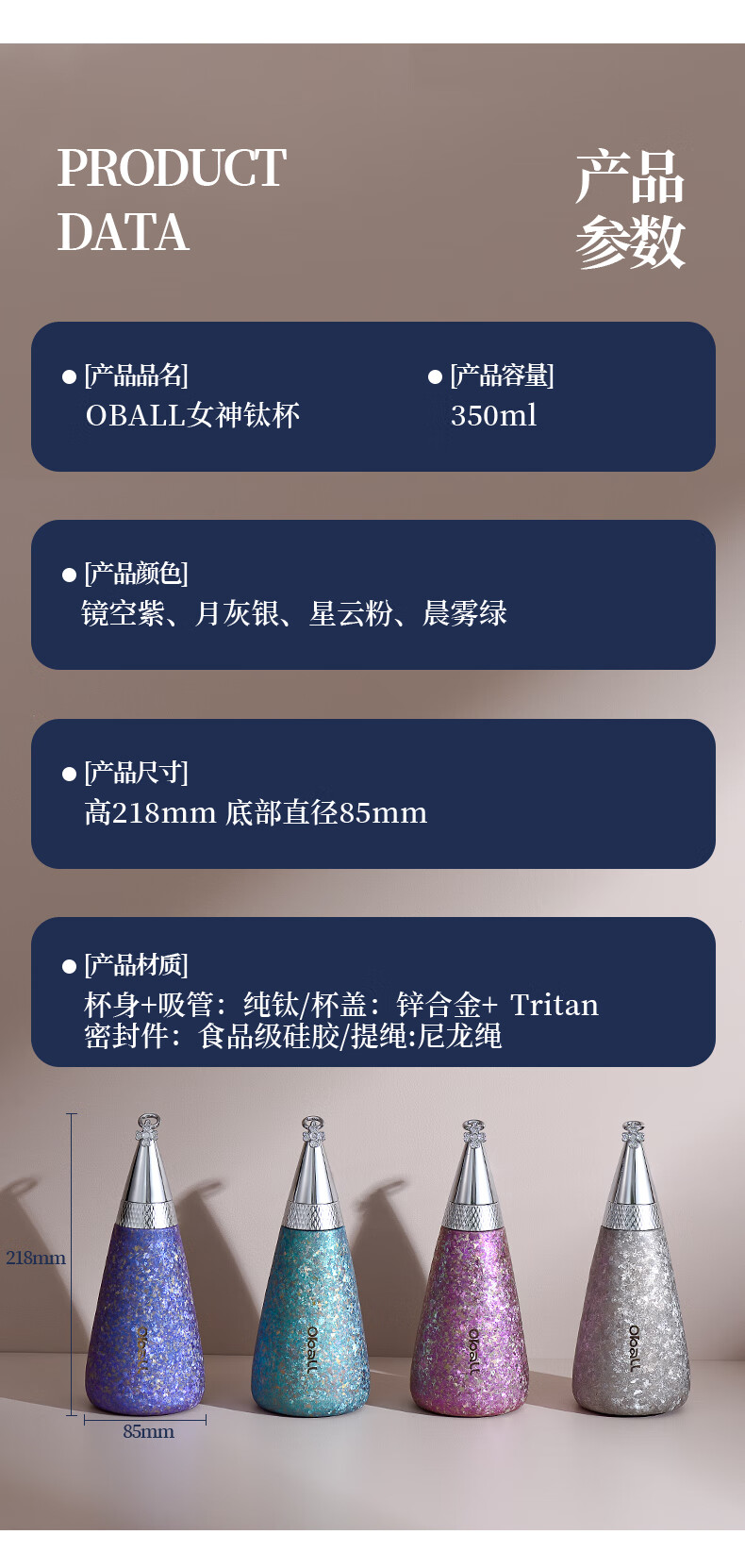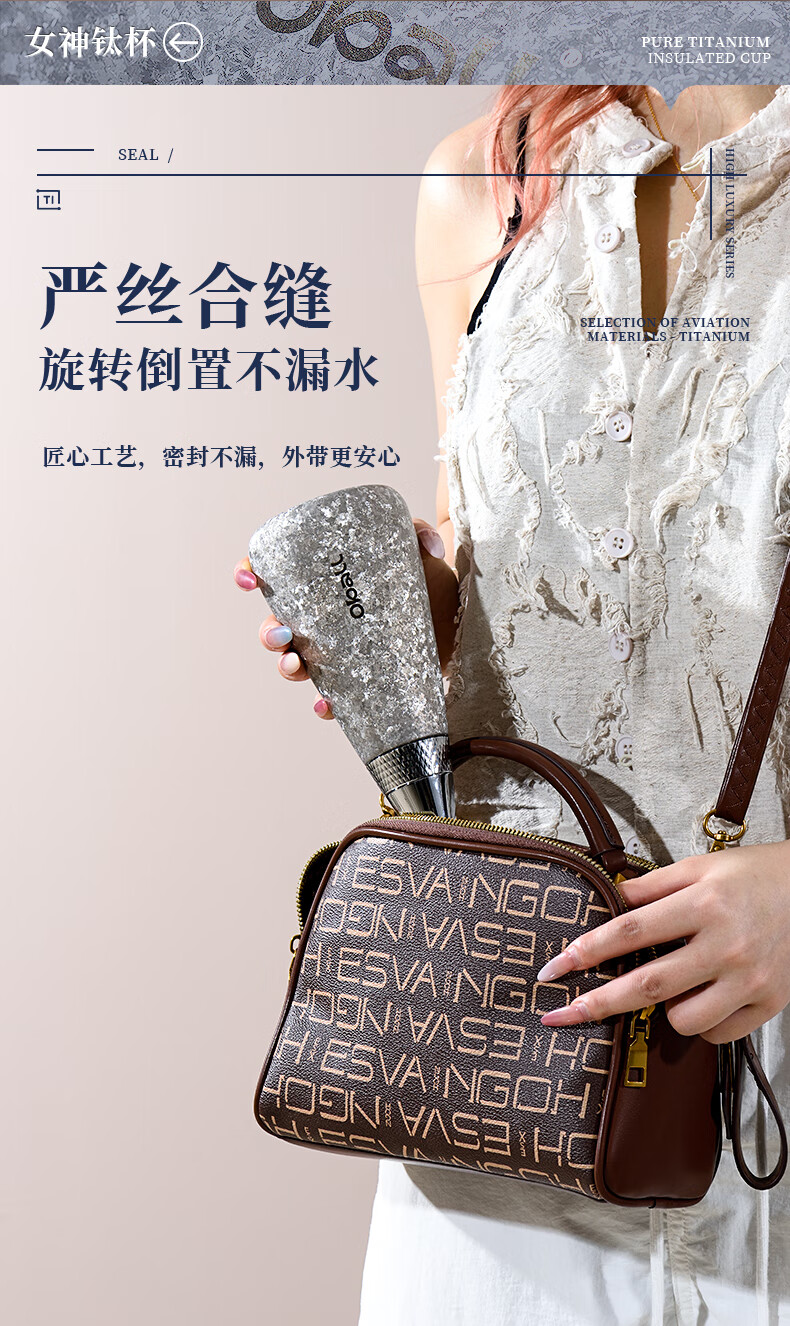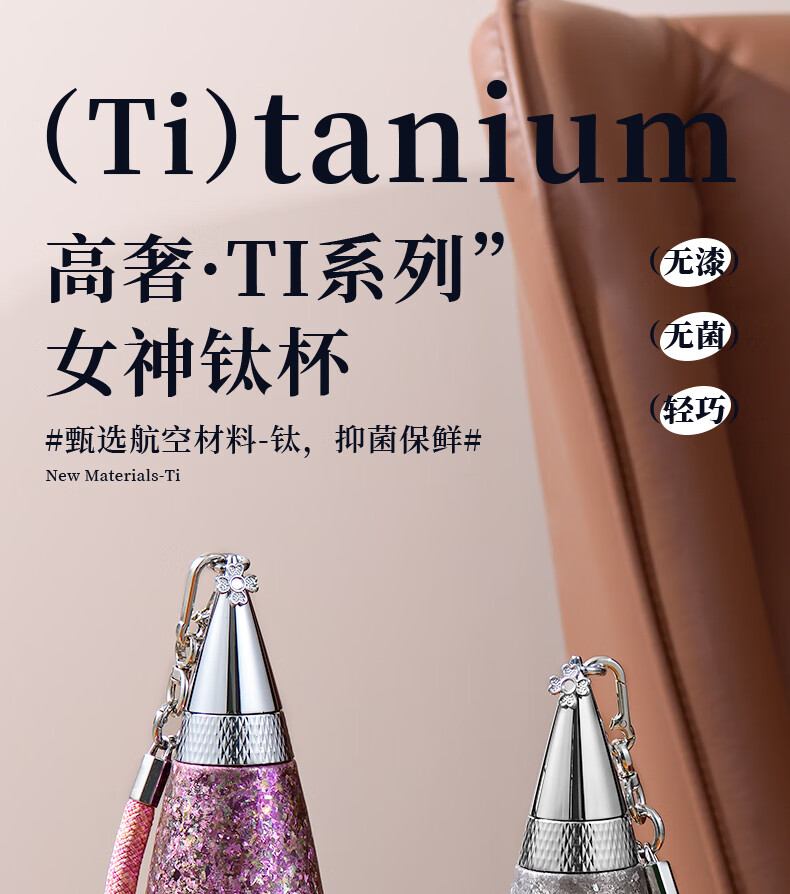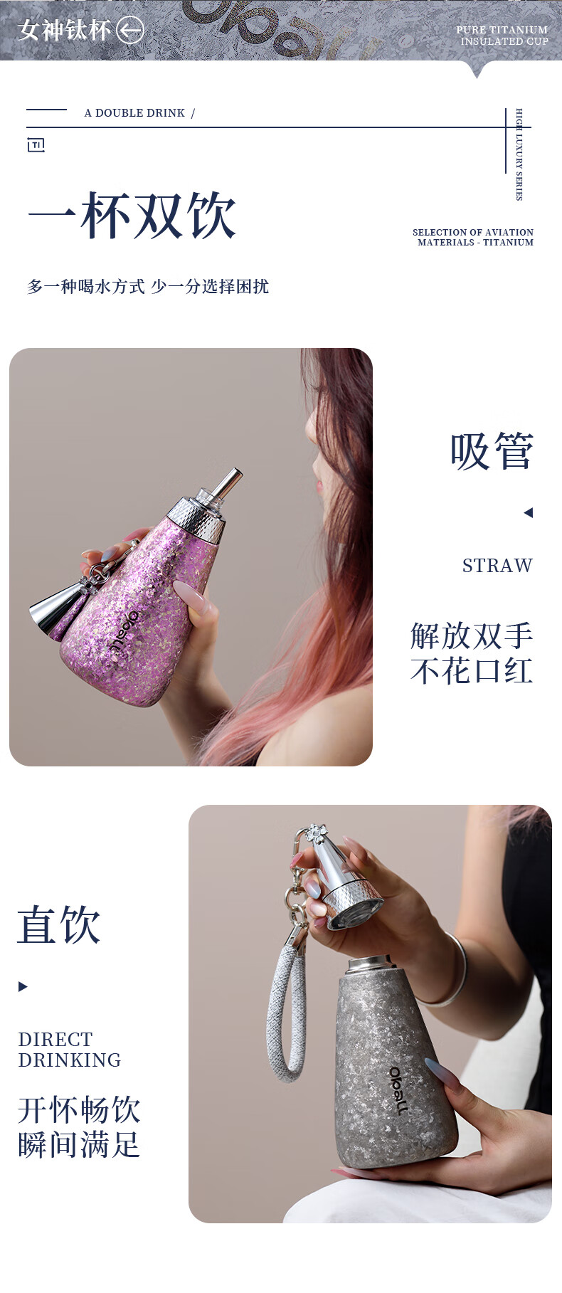 Oball女神钛杯高端轻奢内外纯钛保温杯女款送女朋友老婆生日礼物水杯子
