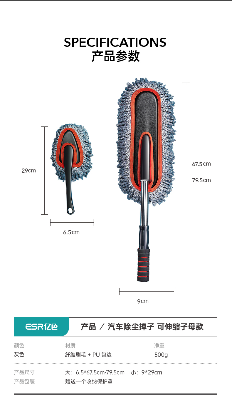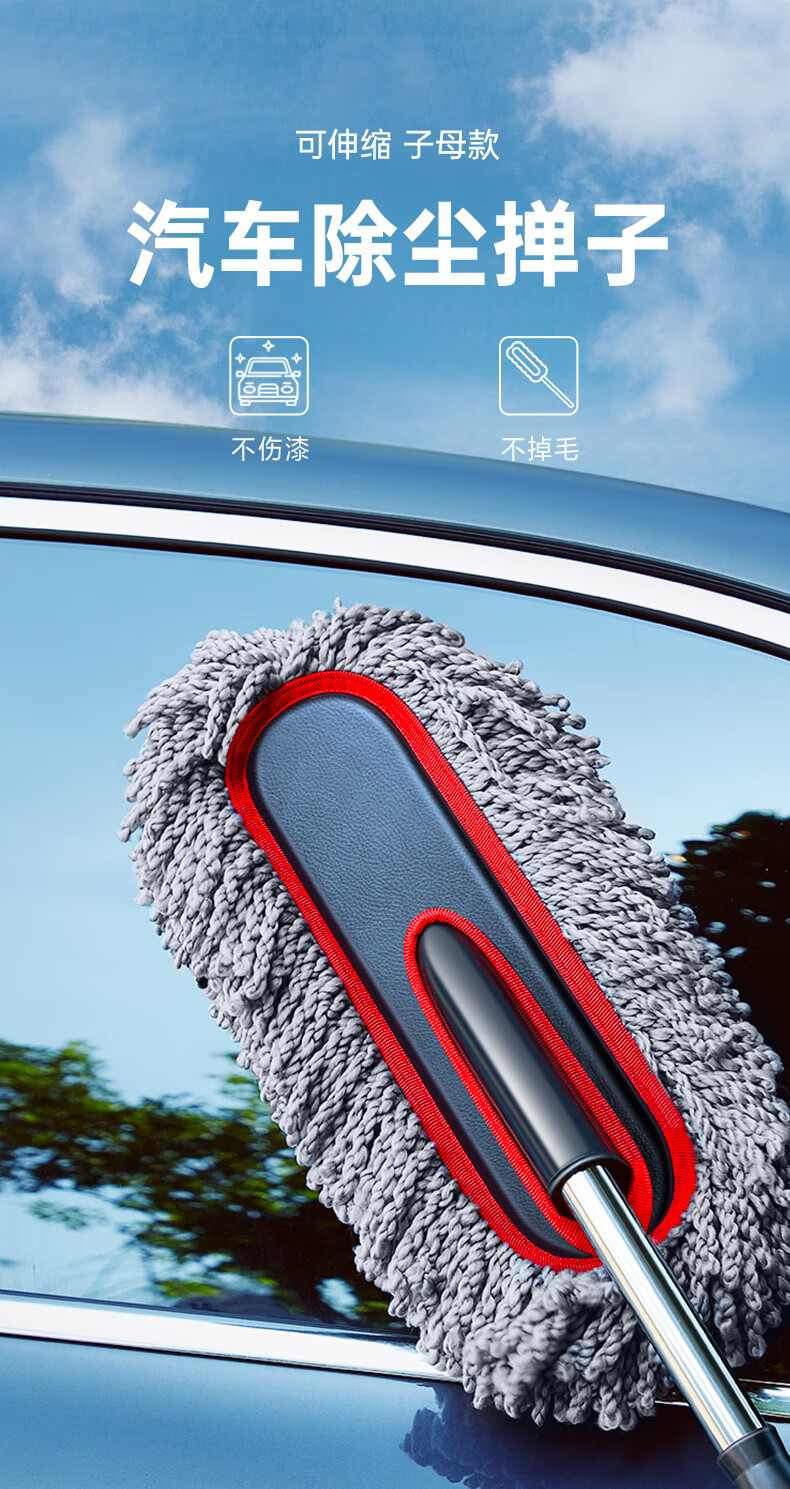 亿色汽车掸子擦车拖把除尘掸子汽车刷子除尘掸软毛不伤车内饰洗车工具