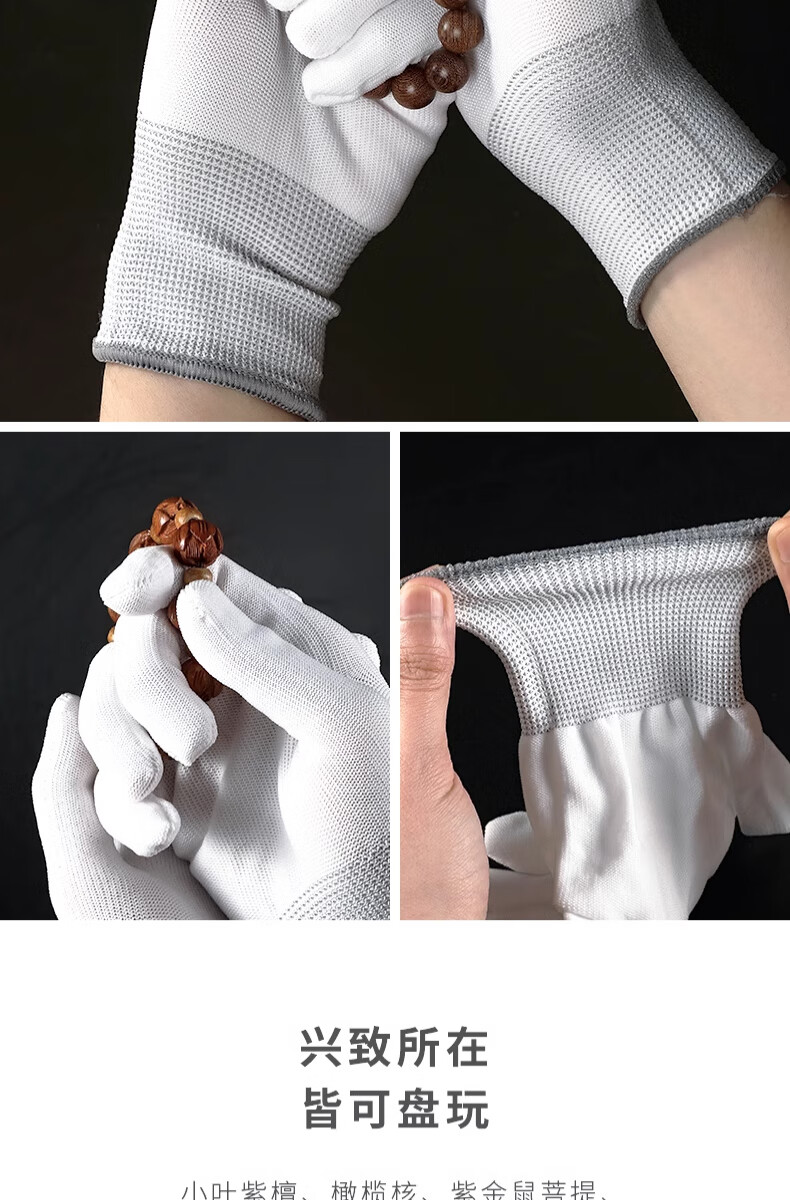 AILUKI日本文玩手套纳米盘玩盘串高端核桃菩提小叶紫檀盘珠抛光清洁手套 12双(S码)粉色
