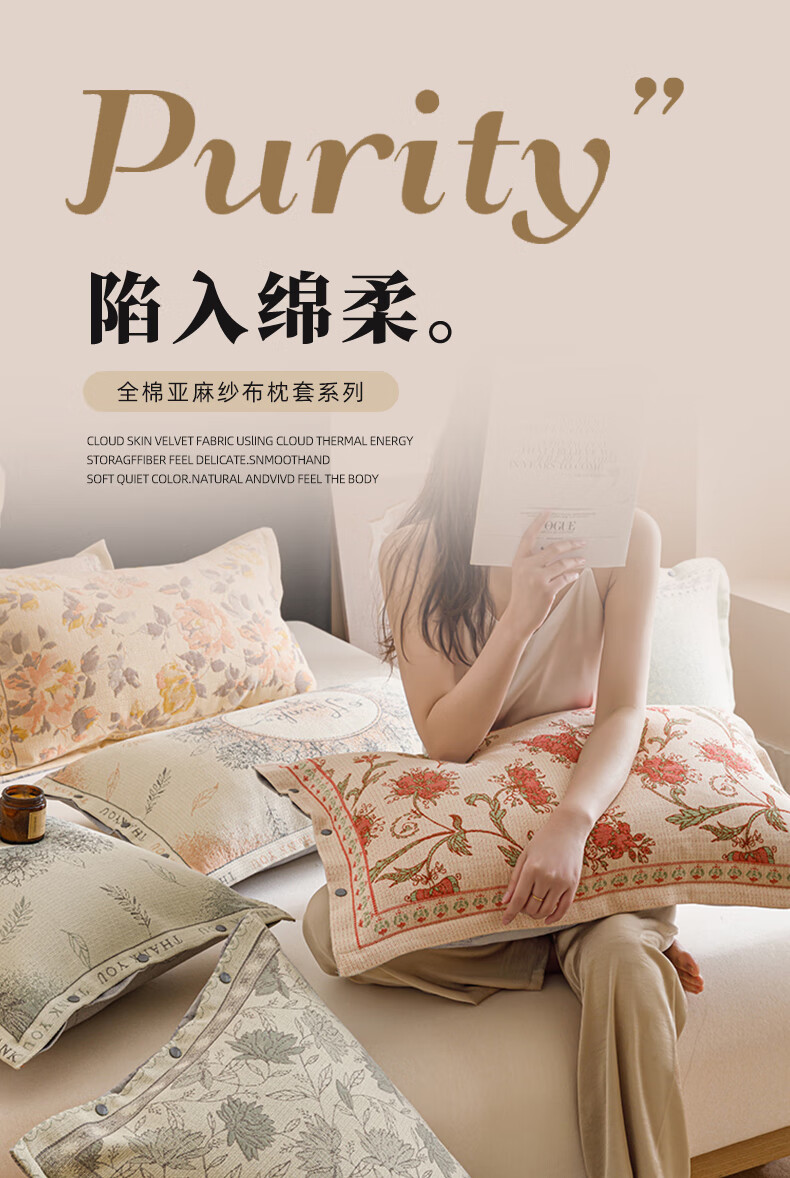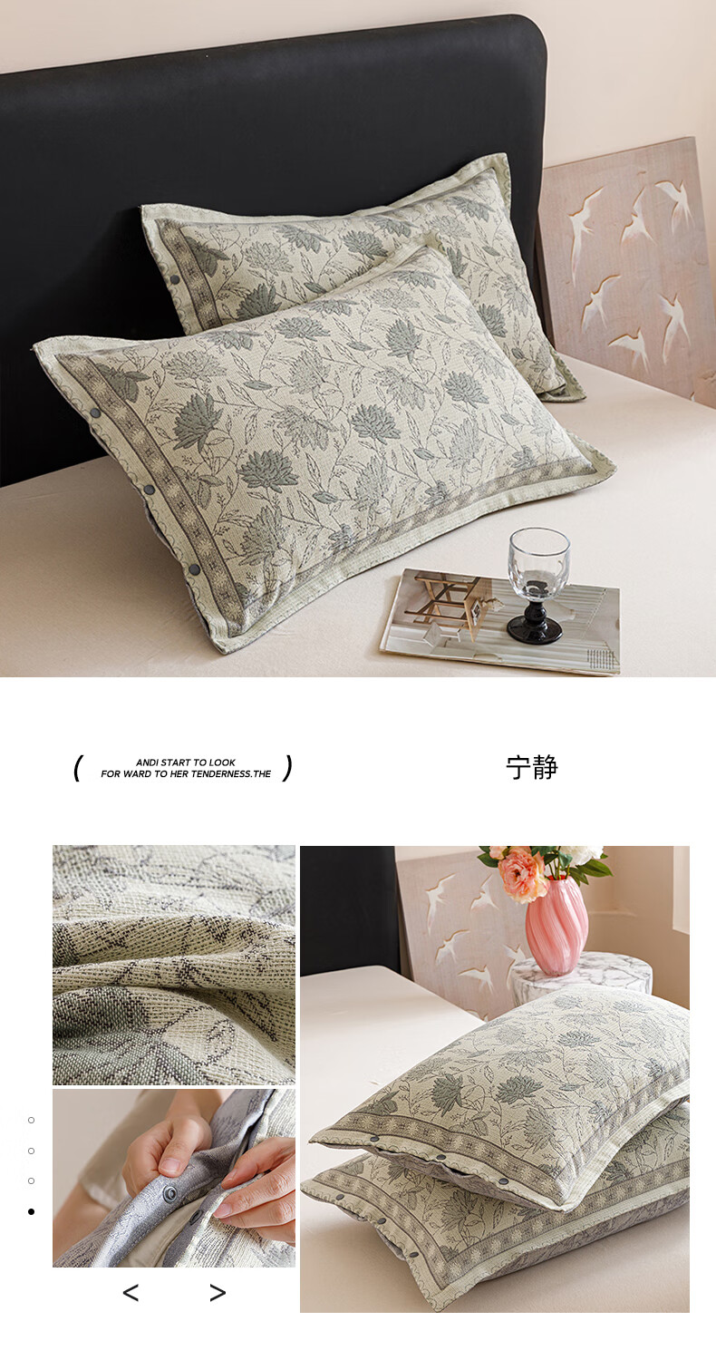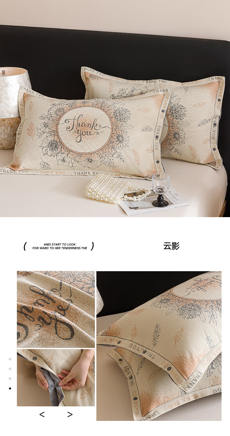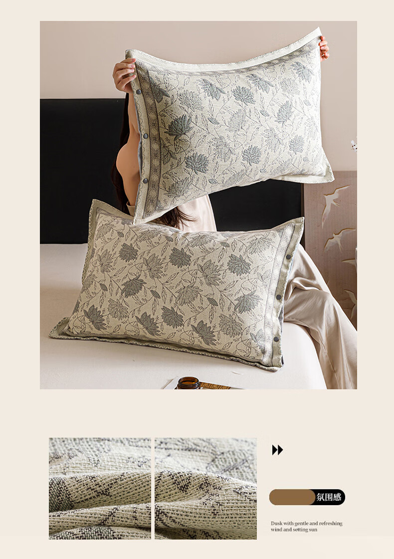 DEATKN德国全棉纱布枕套一对装100棉枕头套感枕头内胆套家用防头油 云影【装】全棉纱布枕套 1支 48cmX74cm