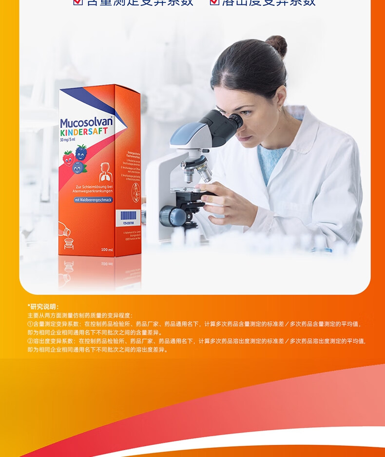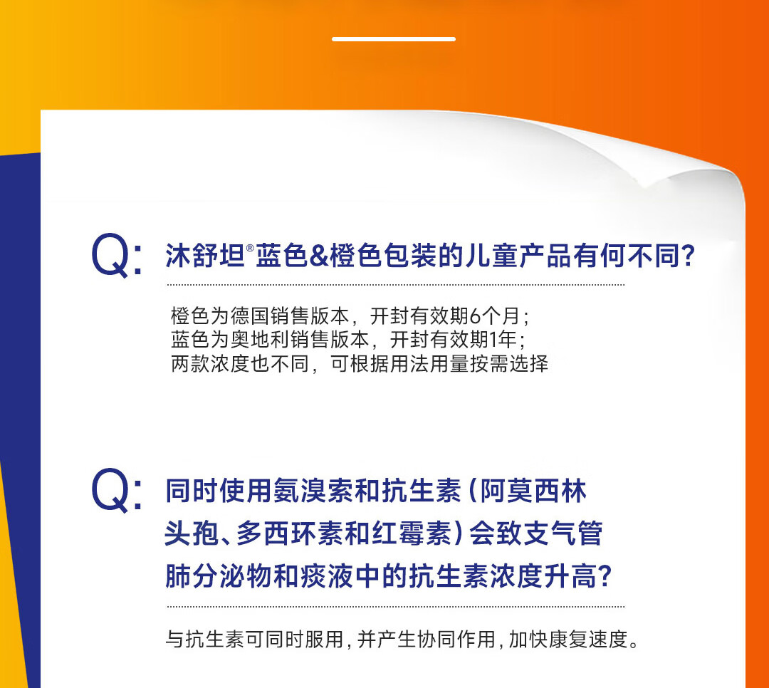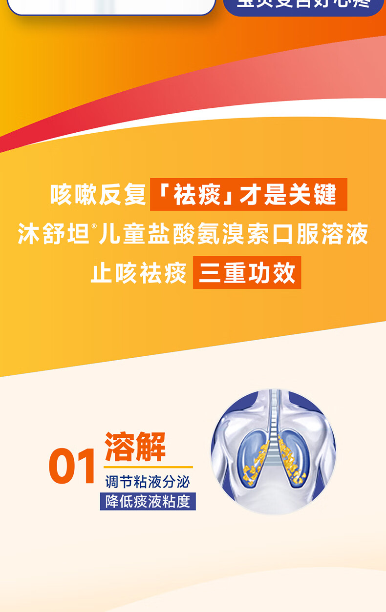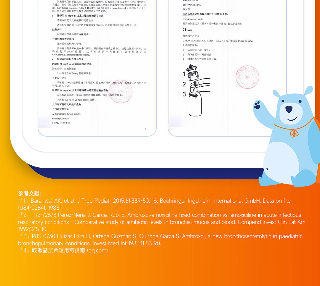 【原研进口】沐舒坦德国原装进口原研盐酸氨溴索化痰清肺感冒咳嗽祛痰止咳儿童糖浆口服液100ml