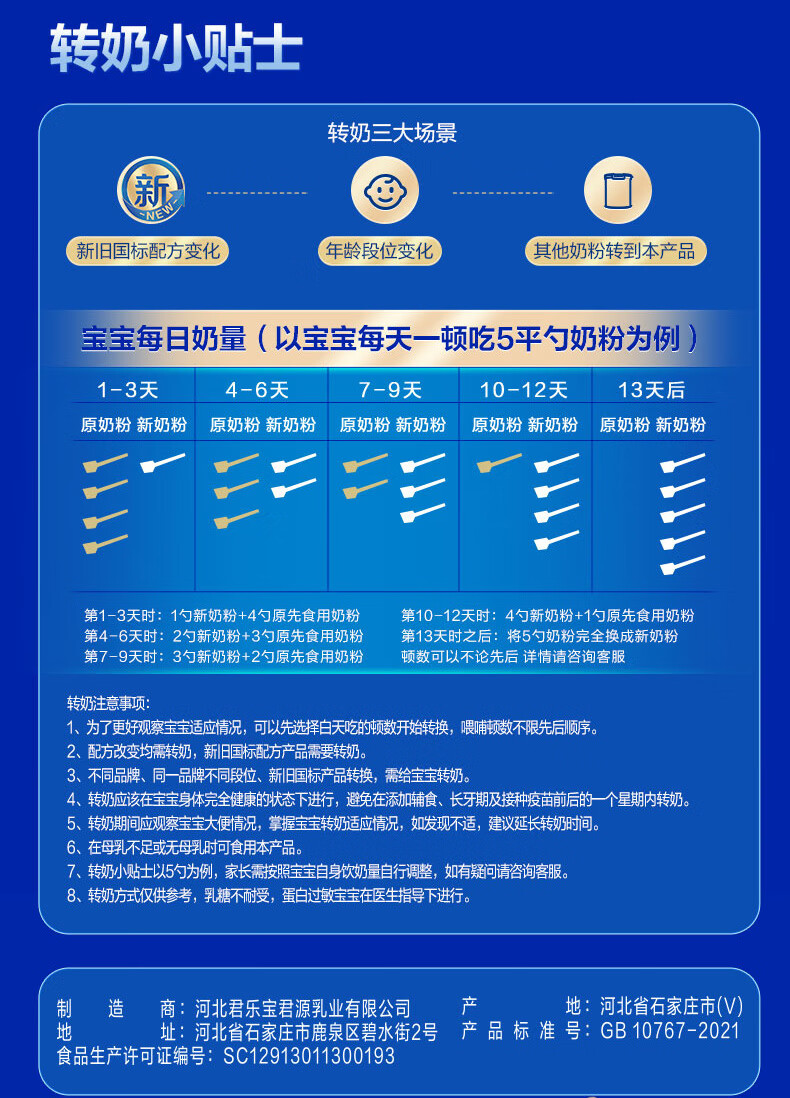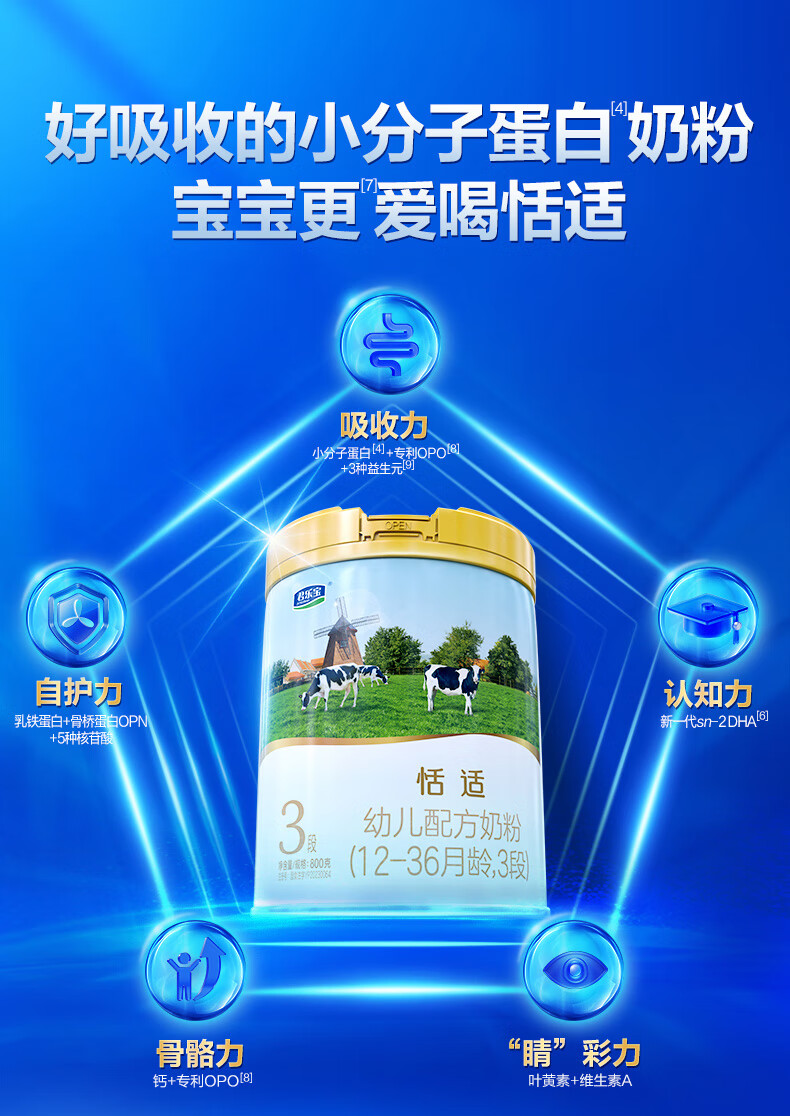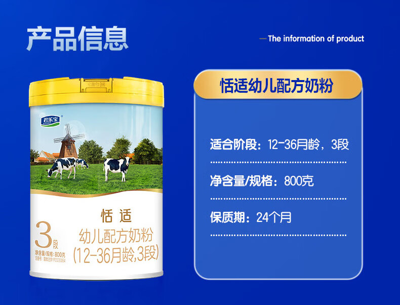 君乐宝恬适3段幼儿配方奶粉(12-36月龄)800克 新老包装随机发