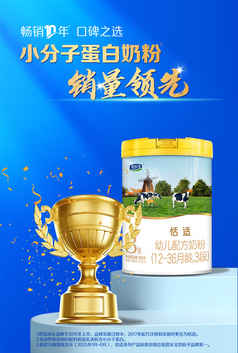 君乐宝(JUNLEBAO) 诠臻爱3段幼儿配方奶粉(12-36月龄) 800g*6听装