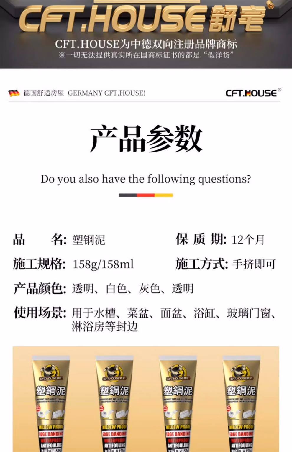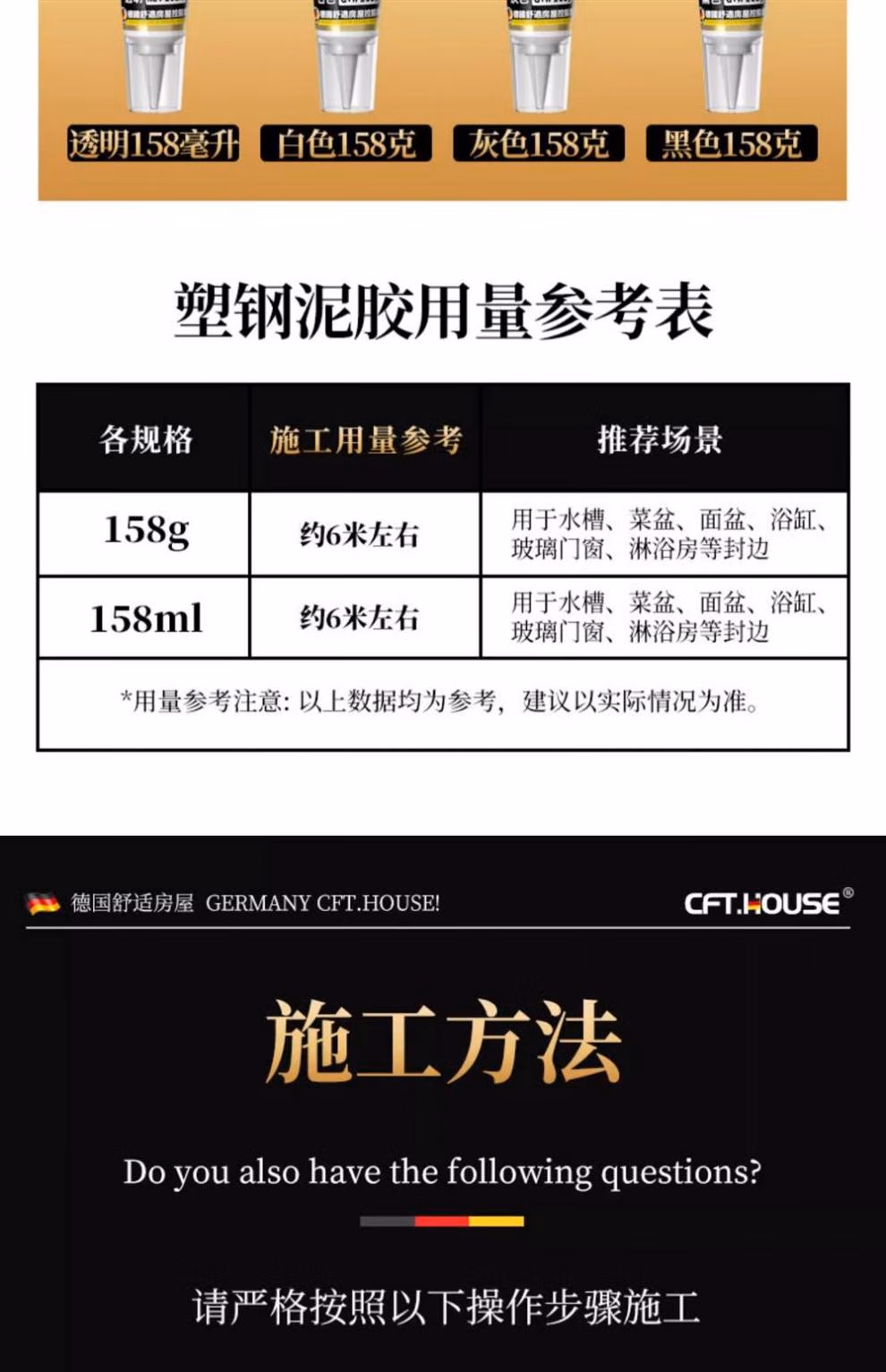 DEATKN德国高端塑钢泥防水防霉厨卫密封胶卫生间补漏维修补填缝隙堵漏王 【白色158g】1支装+送全套工具速干不发