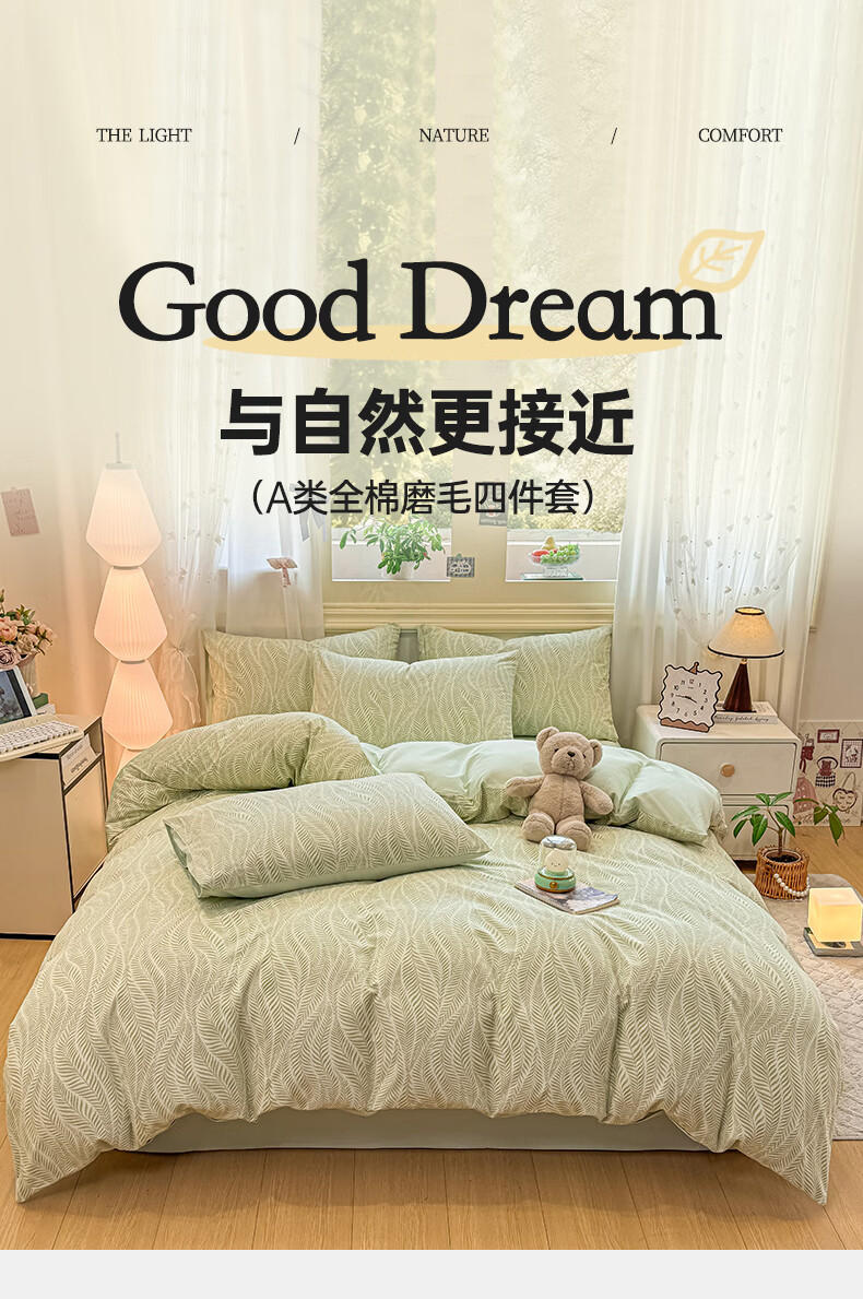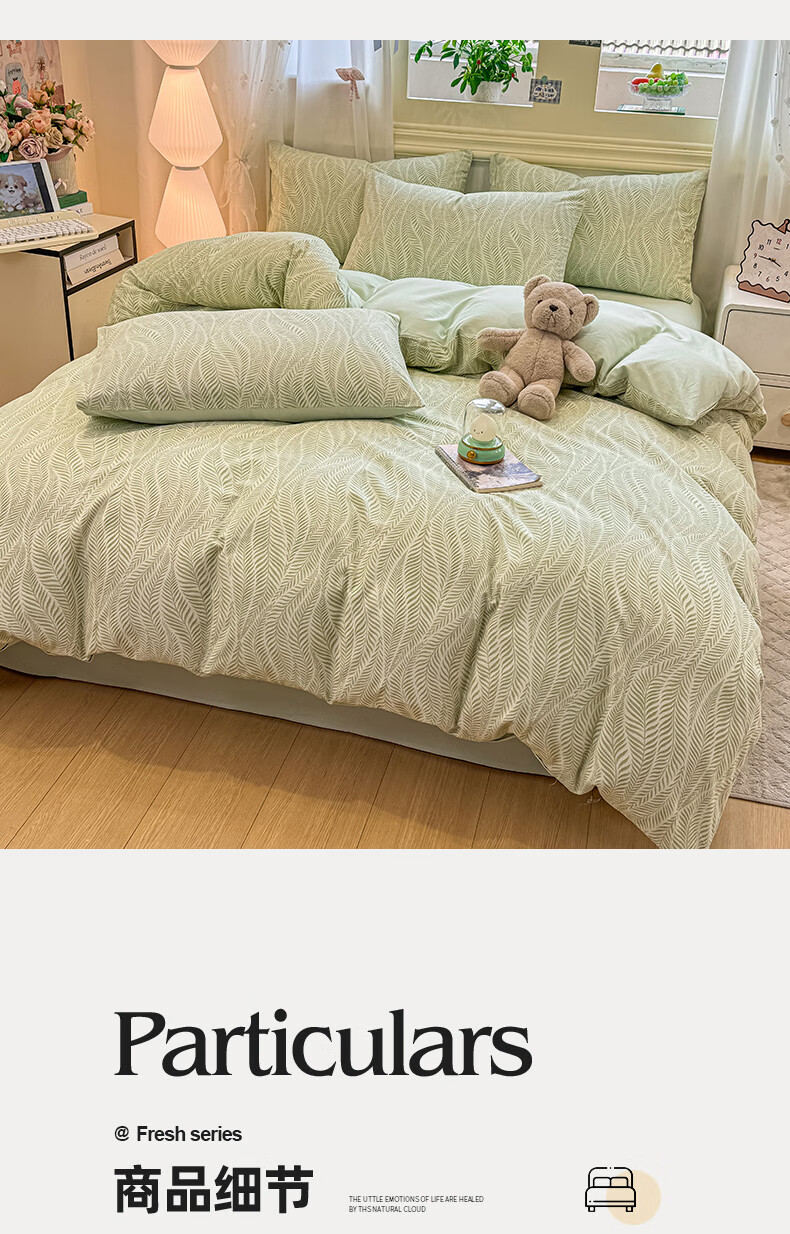 猫人A类100%全棉双层纱小清新床上四件套纯棉床单被套罩宿舍三件套 泡芙狗【全棉双层纱】 0.9m 床单款 三件套-150x200cm被套