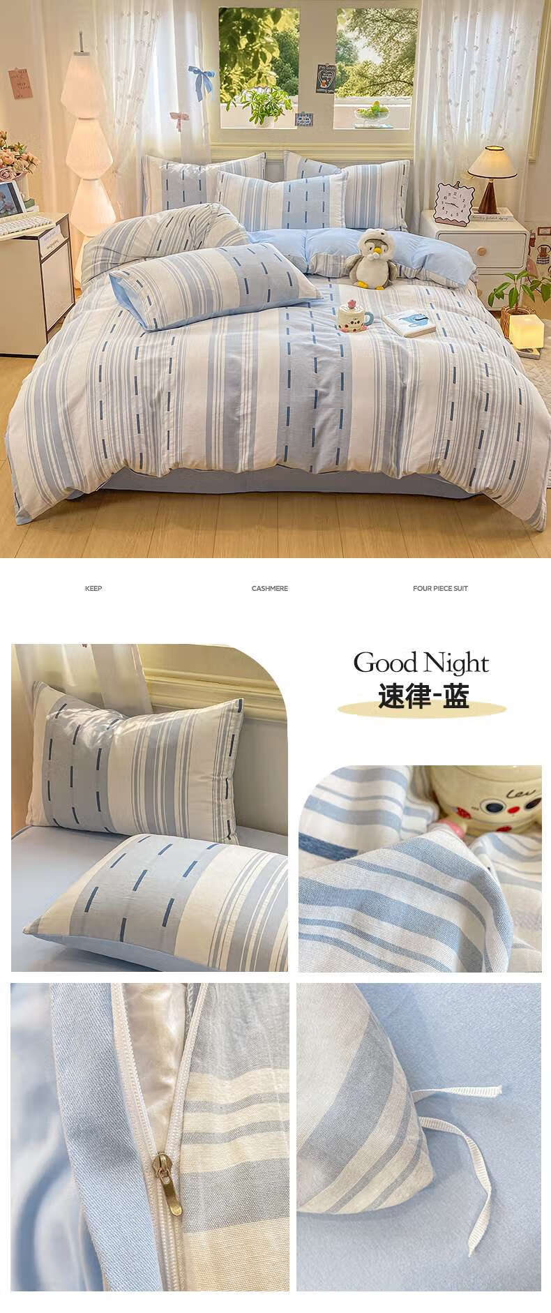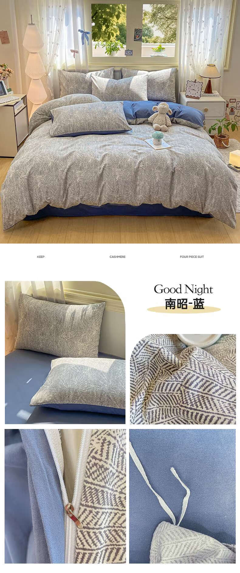 苏萱秋冬加厚纯棉磨毛床上四件套全棉被套轻奢高端床品床单三件套床笠 速律-蓝 1.5m 床笠款 四件套-被套200x230cm