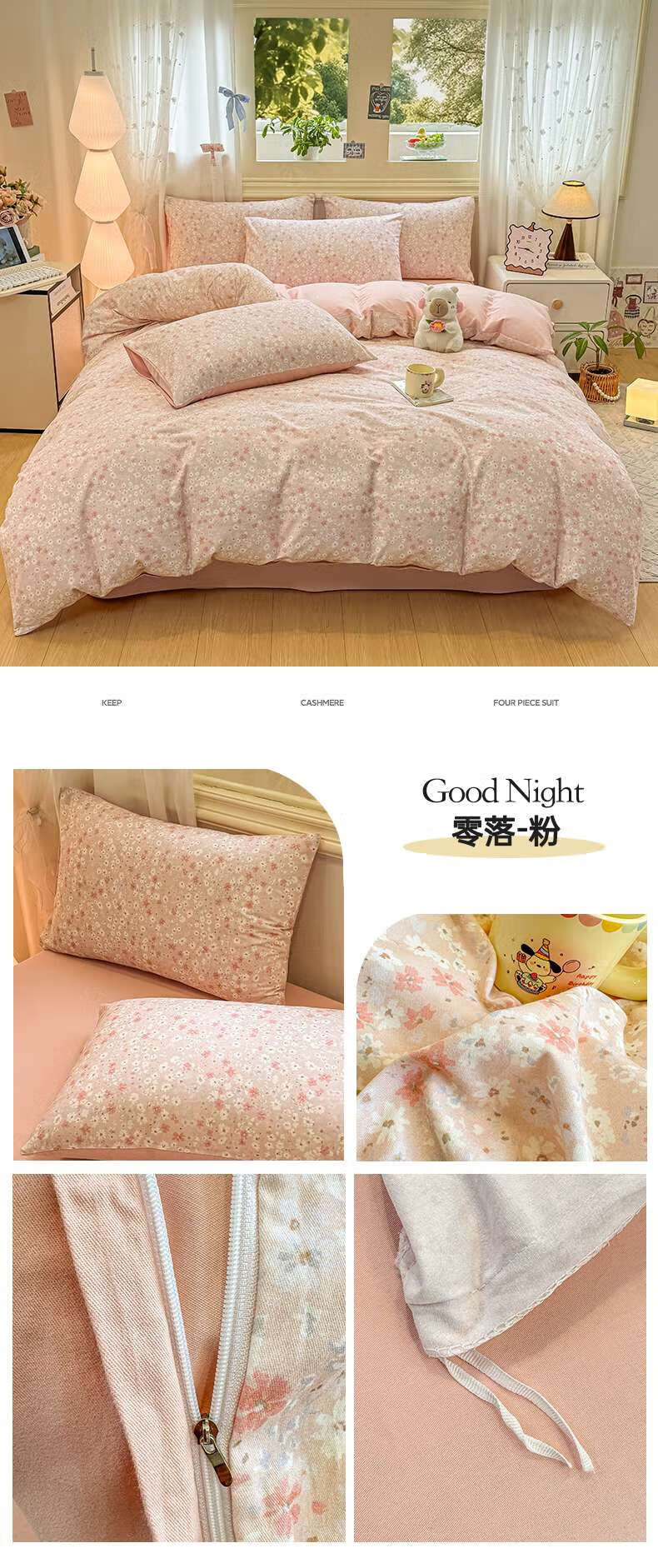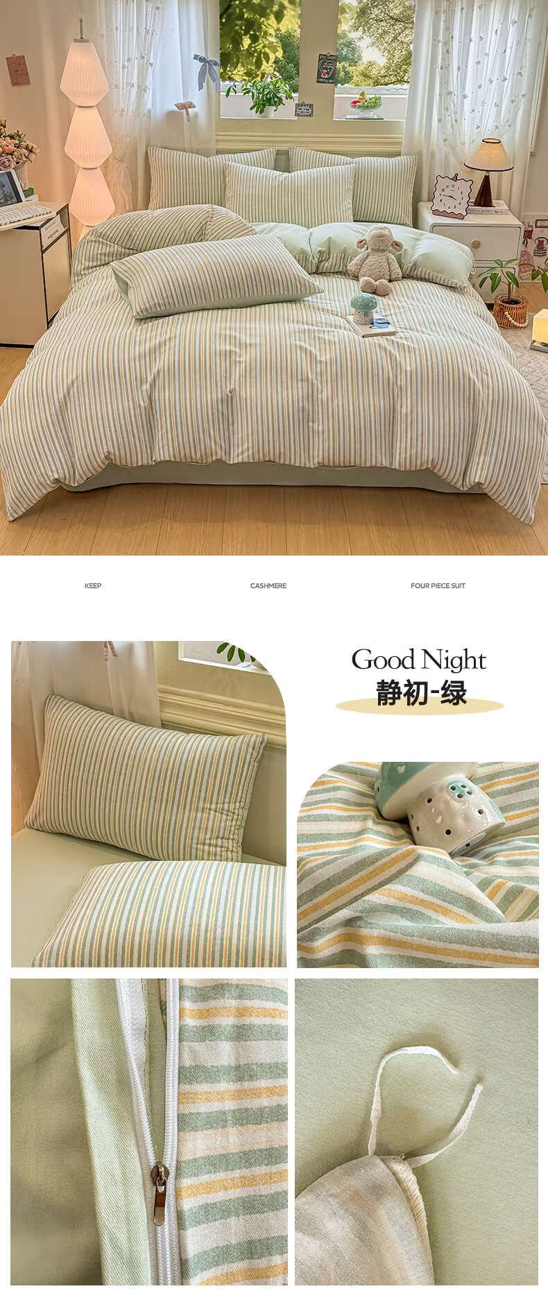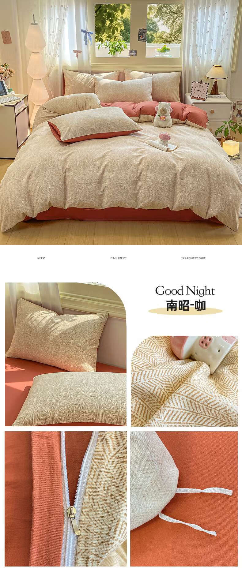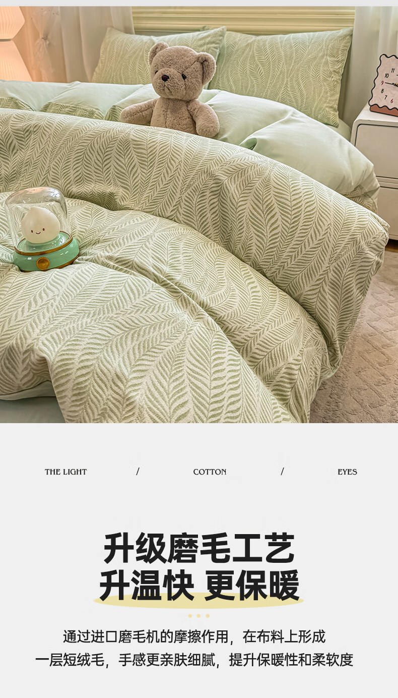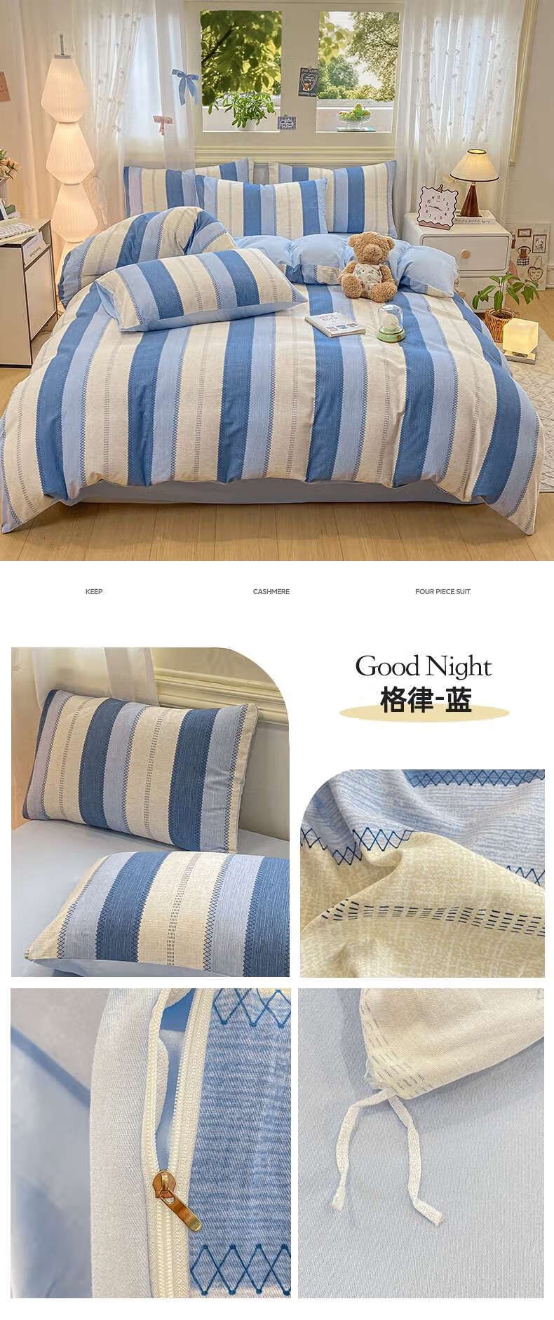 名创优品牛奶绒四件套冬季加厚双面绒珊瑚绒床单被套床笠款学生宿舍三件套 布丁黄+梵星蓝 1.5/1.8 床单款 四件套(被套2.0*2.3m)