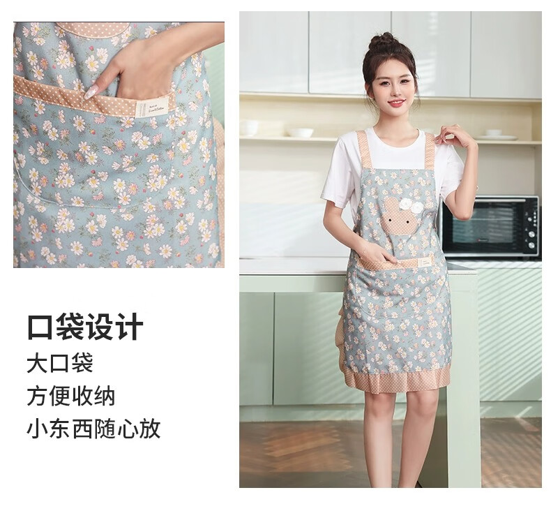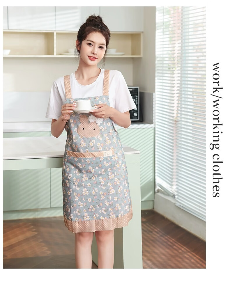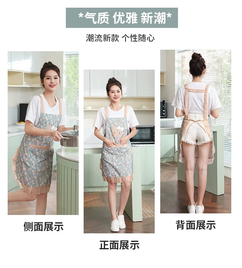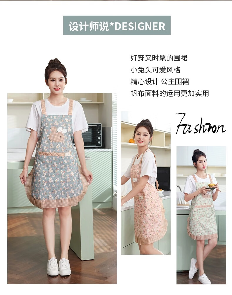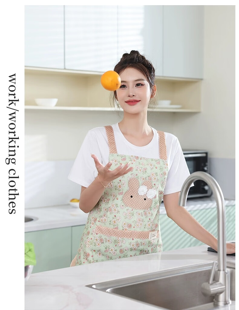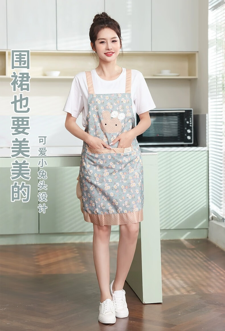 AILUKI日本日式围裙厨房家用超强防水防油做饭专用透气防污工作服女 【防油抗污款】兔耳朵-浅绿色
