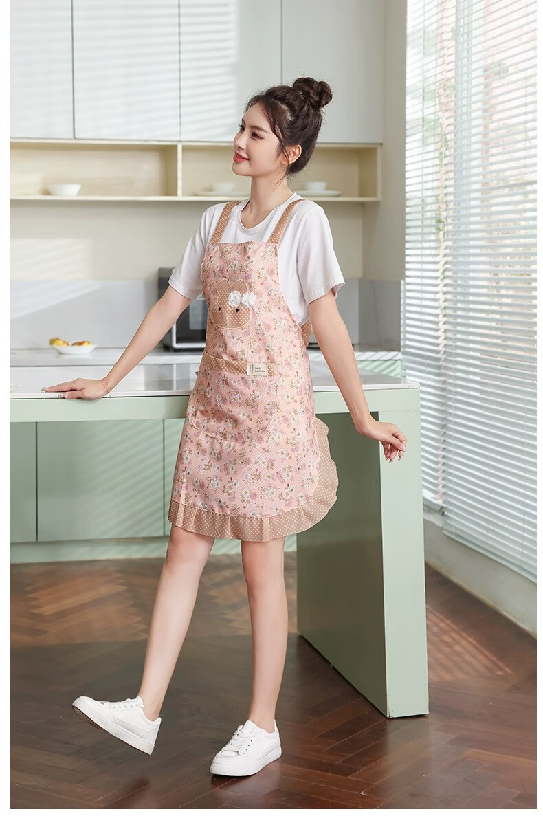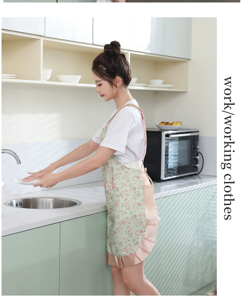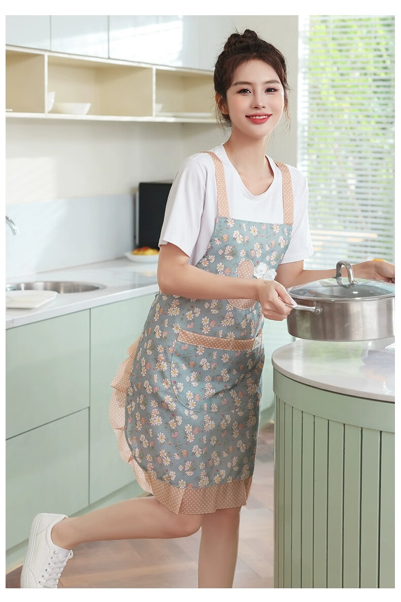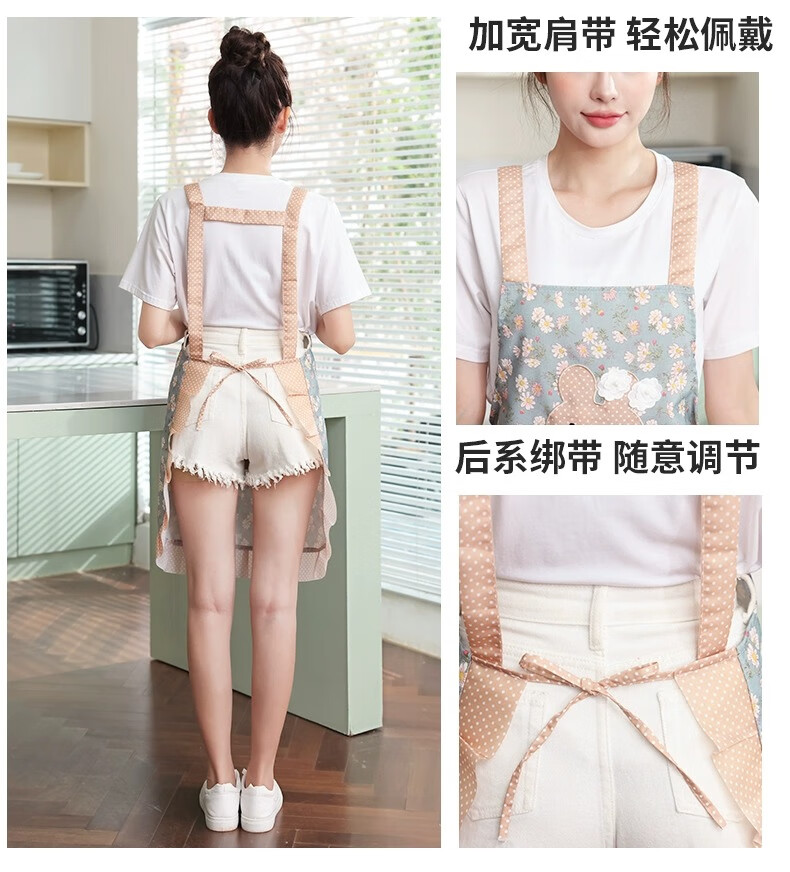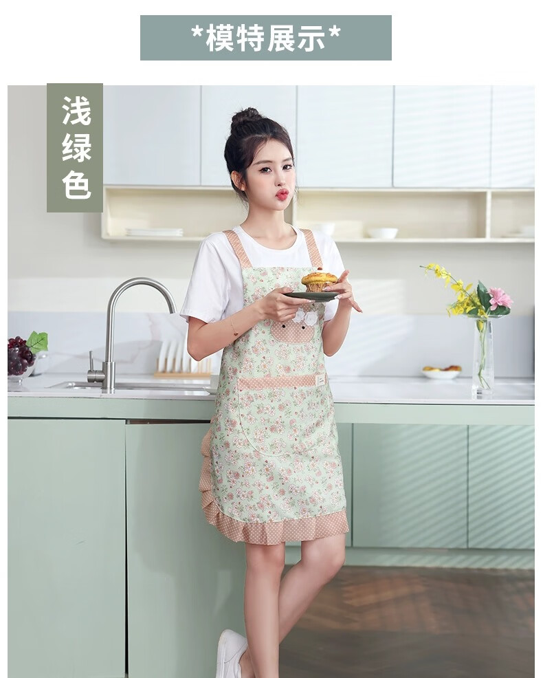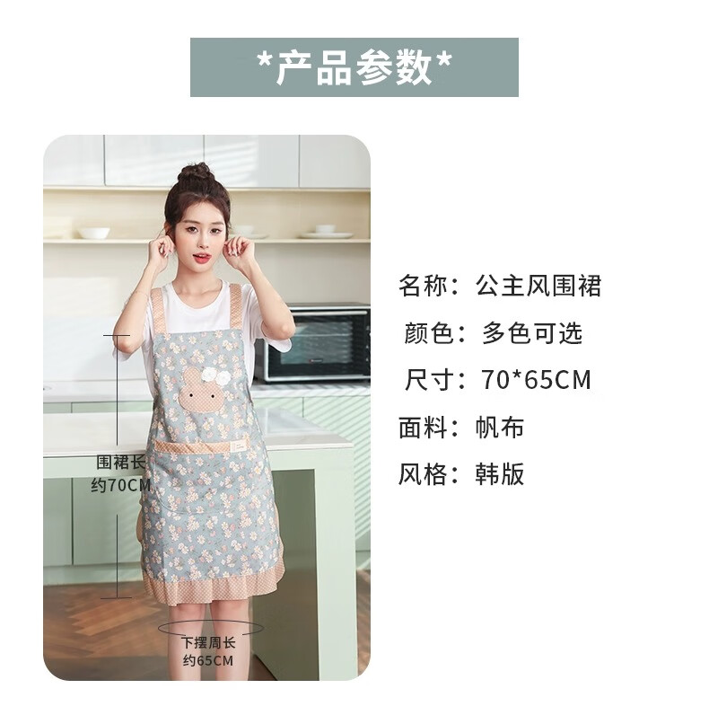 AILUKI日本日式围裙厨房家用超强防水防油做饭专用透气防污工作服女 【防油抗污款】兔耳朵-浅绿色