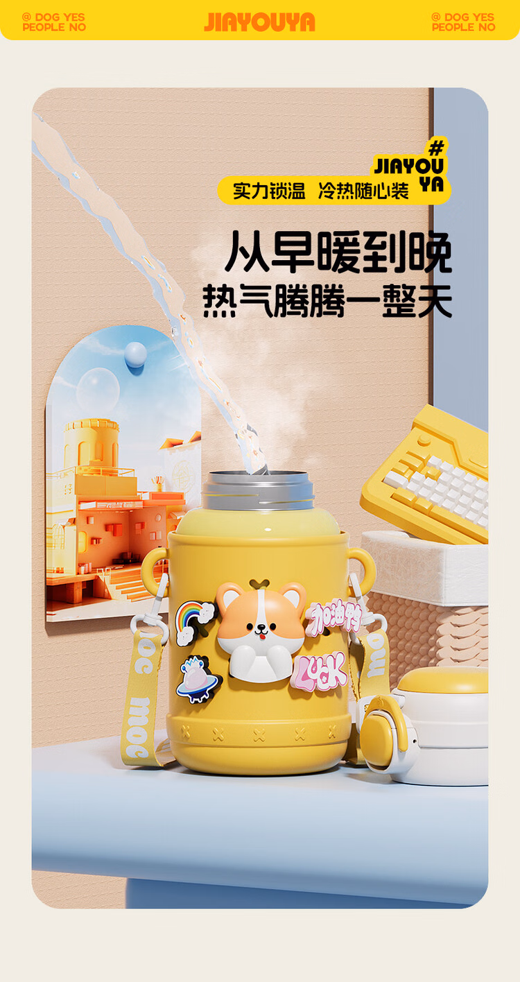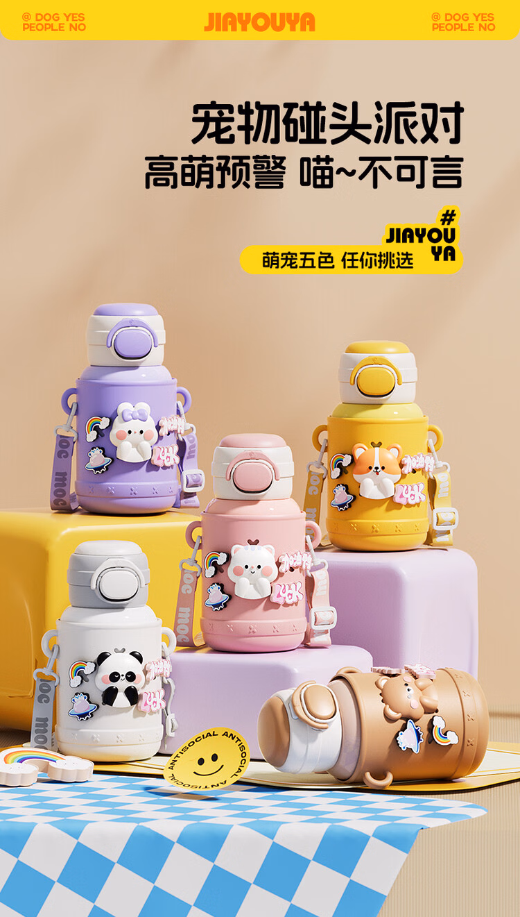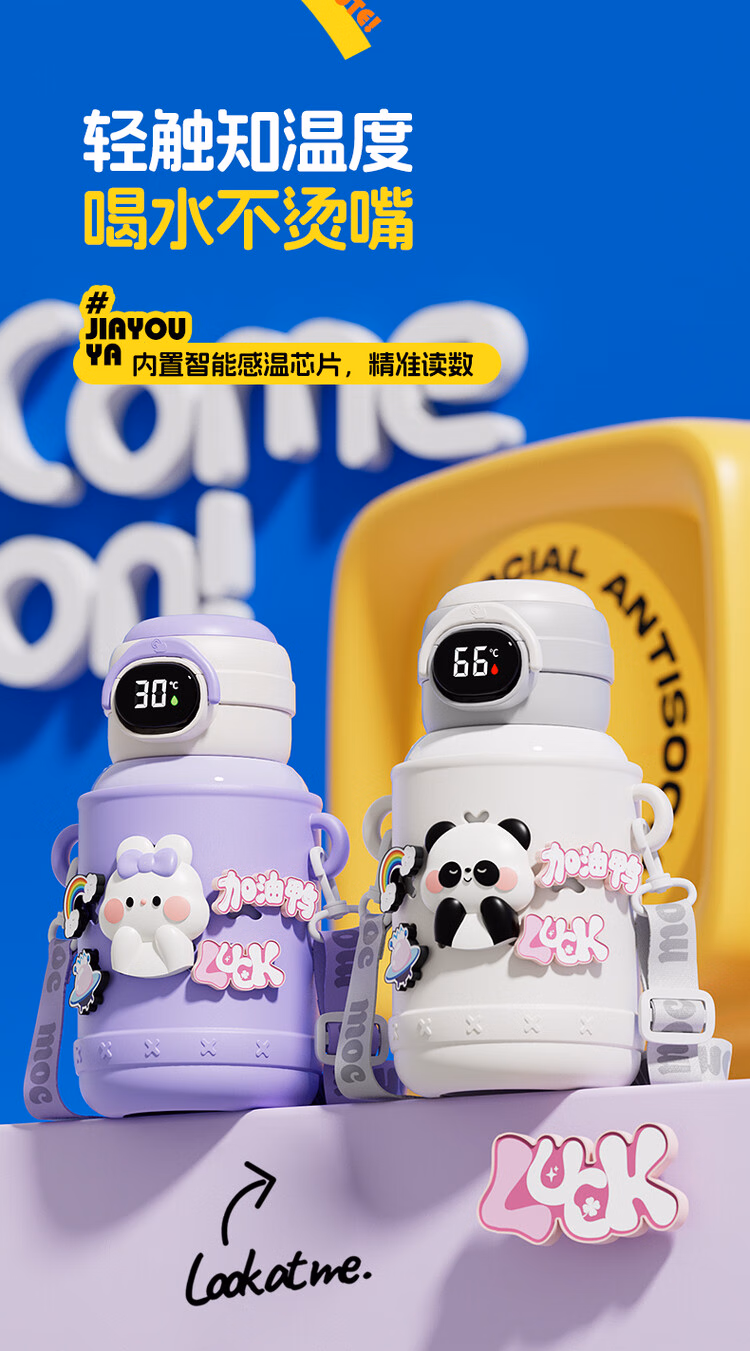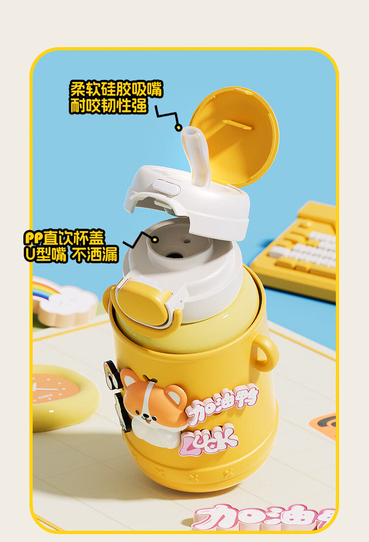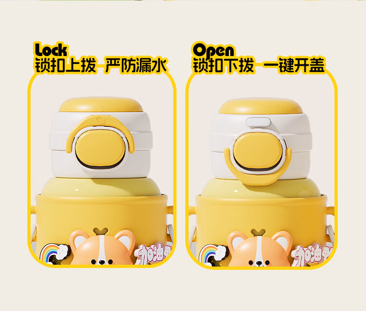 WCZ德国儿童保温杯数显女孩上学专用宝宝幼儿园水杯女小学生吸管杯子 柯基黄550ml+清洗套装+背带 550ml