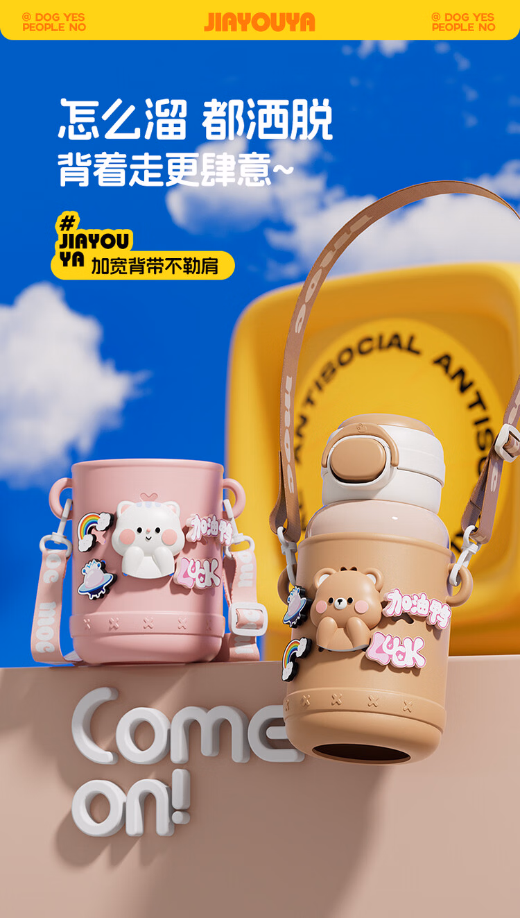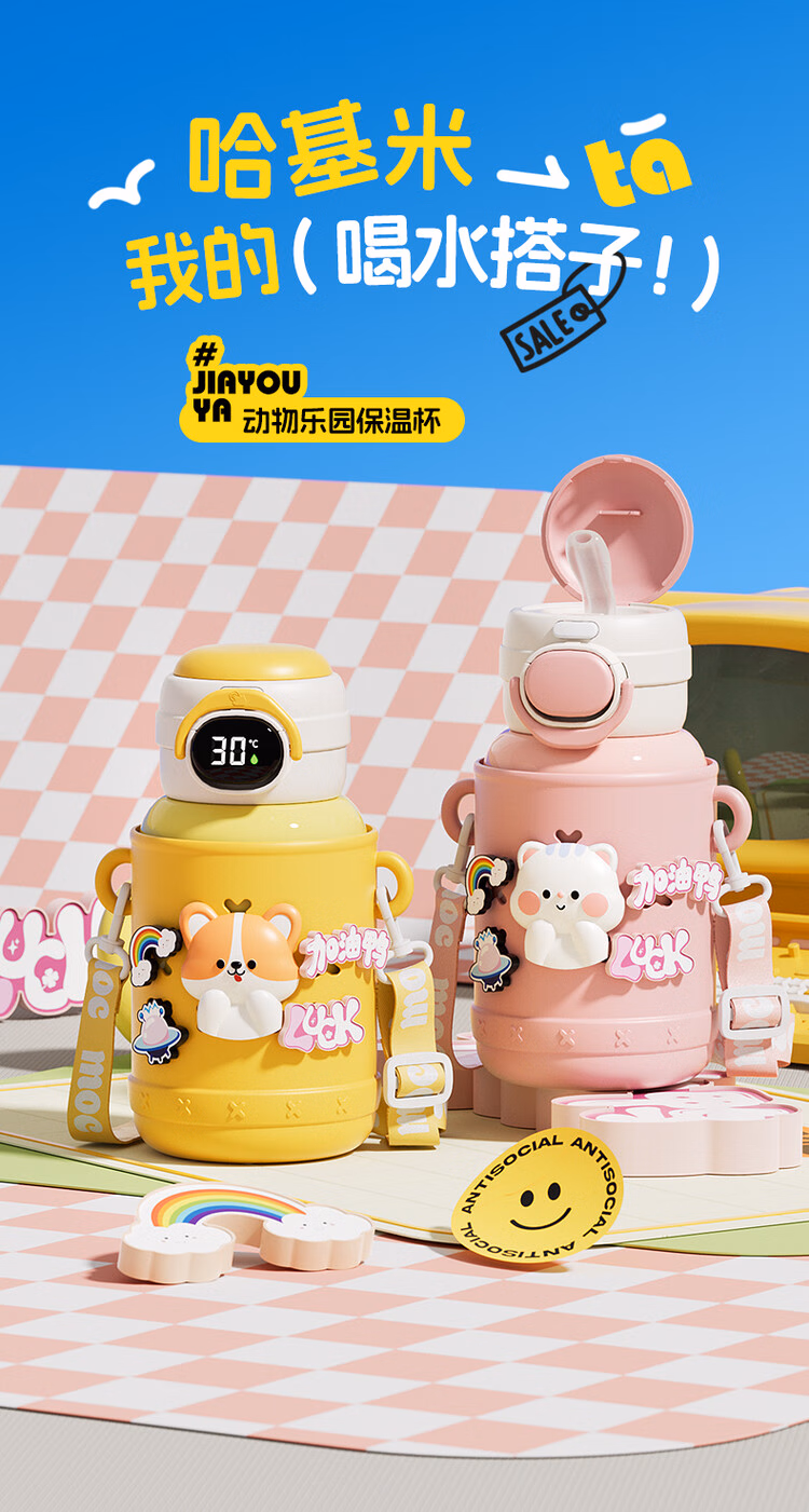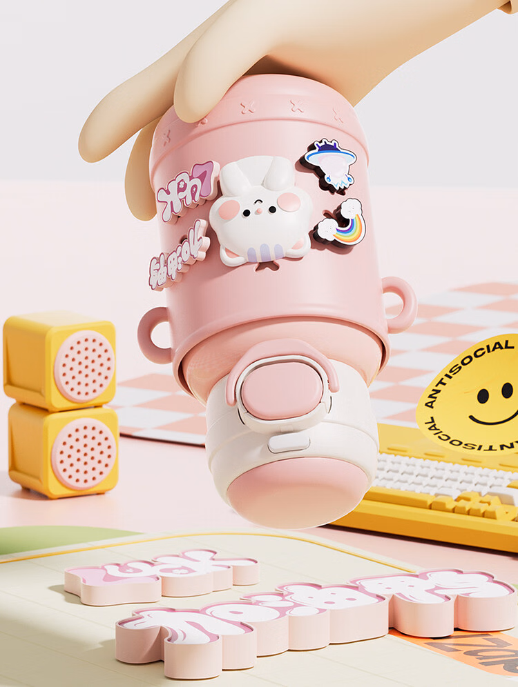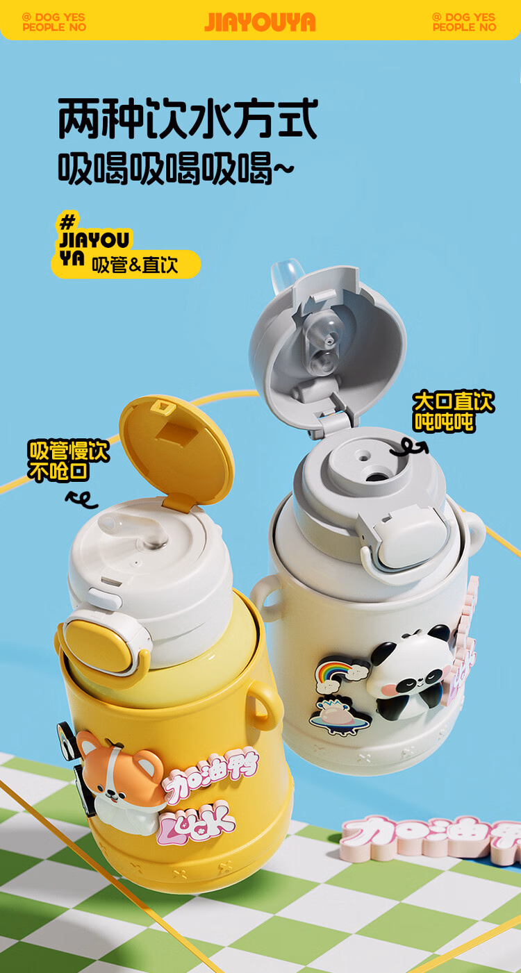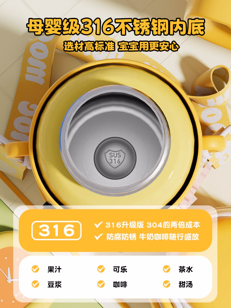 WCZ德国儿童保温杯数显女孩上学专用宝宝幼儿园水杯女小学生吸管杯子 柯基黄550ml+清洗套装+背带 550ml