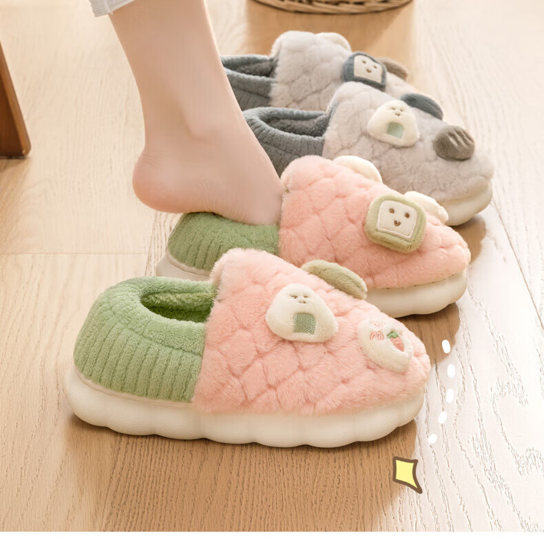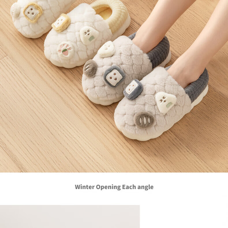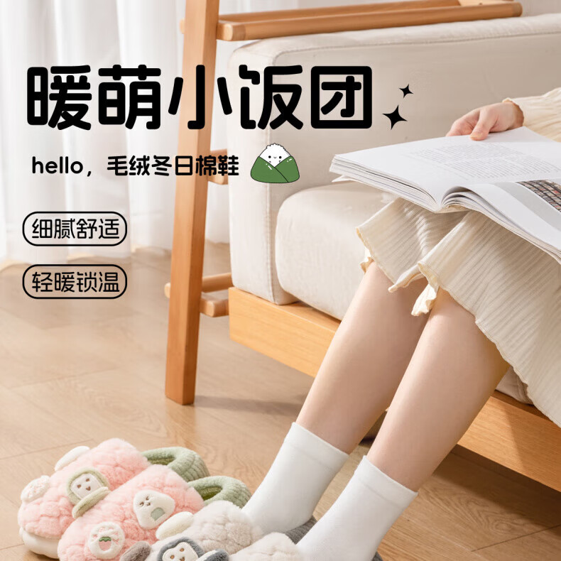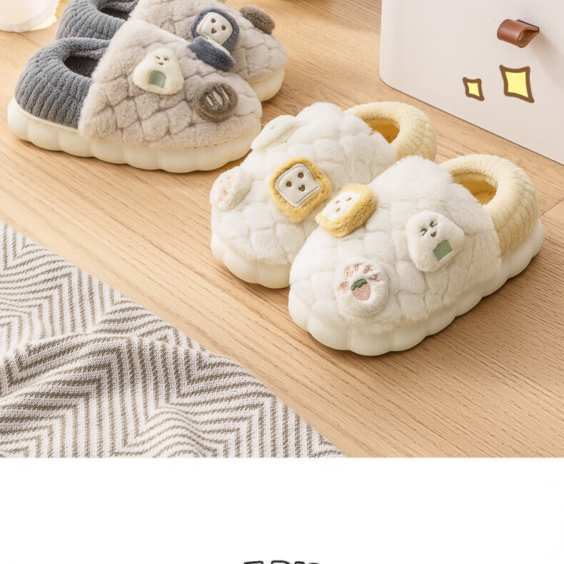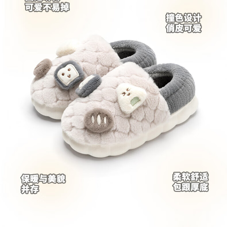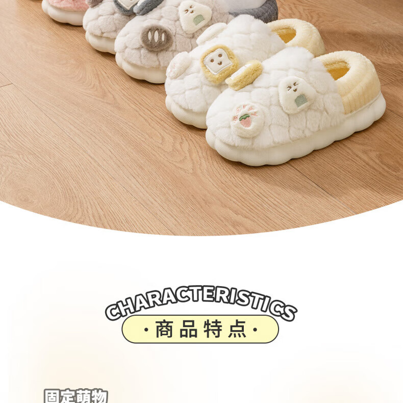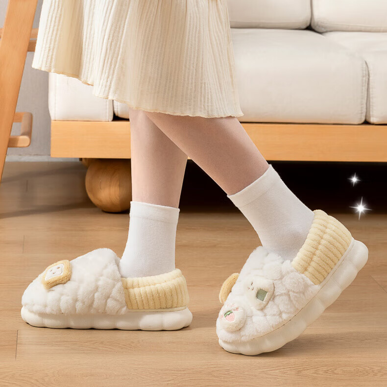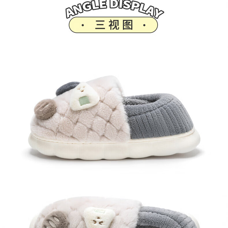 DEATKN德国棉拖鞋女秋冬季新款室内家居加绒加厚保暖防滑软底家用棉鞋男 米色【主图款】 35-36 36_-37【建议脚穿】内长230MM
