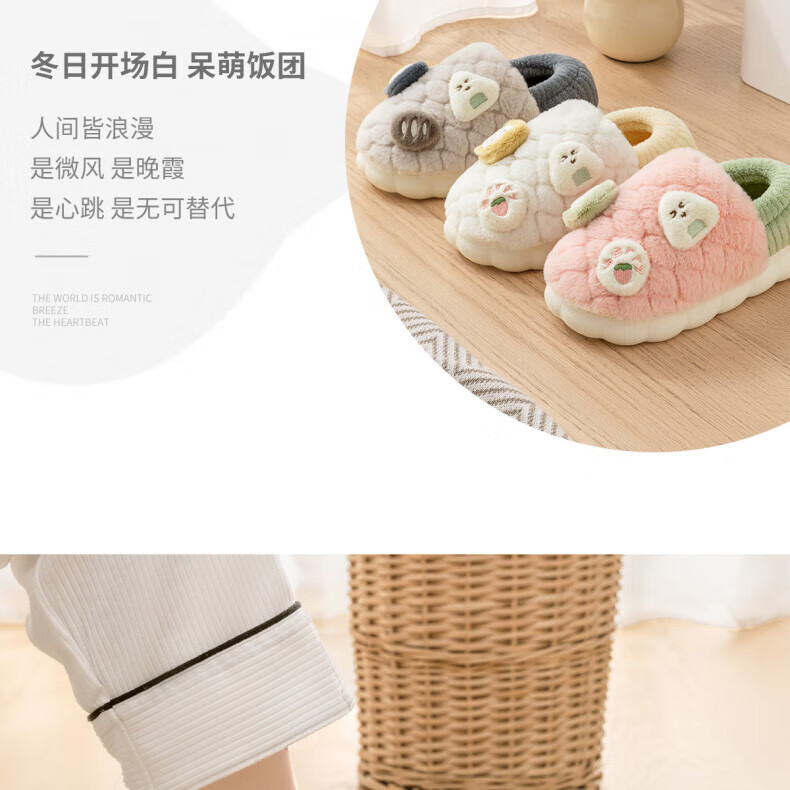 DEATKN德国棉拖鞋女秋冬季新款室内家居加绒加厚保暖防滑软底家用棉鞋男 米色【主图款】 37-38 38_-39【建议脚穿】内长240MM