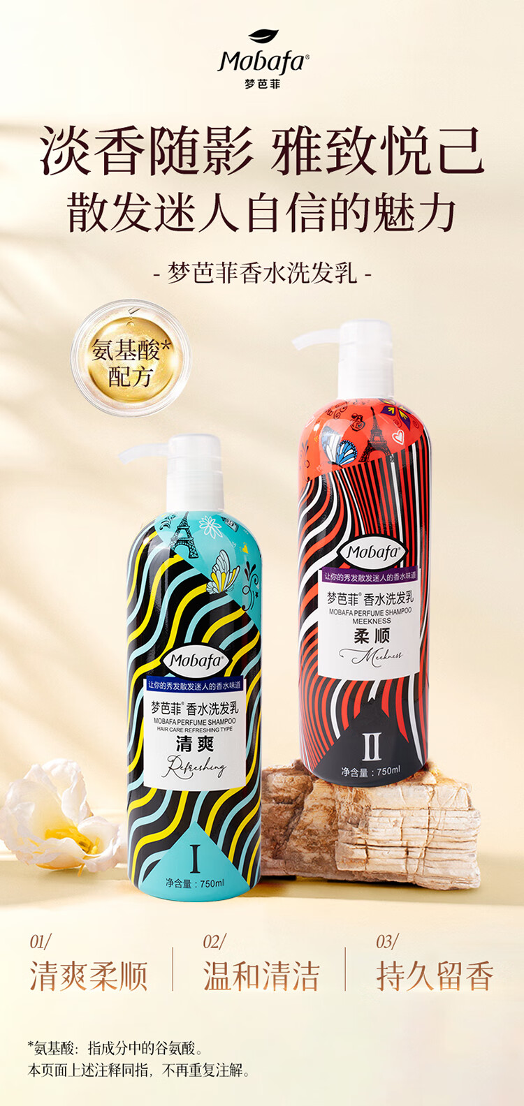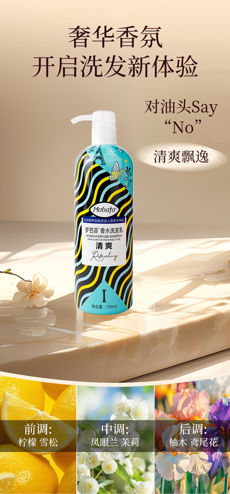 梦芭菲香水洗发乳(清爽型)清爽柔顺 温和清洁 持久留香750ml