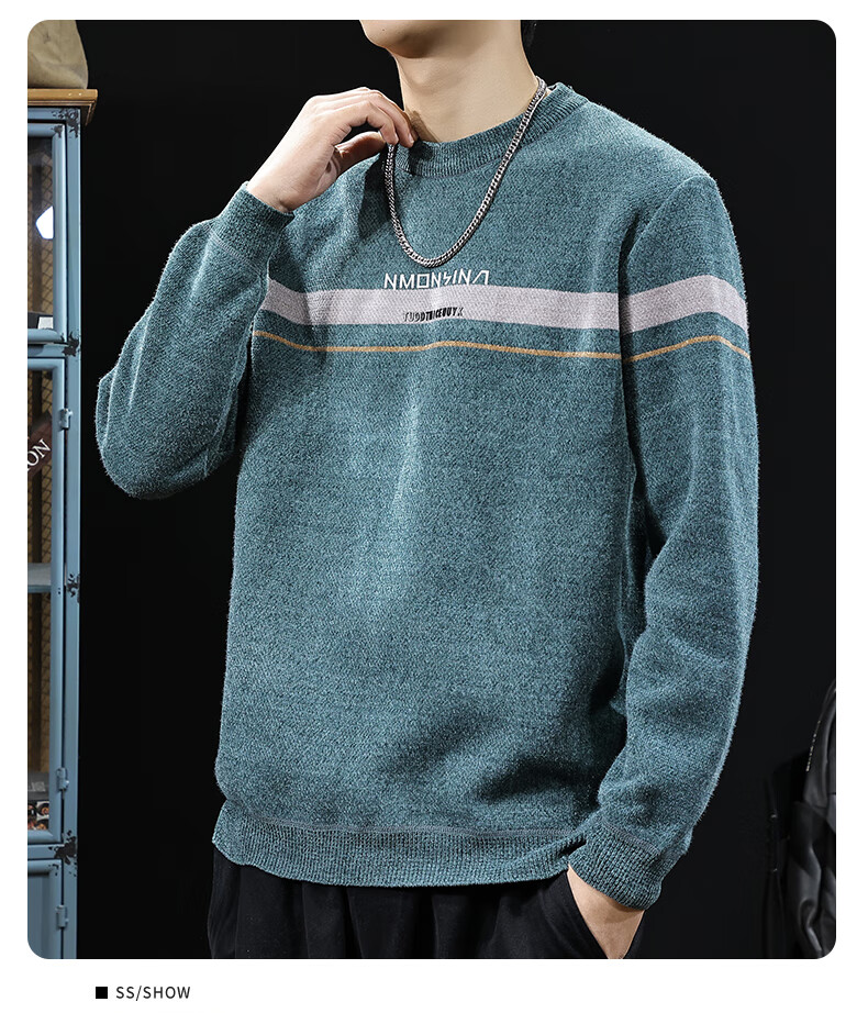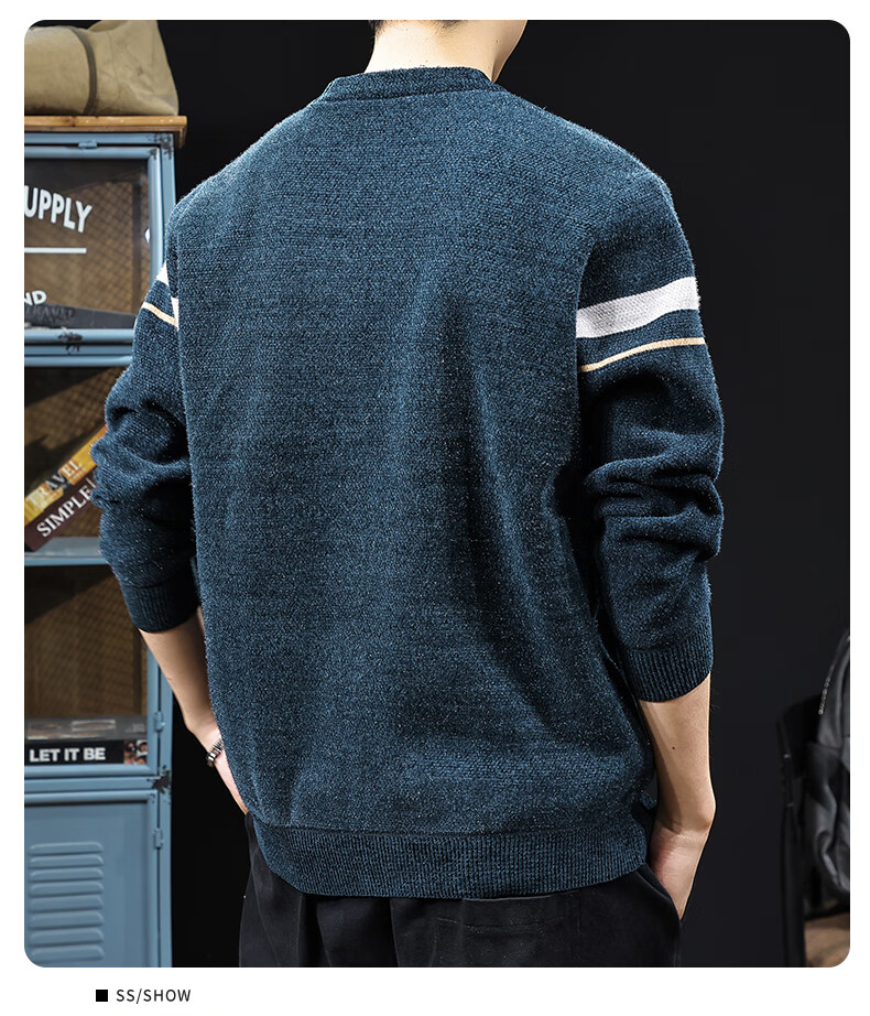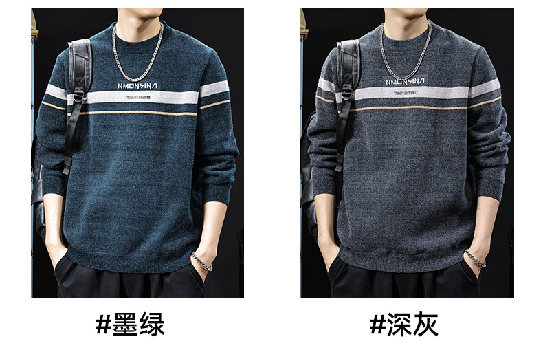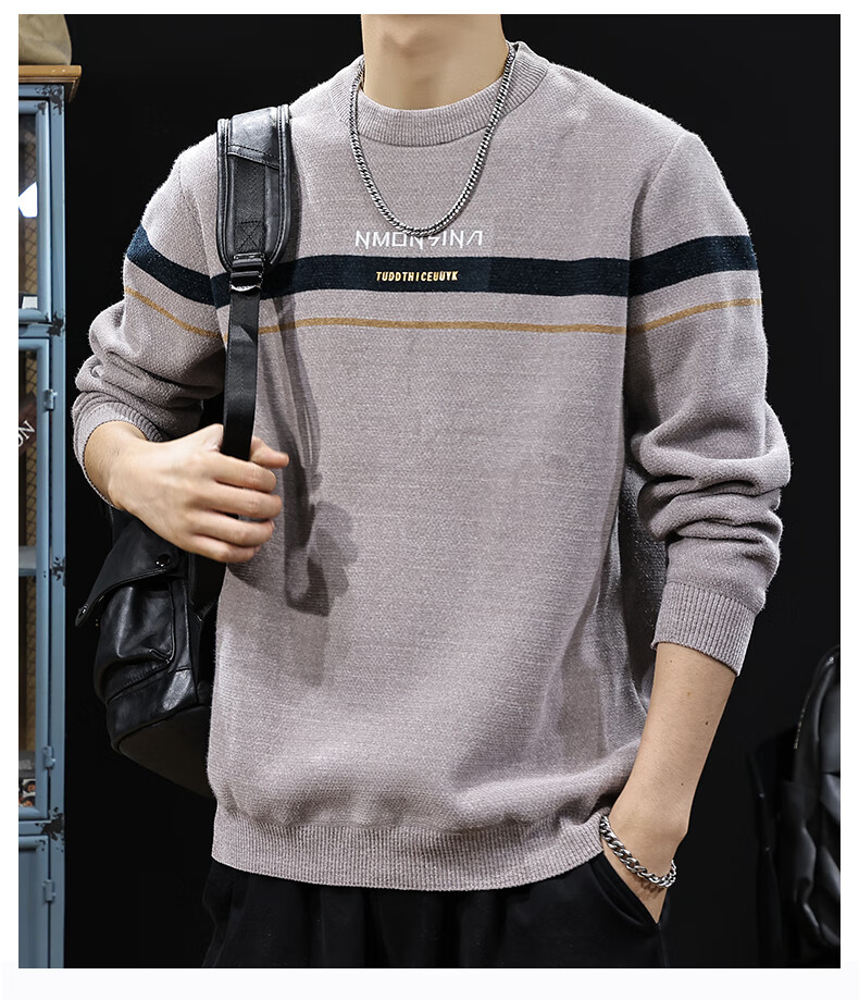 新百伦加绒毛衣男士圆领秋冬款加厚保暖长袖休闲毛线衣内搭上衣男 米灰 加绒 XL 码【建议130-145斤】