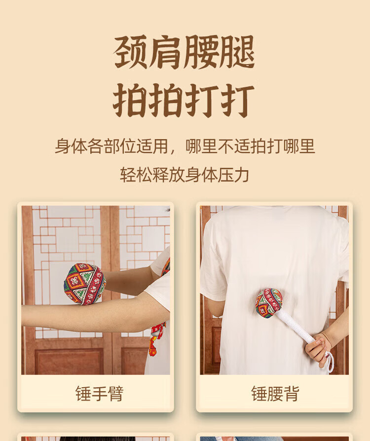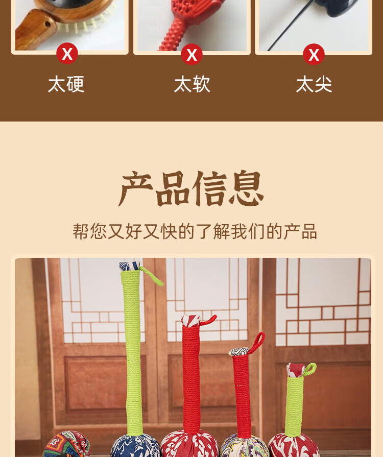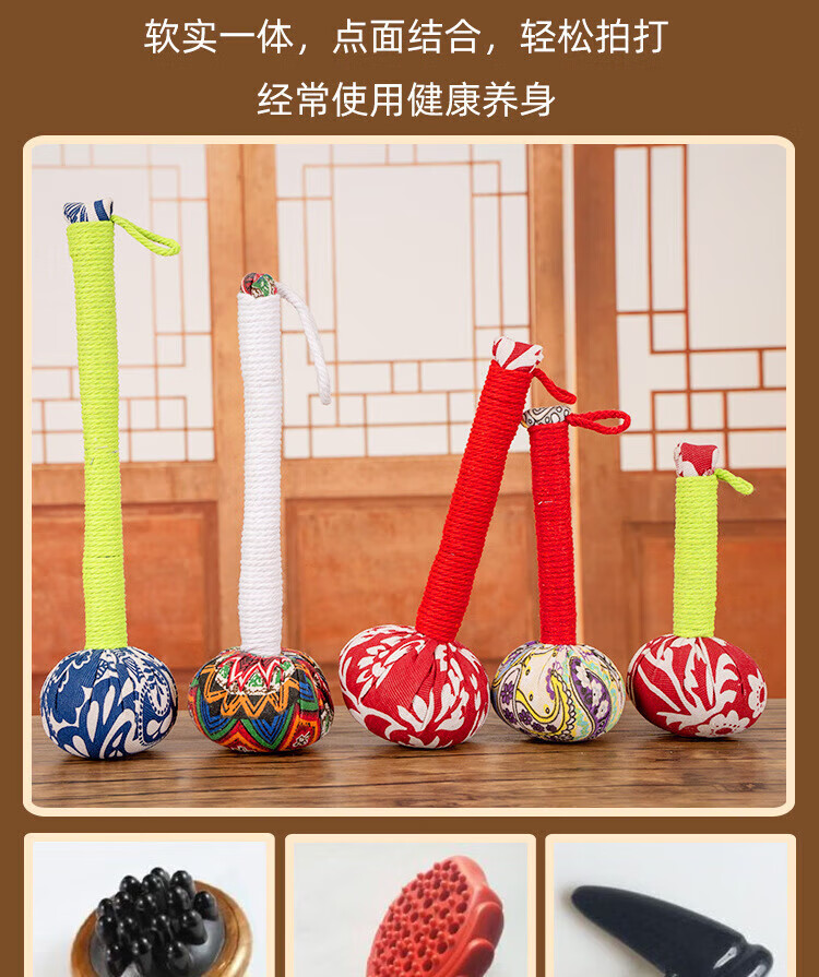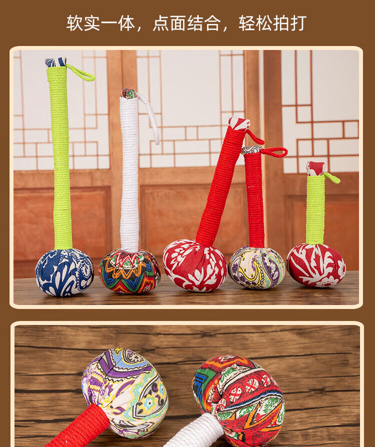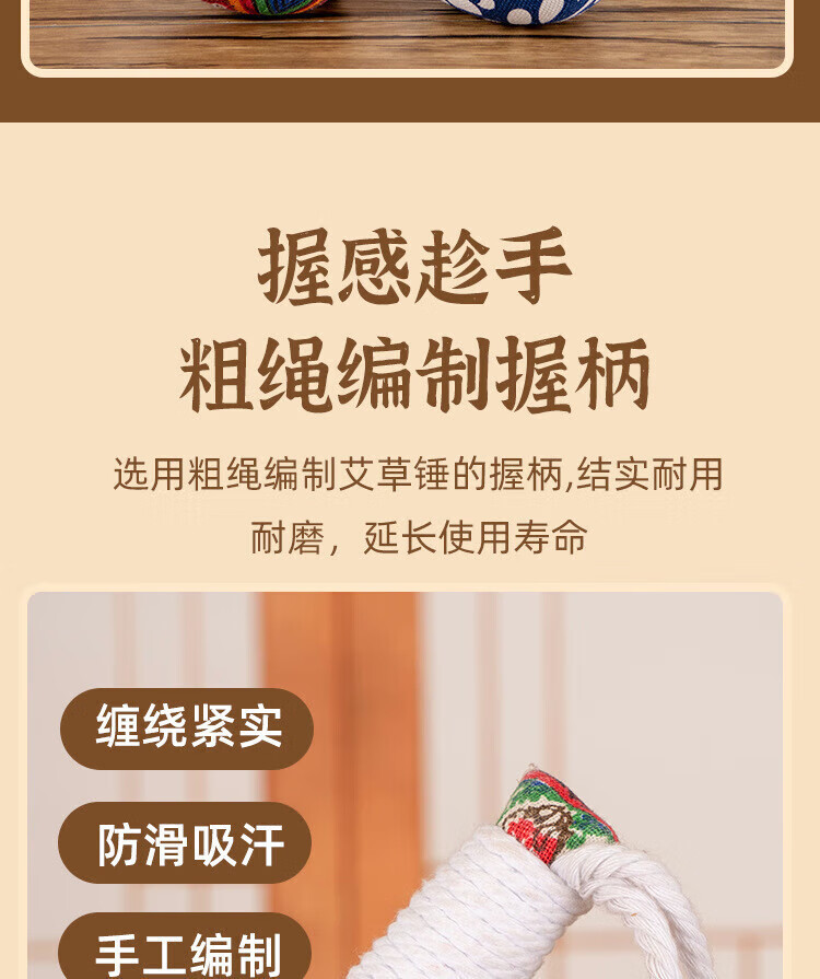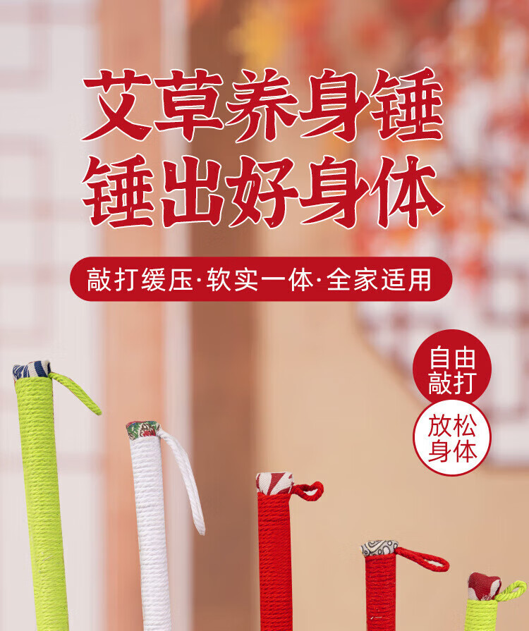 通用艾草按摩锤手工DIY材料包手持养生穴位锤棒经络艾灸锤教师节礼物 20cm艾草锤花布随机