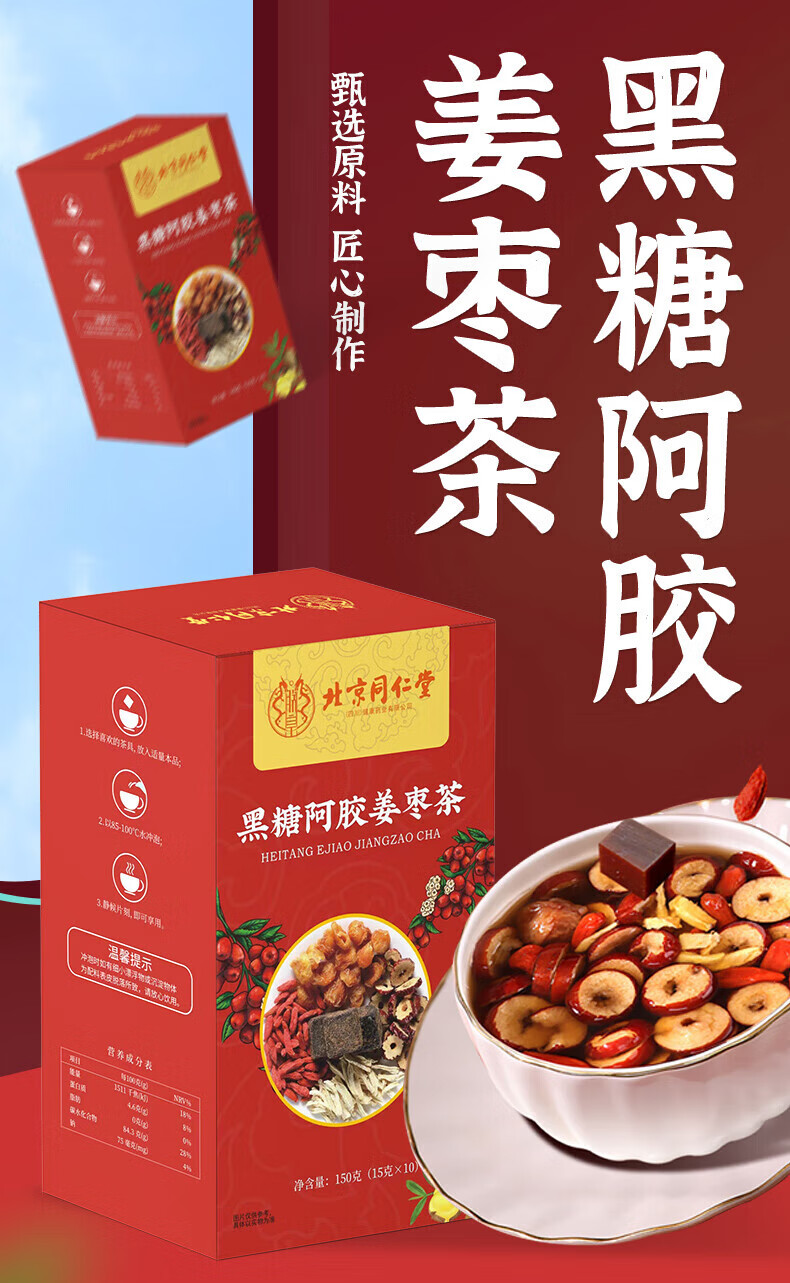 朕皇北京同仁堂黑糖阿胶姜枣茶女补气养血大姨妈生理期例假专用 【2盒分享装】10袋/盒