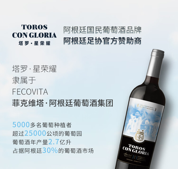 塔罗星荣耀【梅西同款 阿根廷足协联名】阿根廷原瓶进口红酒干红葡萄酒珍藏 750ml*2瓶【官方联名纪念版】