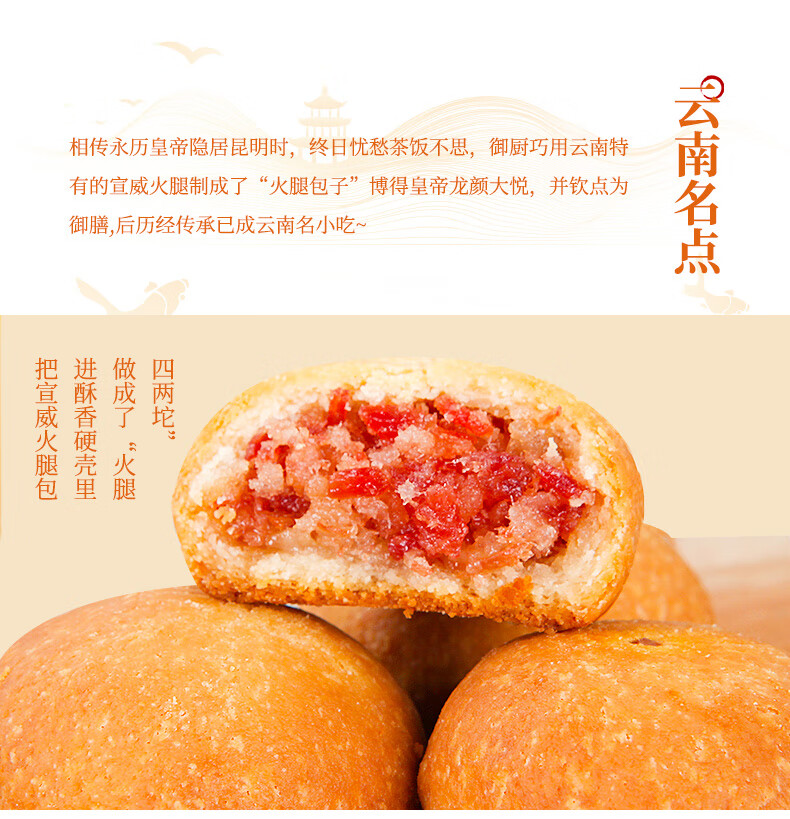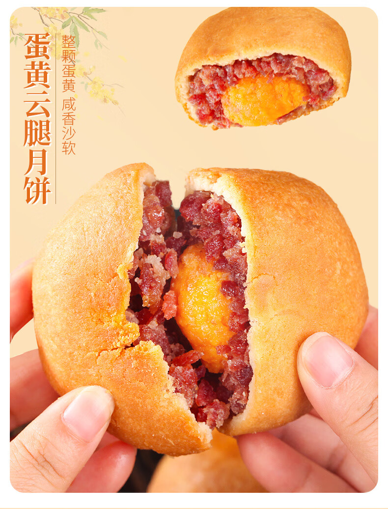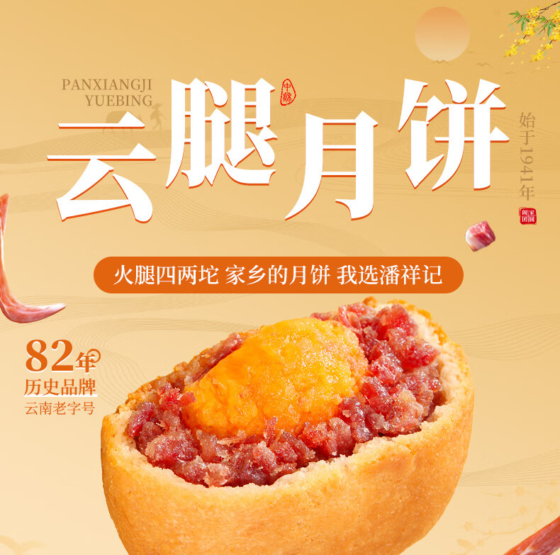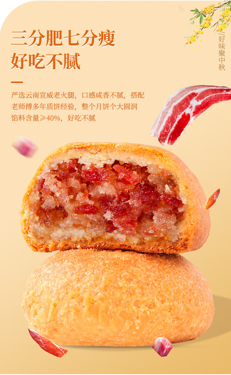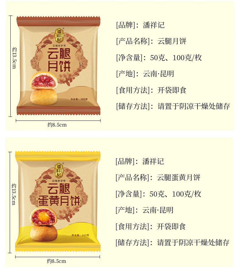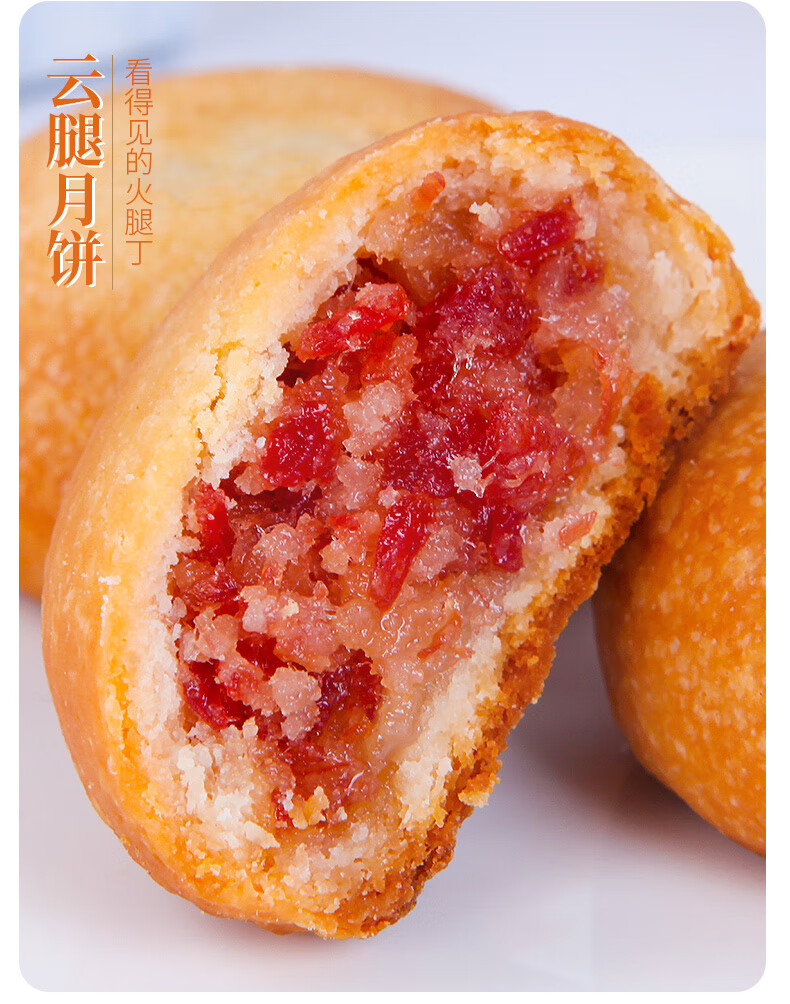 潘祥记云腿月饼8枚云南特产滇式传统老火腿五伍仁蛋黄中秋节企业团购 云腿50g*8个(尝鲜推荐)