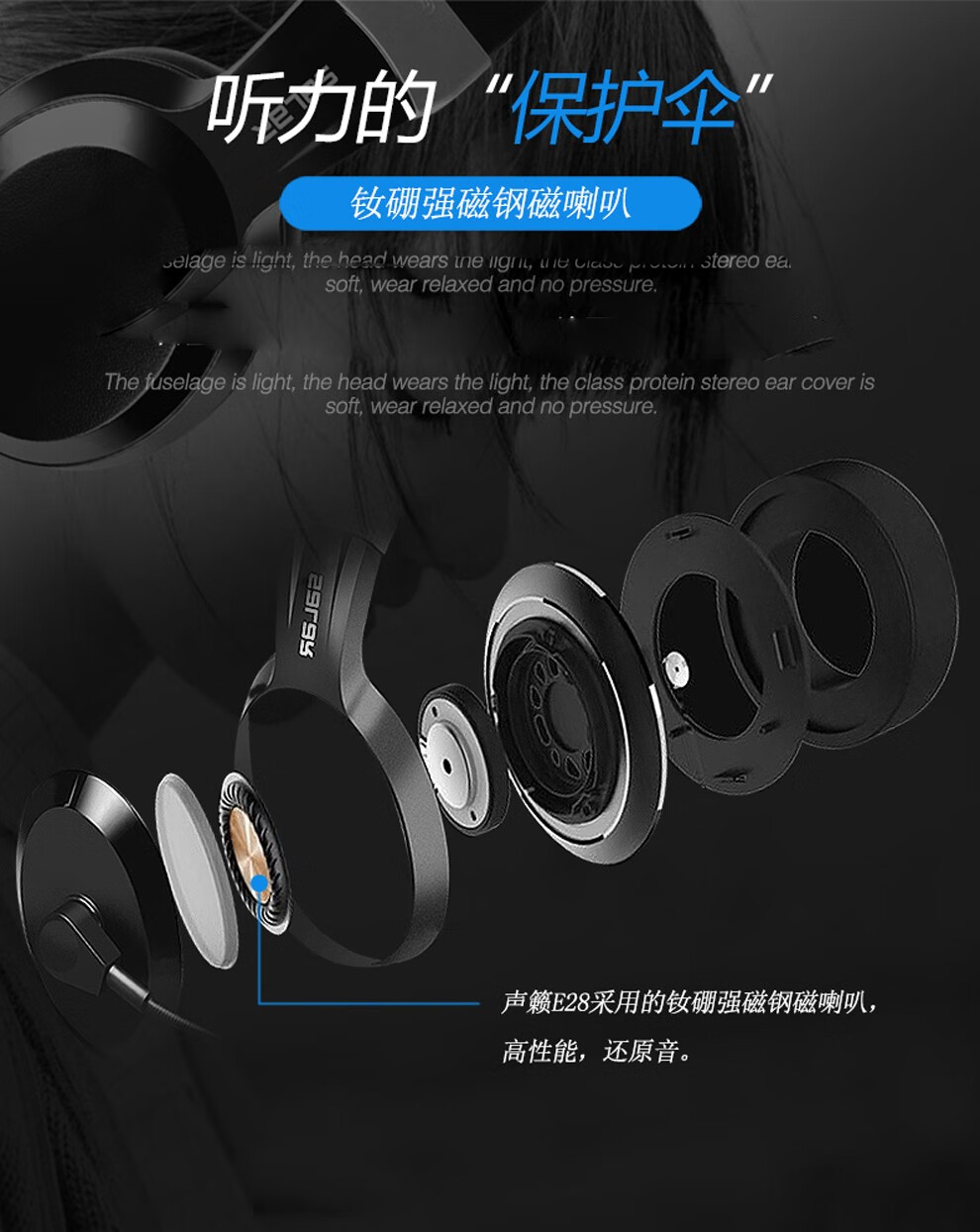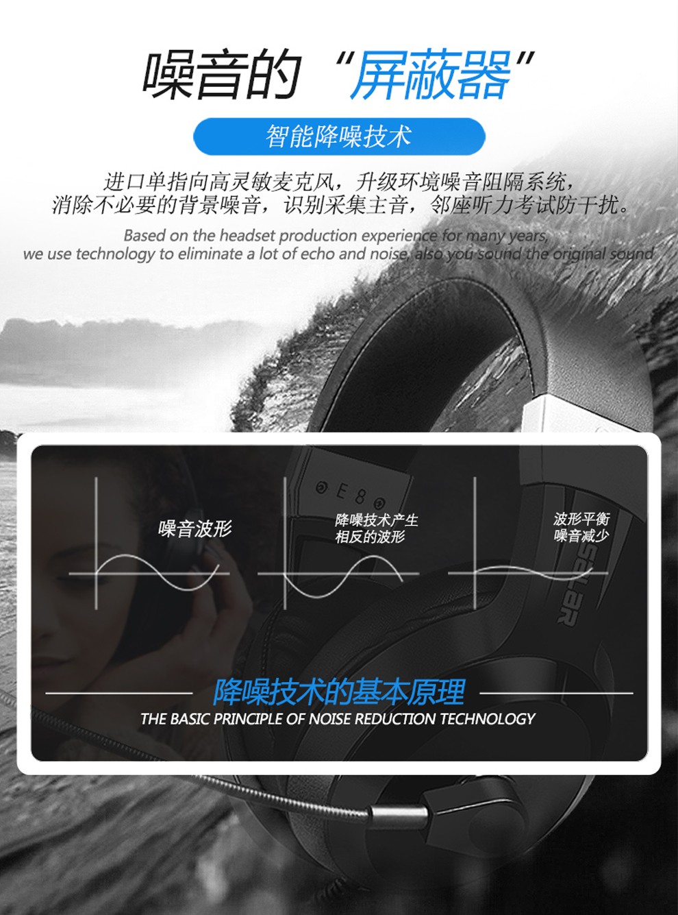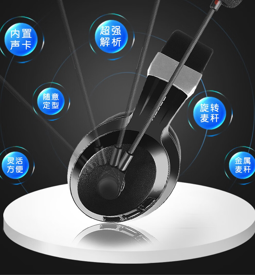 声籁 E28 USB接口头戴式电脑有线耳机 学英语口语听力听说考试 带麦克风跟读网课口语学习带声卡耳麦 USB插头降噪-高清麦-听说考试