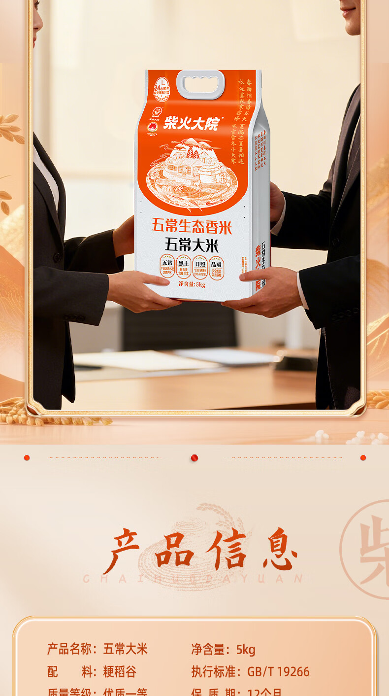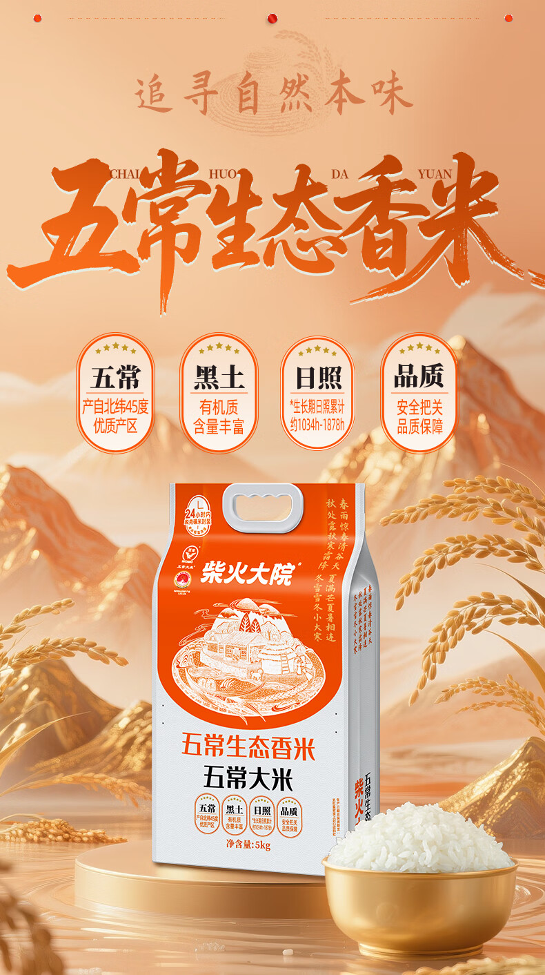 柴火大院五常生态香米5kg 【2025年新米】东北大米10斤 真空锁鲜 【甄选尝鲜】5kg*2
