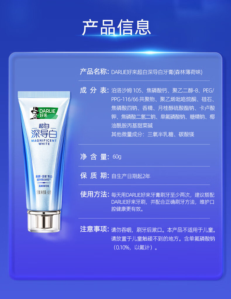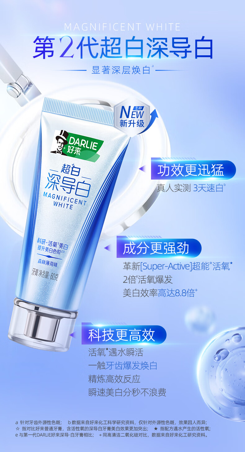 好来(原黑人)深导白牙膏活氧美白去黄去牙渍去烟渍60g