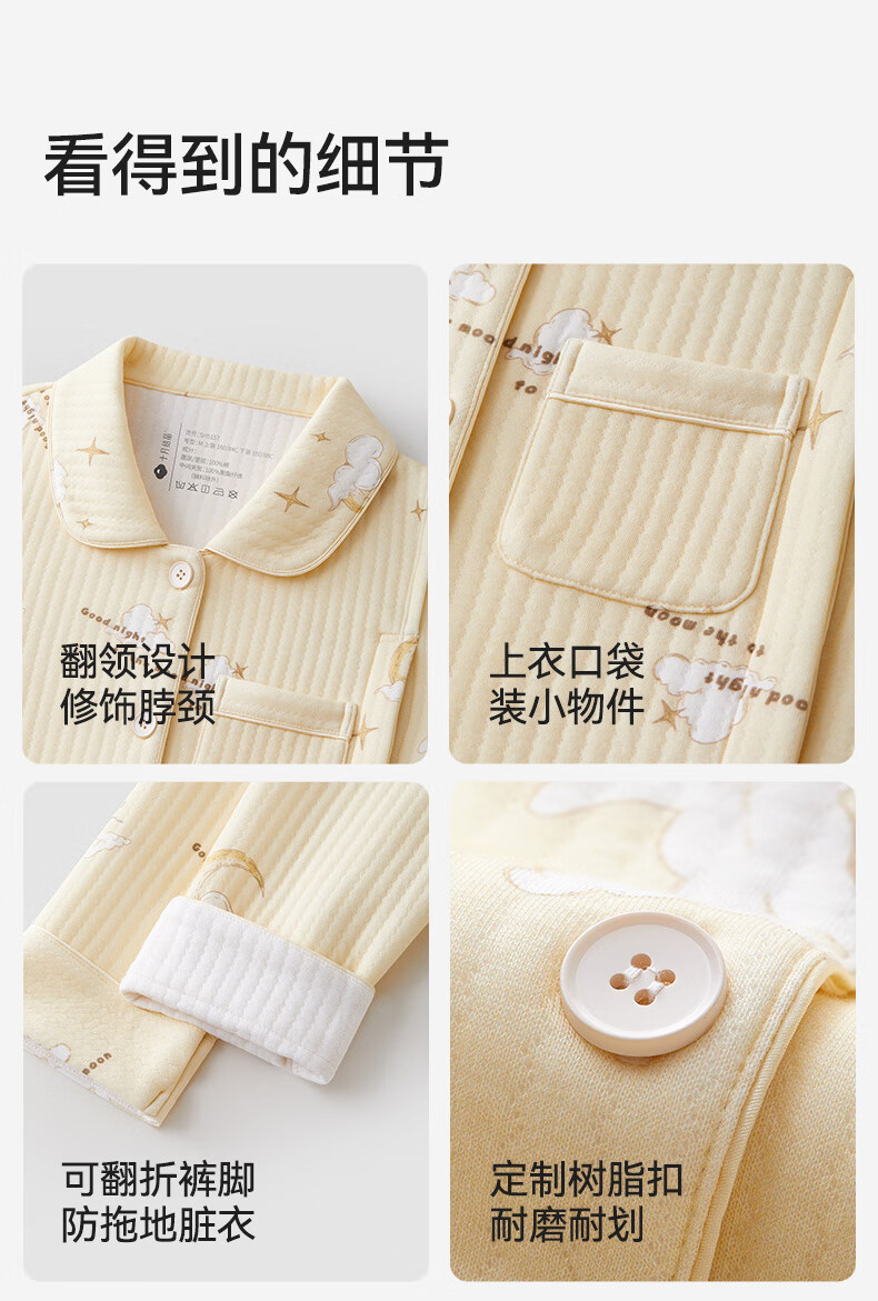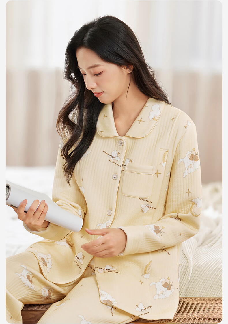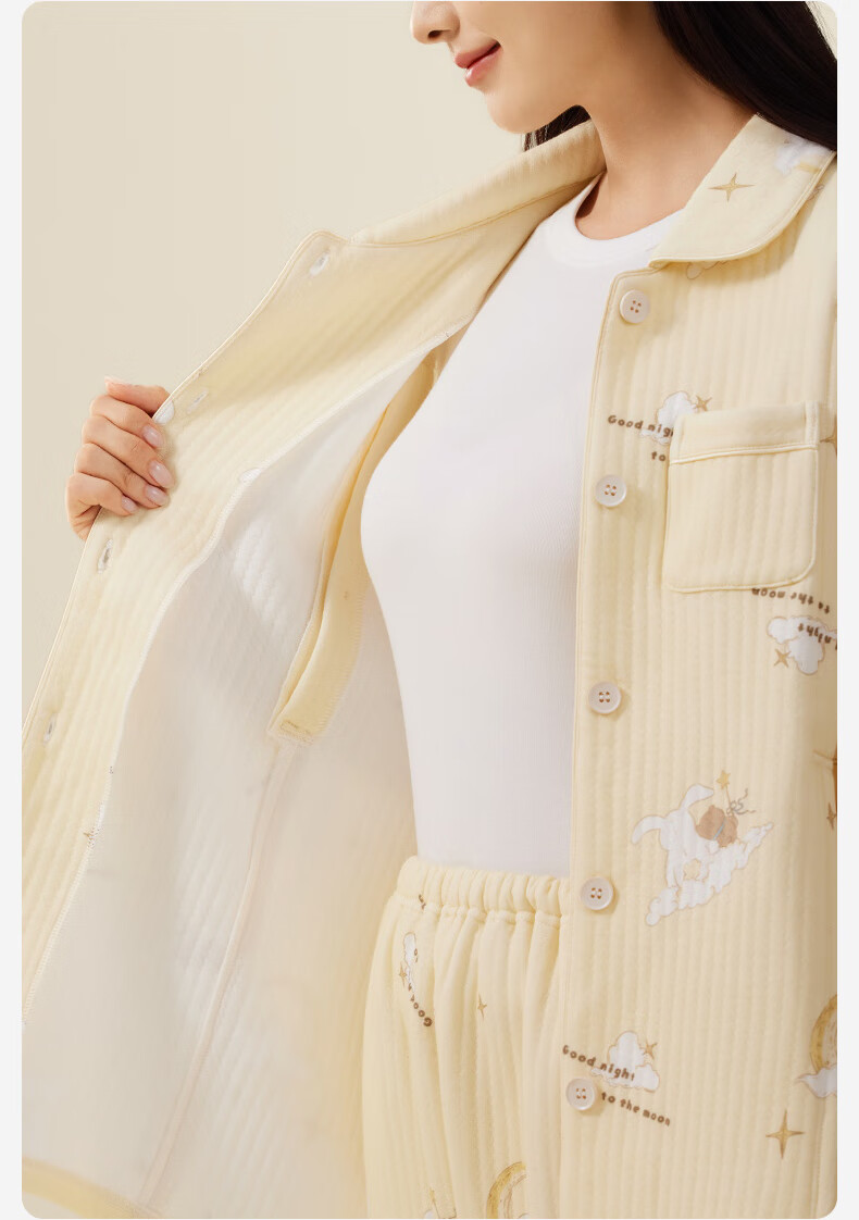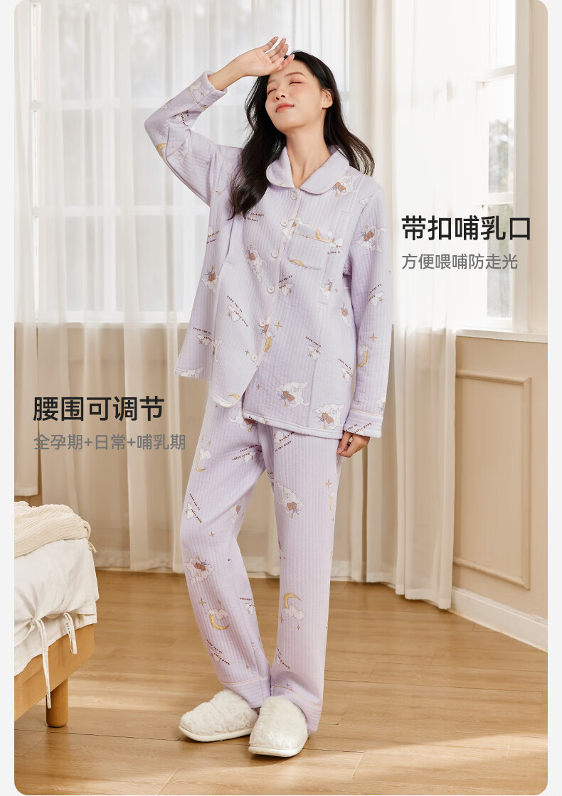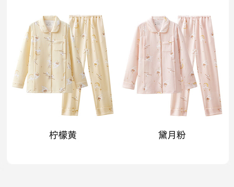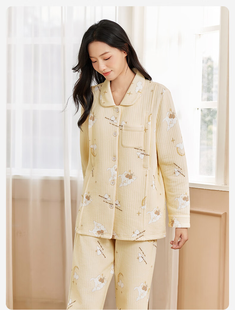 十月结晶月子服孕产妇冬季加厚产后哺乳装睡衣家居服套装 柠檬黄L码