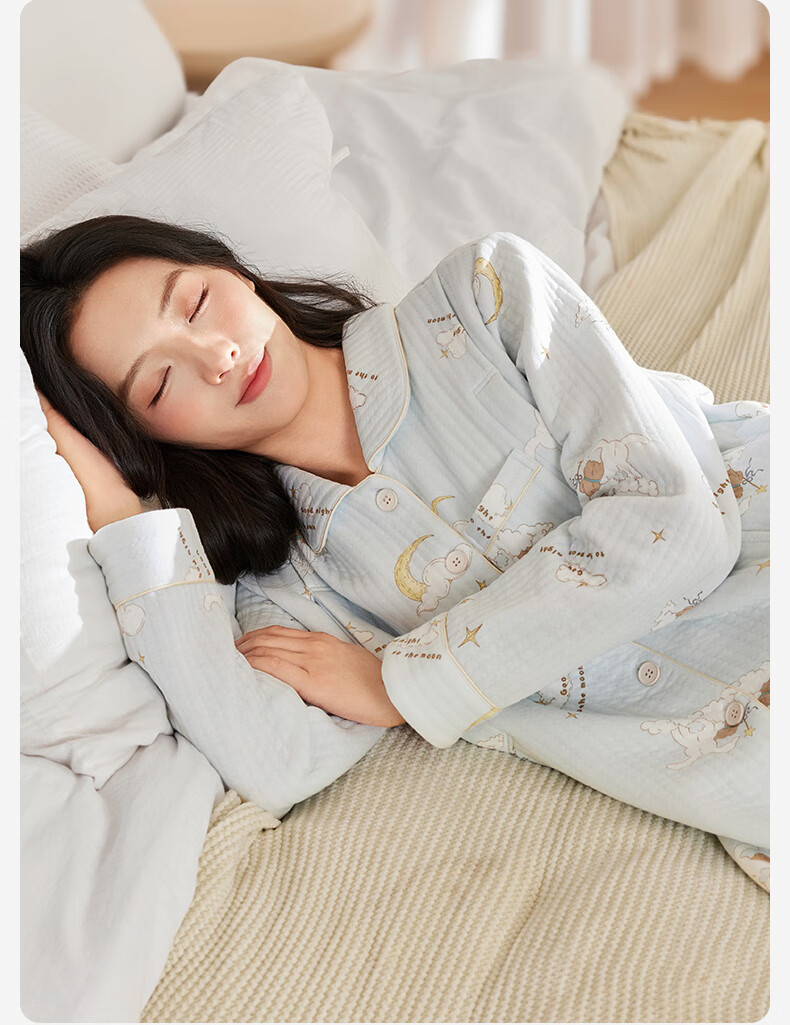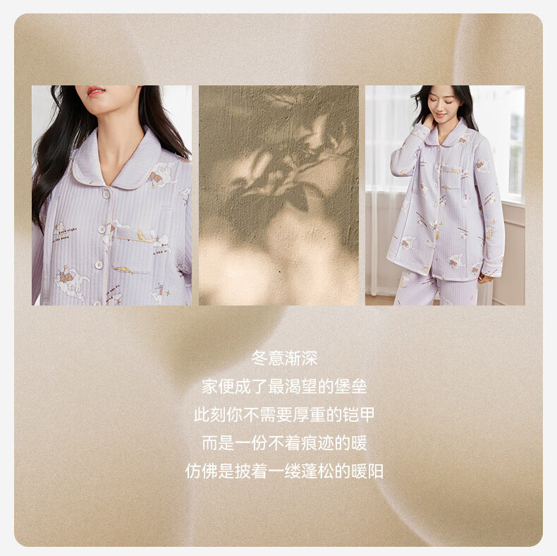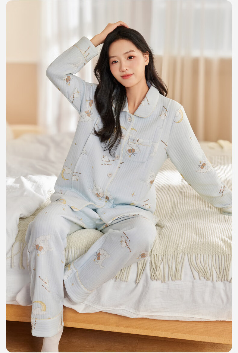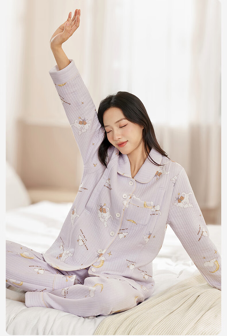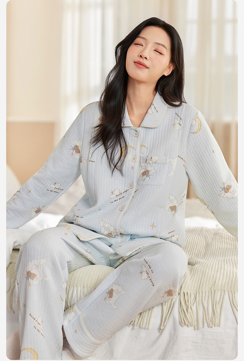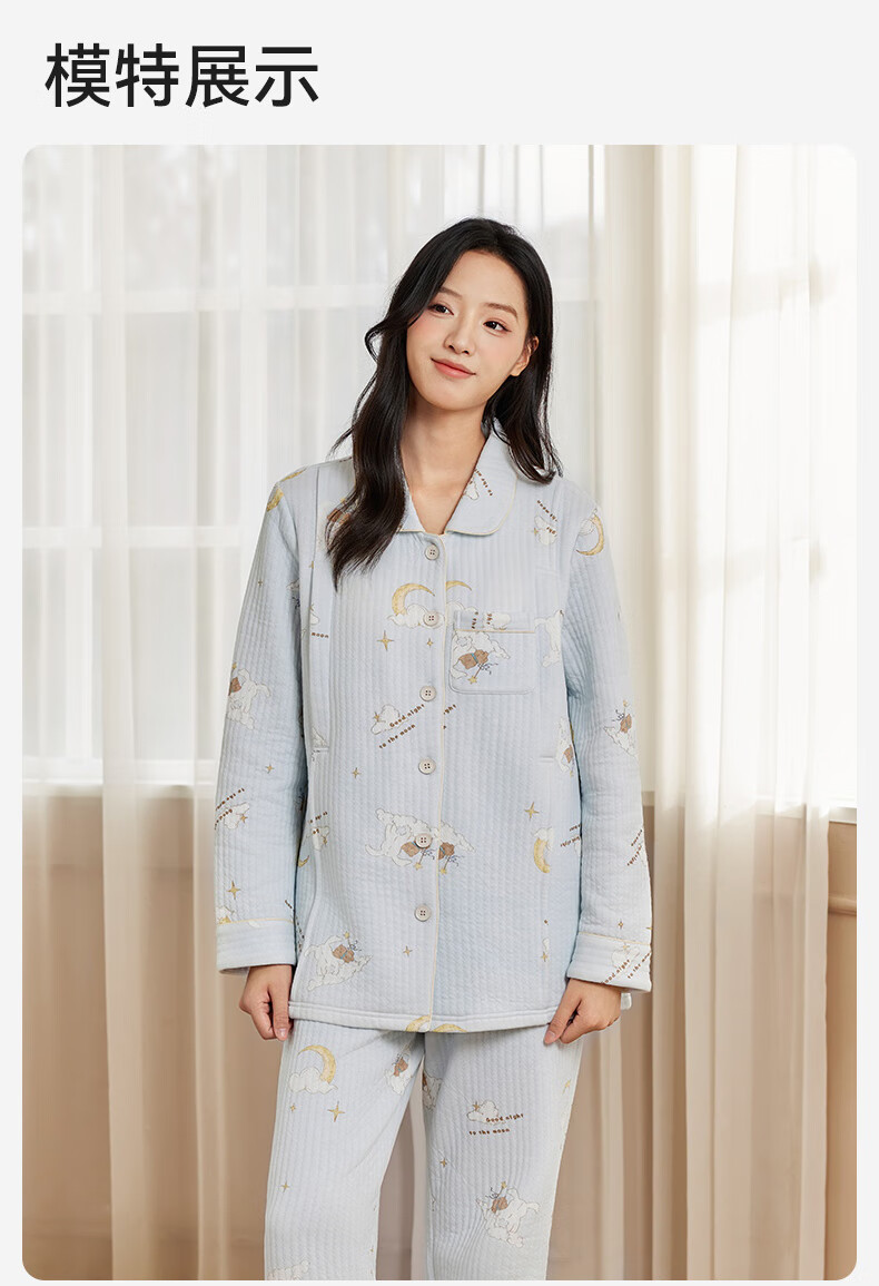十月结晶月子服孕产妇冬季加厚产后哺乳装睡衣家居服套装 柠檬黄L码