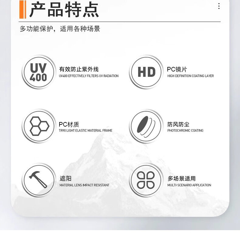VOZAPOW骑行眼镜变色日夜两用户外运动护目镜跑步自行车防风沙太阳镜墨镜