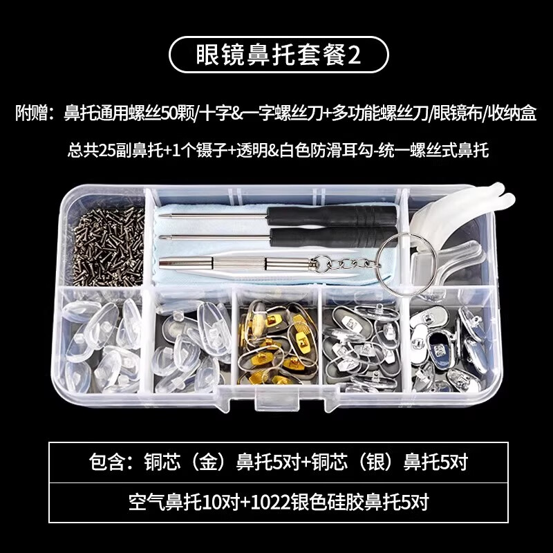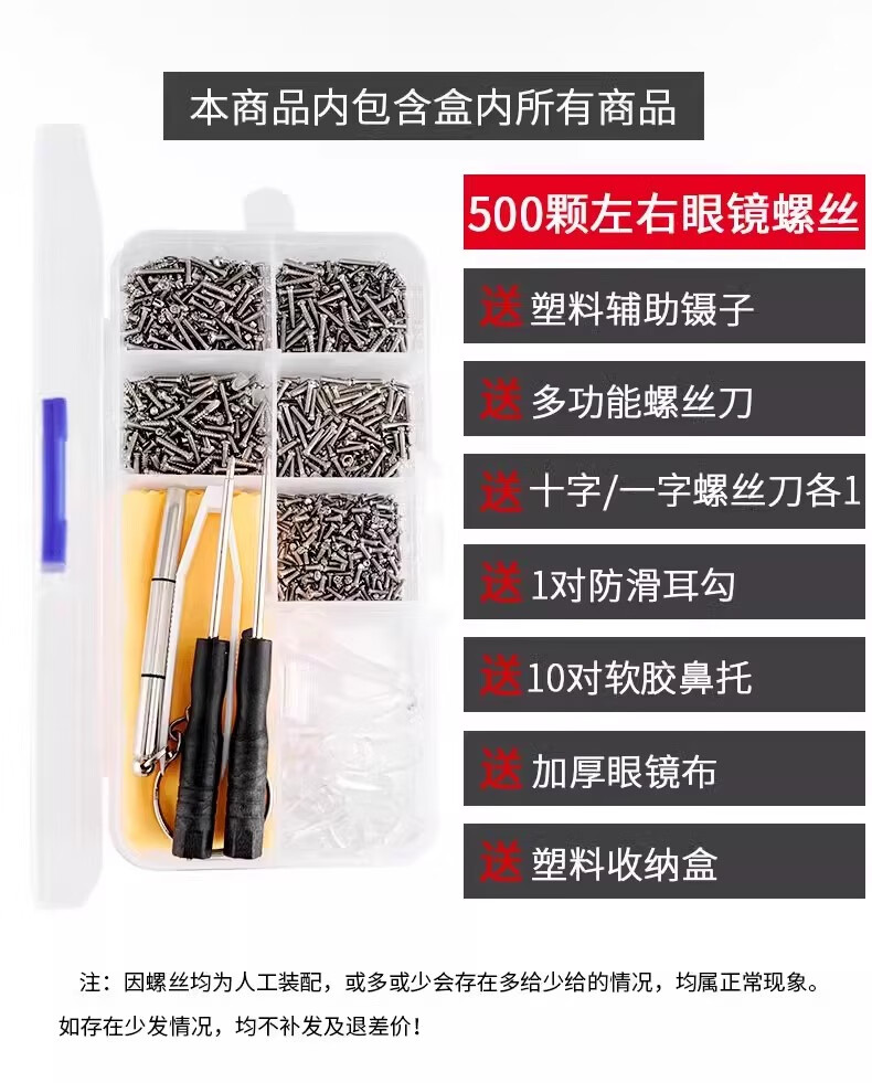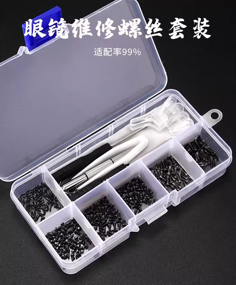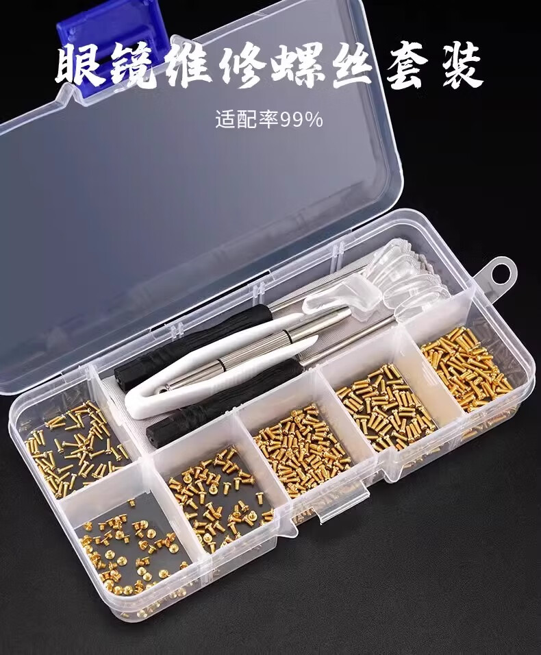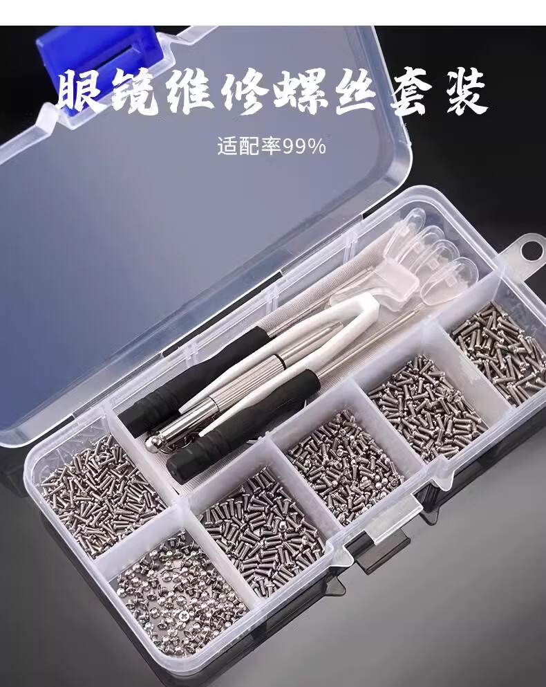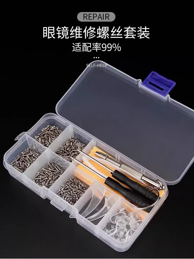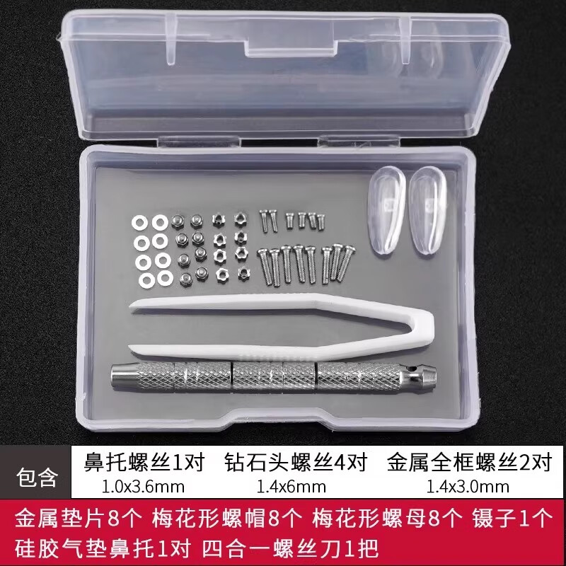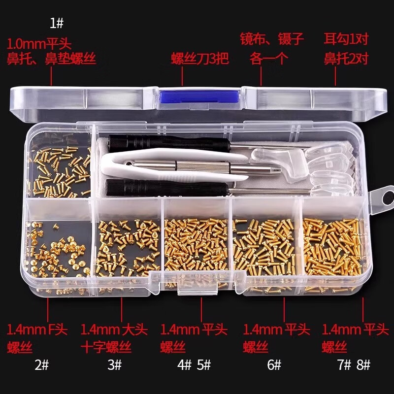 GOGOSOON眼镜维修小螺丝框架腿镙丝硅胶鼻托垫螺丝刀零配件修理工具盒套装